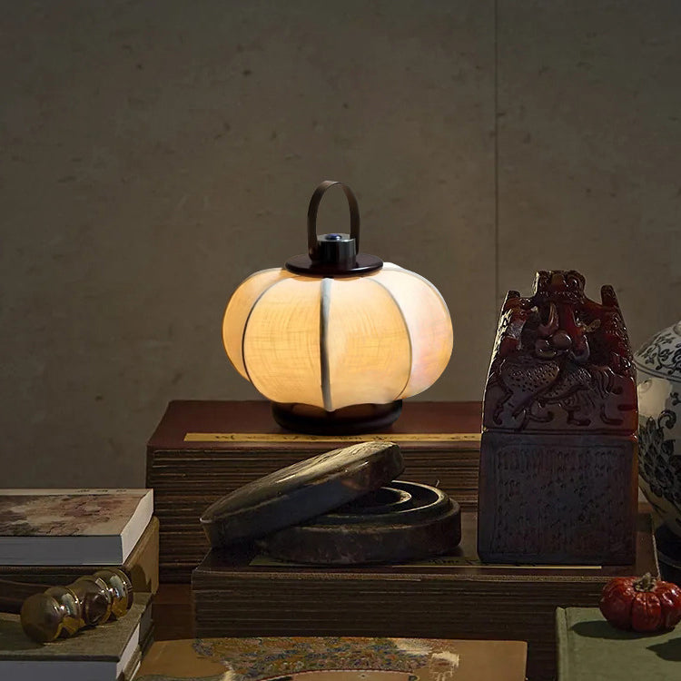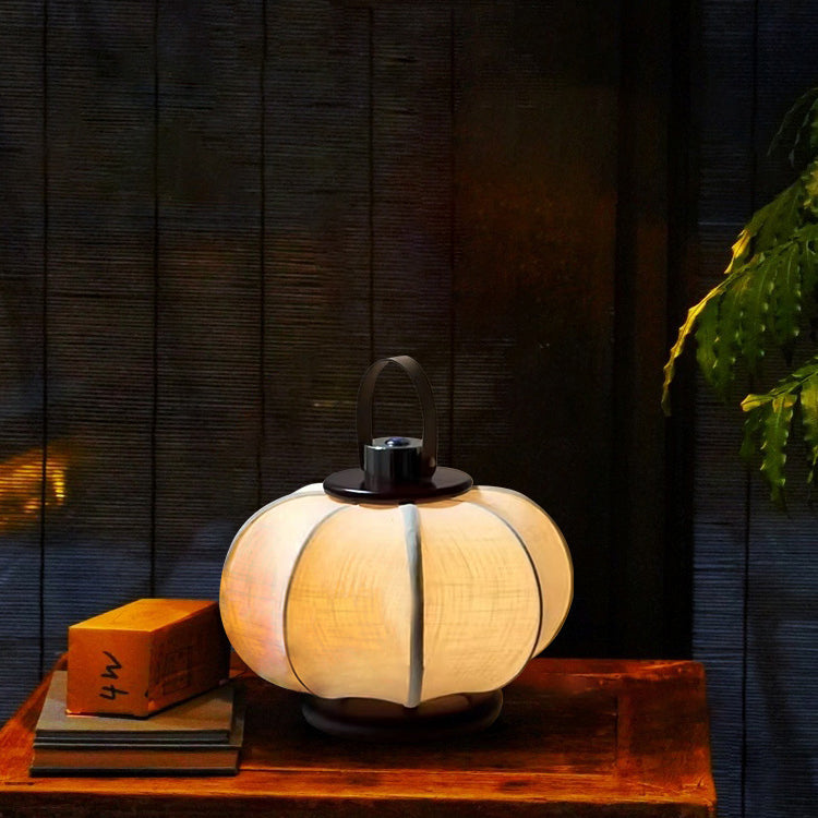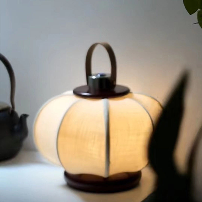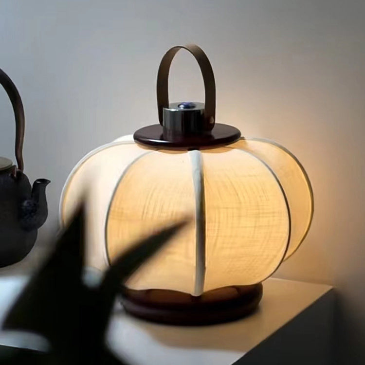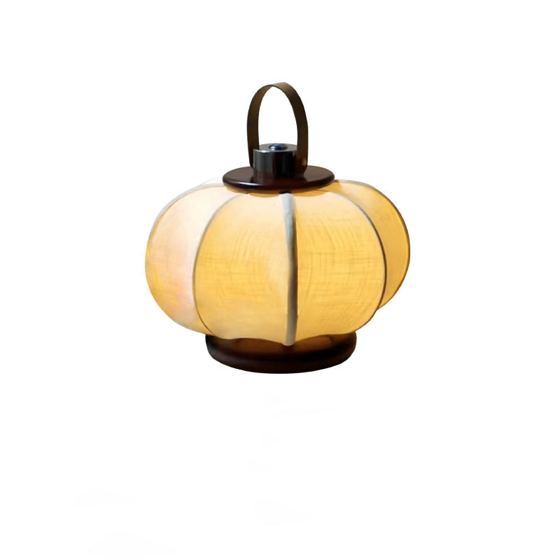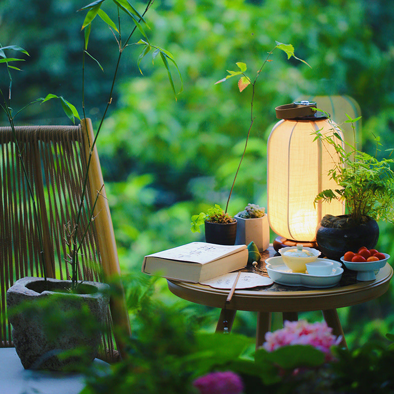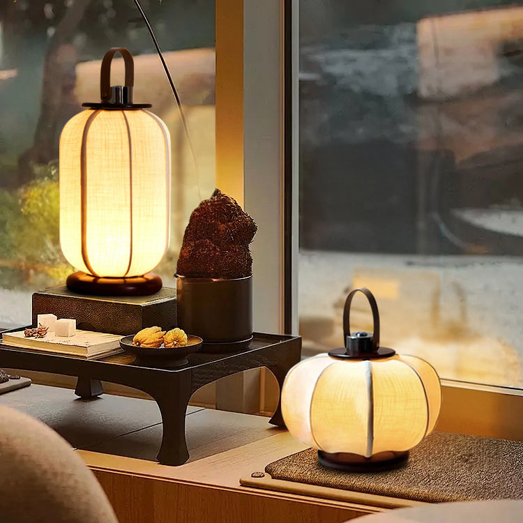 Traditional Chinese Portable USB Leather Stainless Steel Fabric Wood Cylinder Lantern Bird Pattern LED Table Lamp For Study