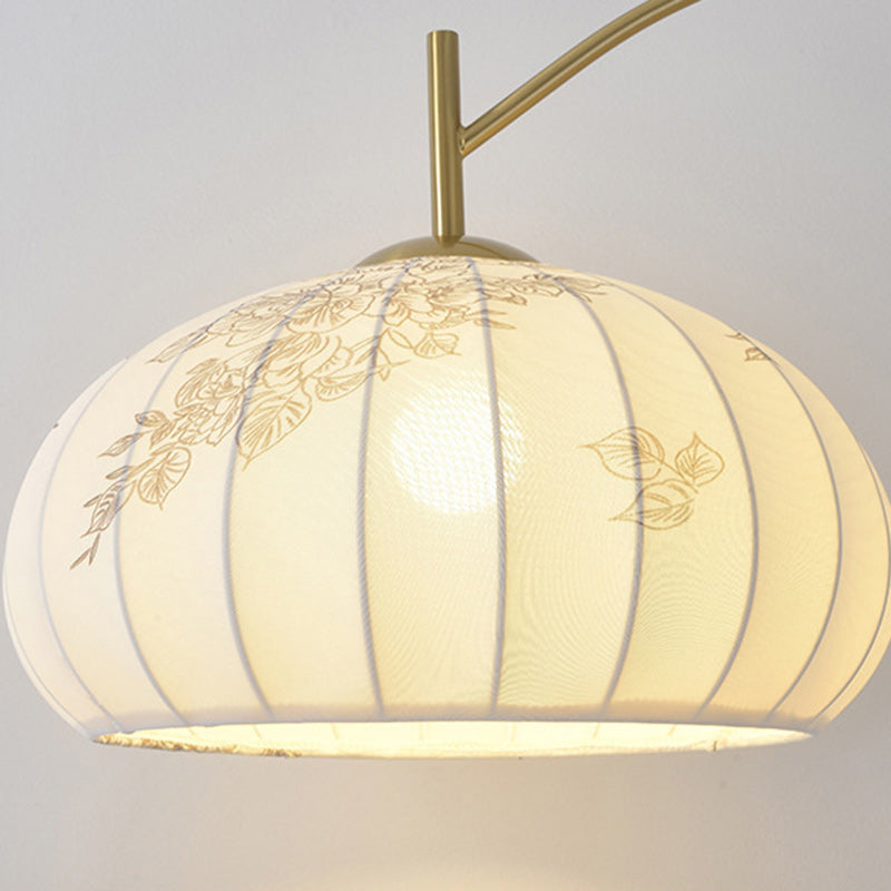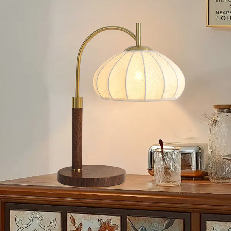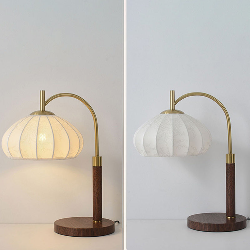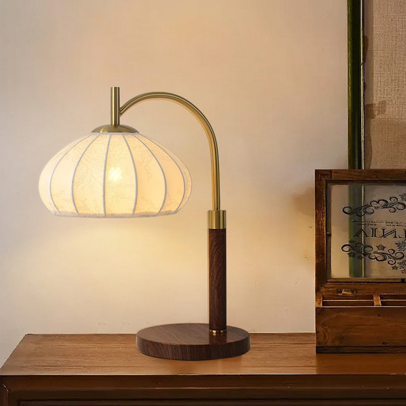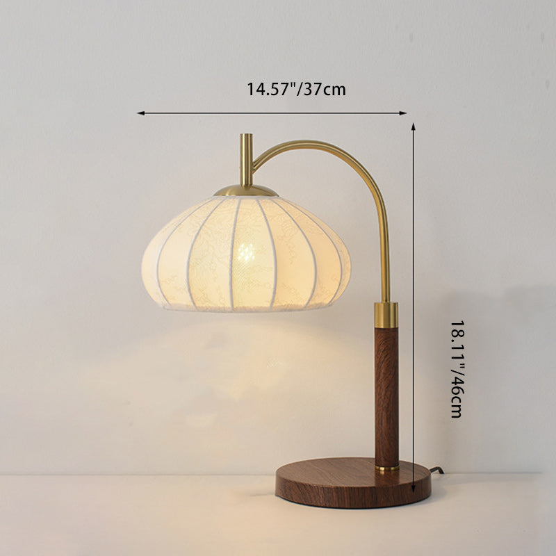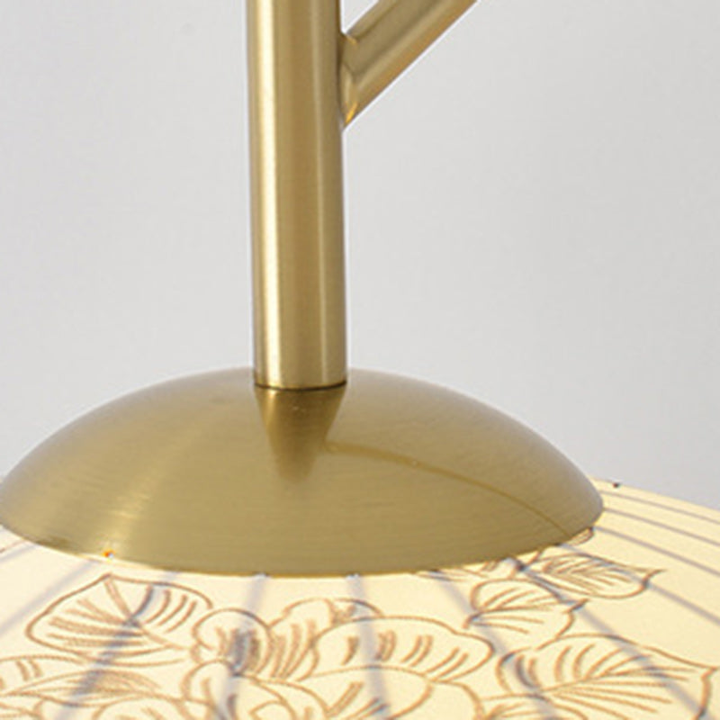 Traditional Chinese Printed Round Oval Cone Iron Fabric 1-Light Table Lamp For Living Room