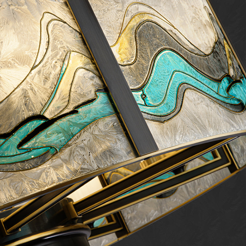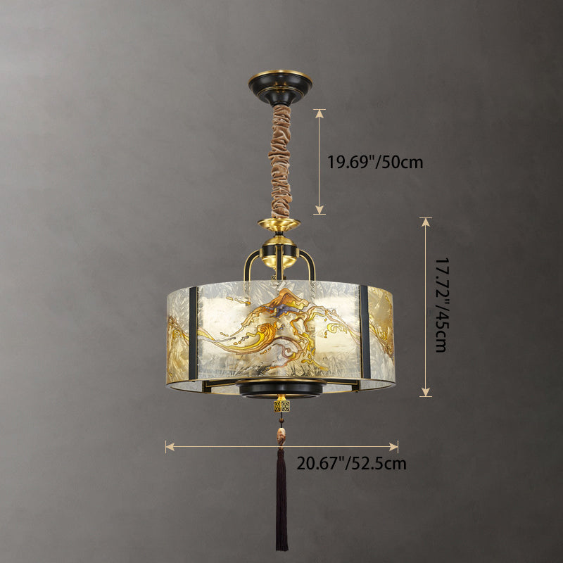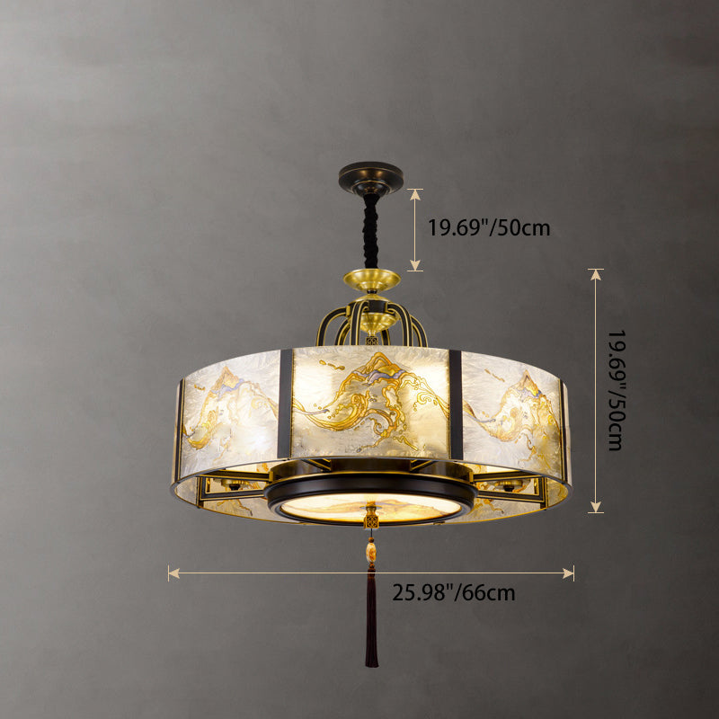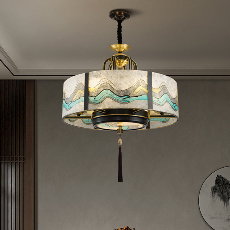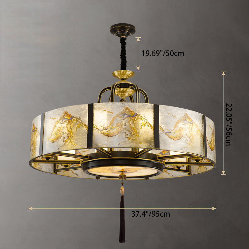 Traditional Chinese Round Enamel Copper Glass 4/6/8/10 - Light Chandelier For Dining Room