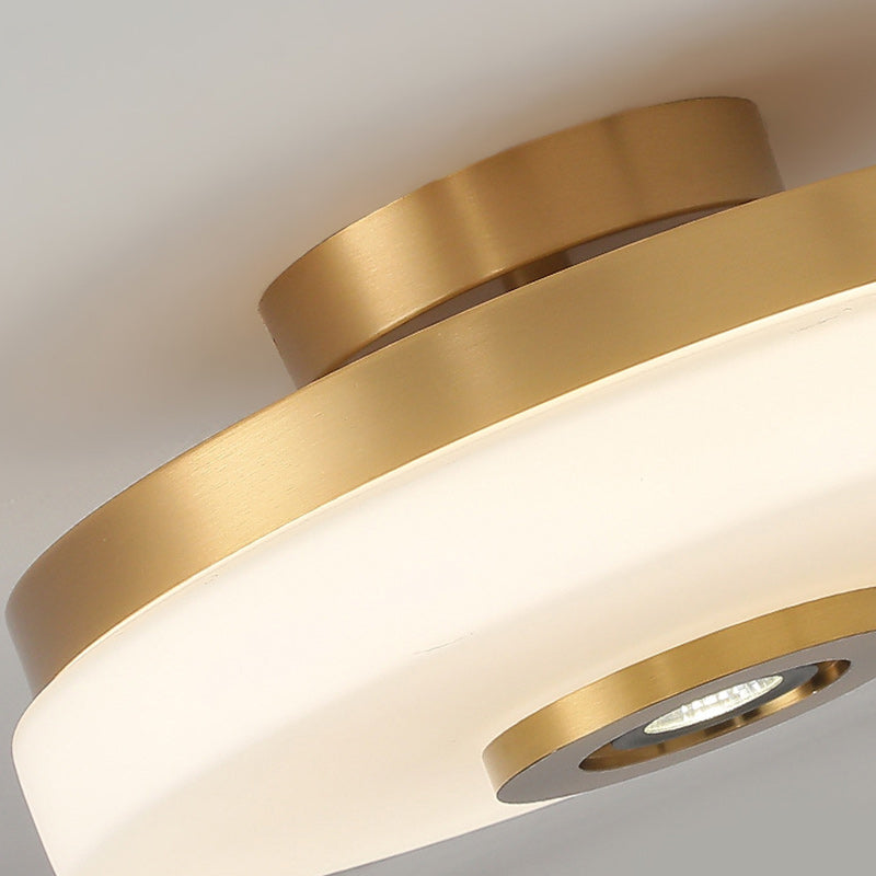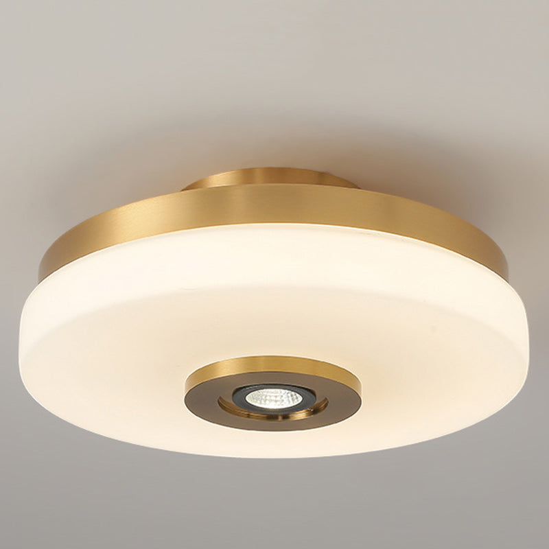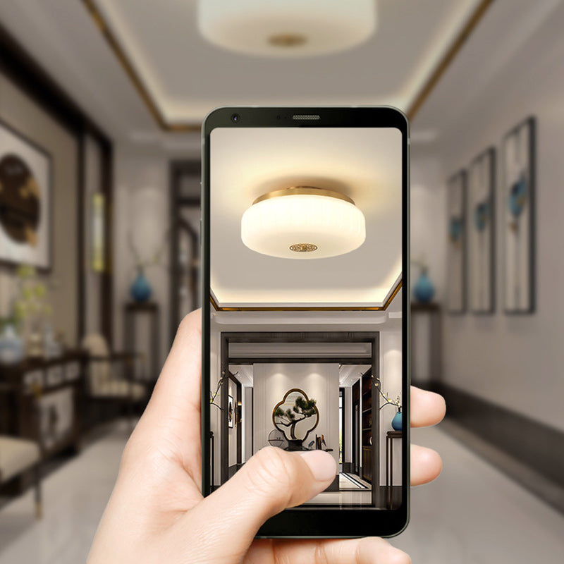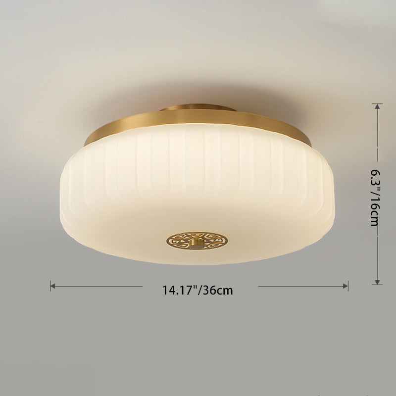 Traditional Chinese Round Glass Copper LED Flush Mount Ceiling Light For Bedroom