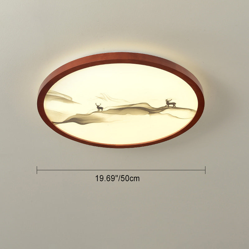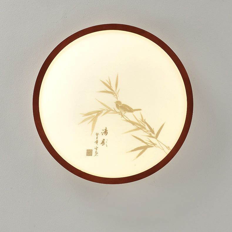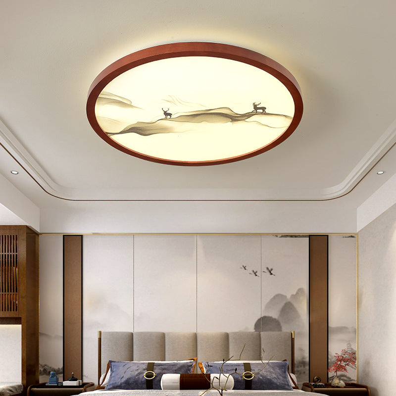 Traditional Chinese Round Solid Wood Acrylic LED Flush Mount Ceiling Light For Bedroom