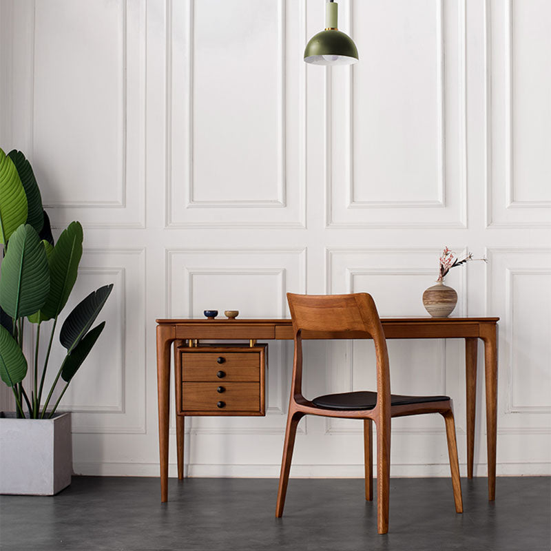 Traditional Chinese Square Wood PU Leather Dining Chair Four Legs Backrest For Dining Room
