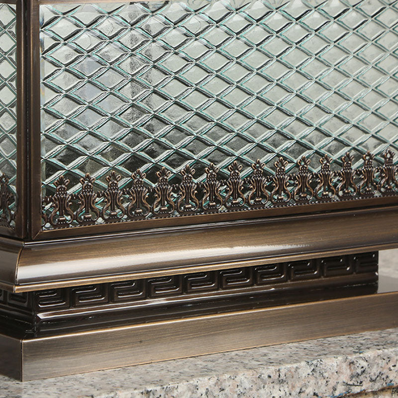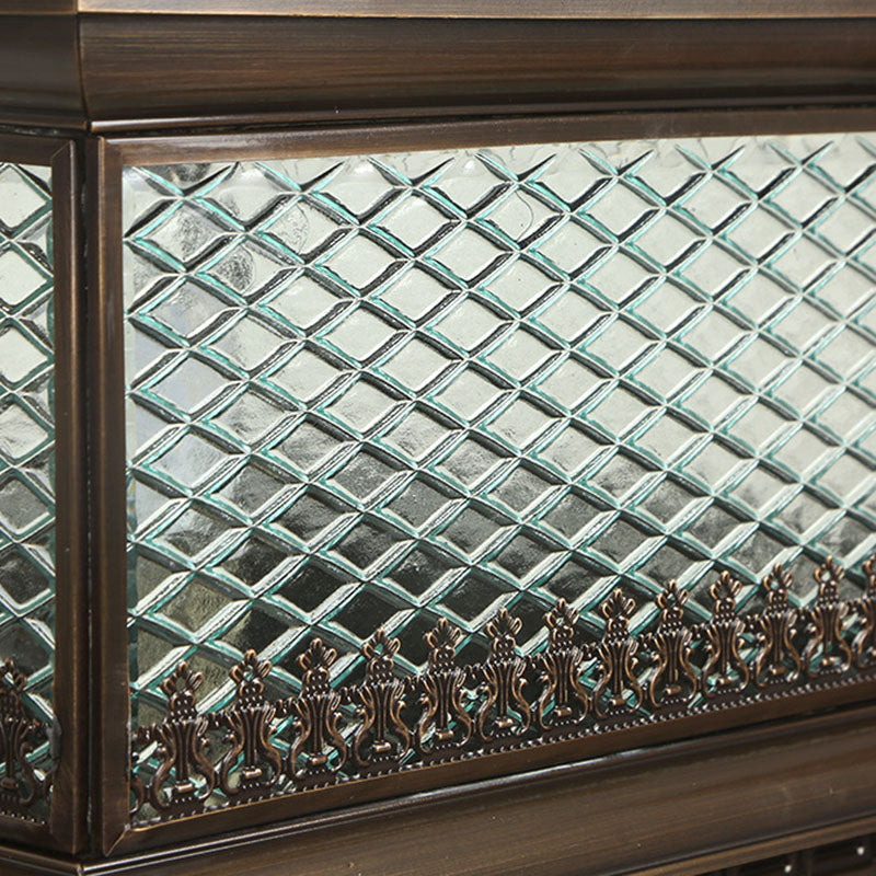 Traditional Chinese Waterproof Copper Glass Square LED 1-Light Landscape Lighting Outdoor Light For Garden