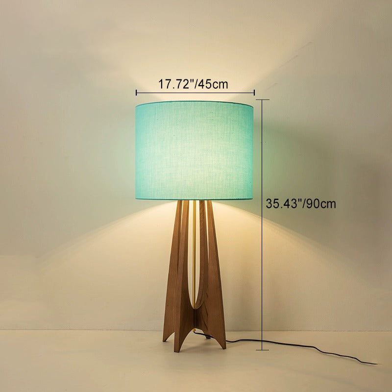 Traditional Chinese Wood Fabric Cylinder 1-Light Standing Floor Lamp For Living Room