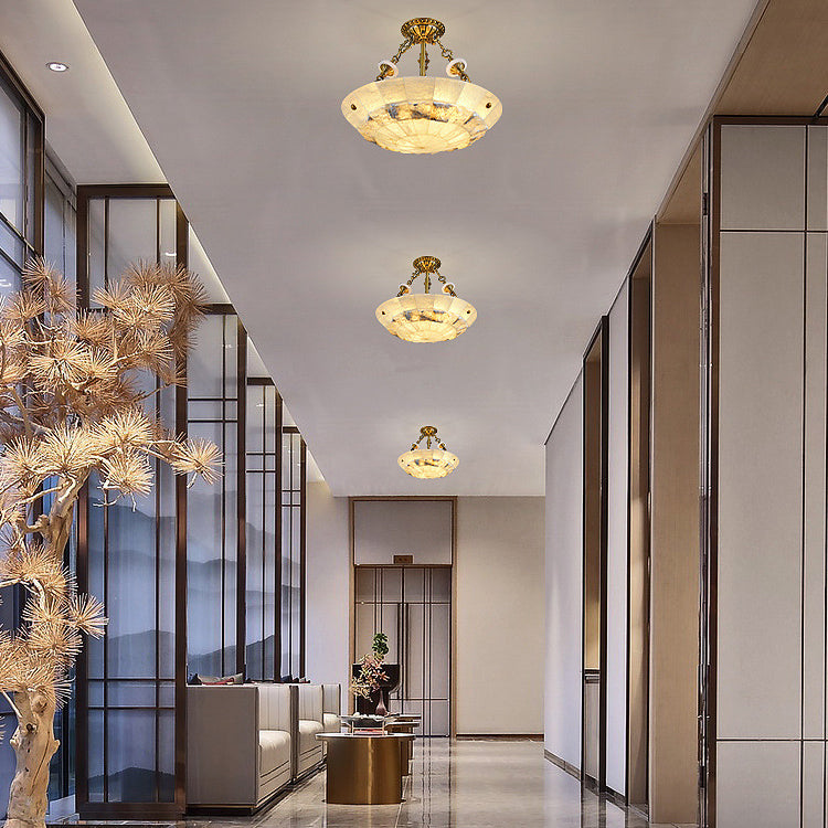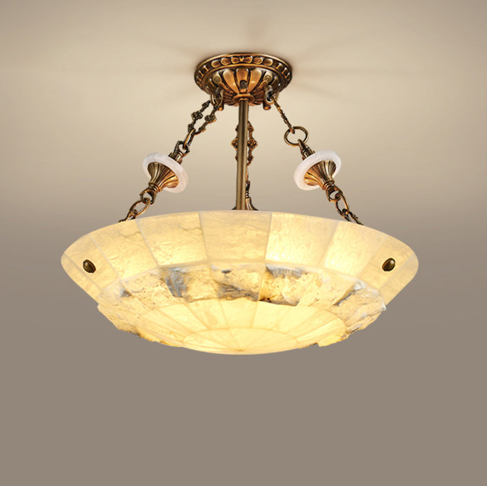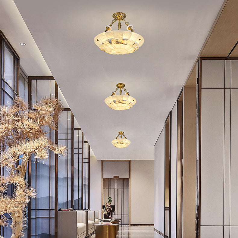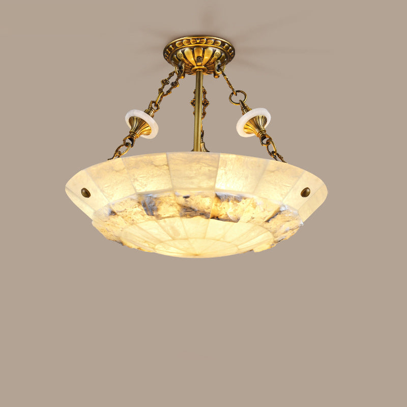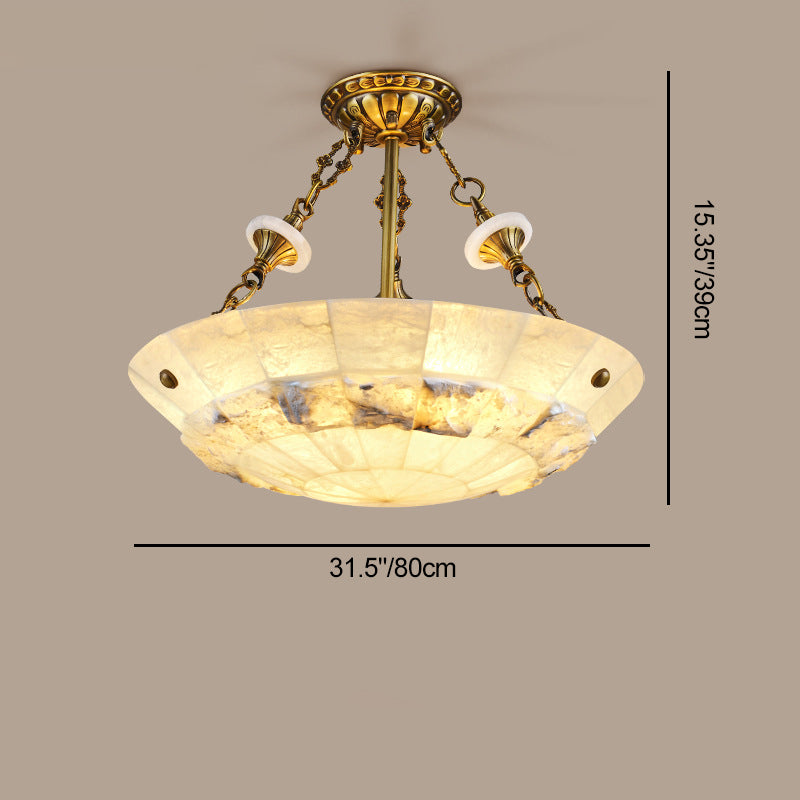 Traditional European Dome Semicircular Shell Brass Marble 3/4/5/7 - Light Chandelier For Living Room