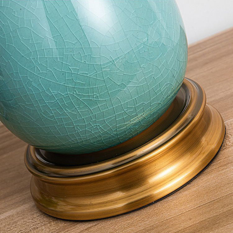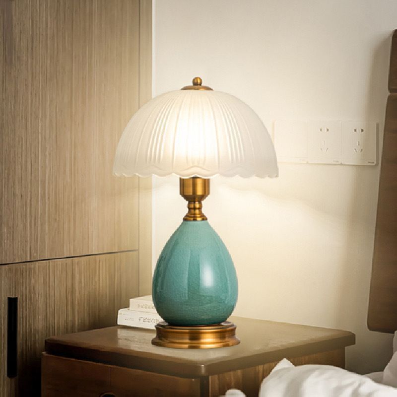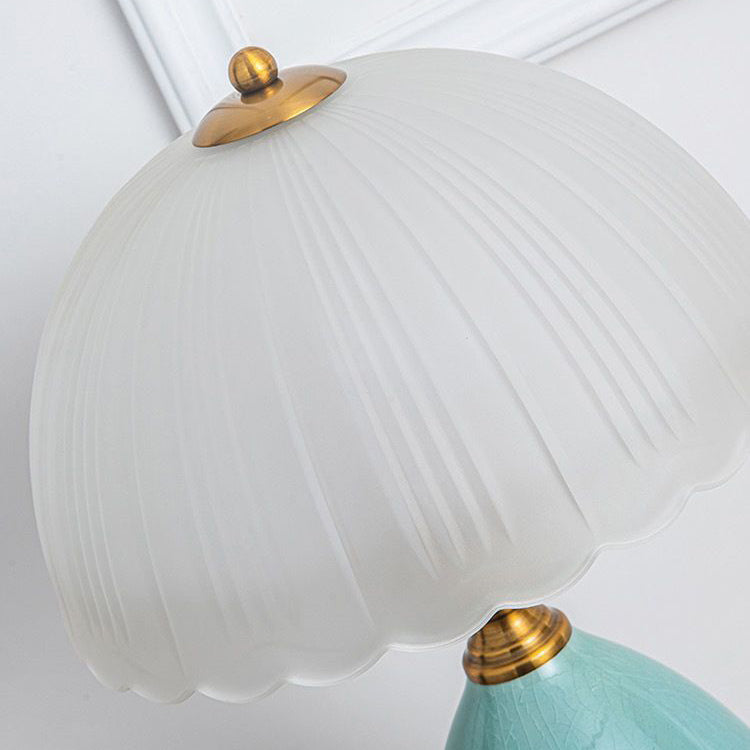 Traditional European Lace Half Round Dome Glass Shade Ceramic Teardrop Base 1-Light Table Lamp For Bedroom