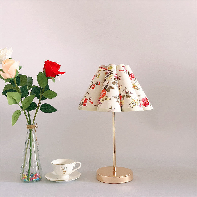 Traditional European Printed Fabric Petal Shade 1-Light Table Lamp For Bedroom