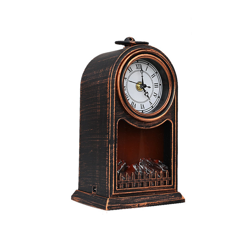 Traditional Farmhouse Battery ABS Flame Clock Mantelpiece Cylinder LED Table Lamp Night Light For Bedroom