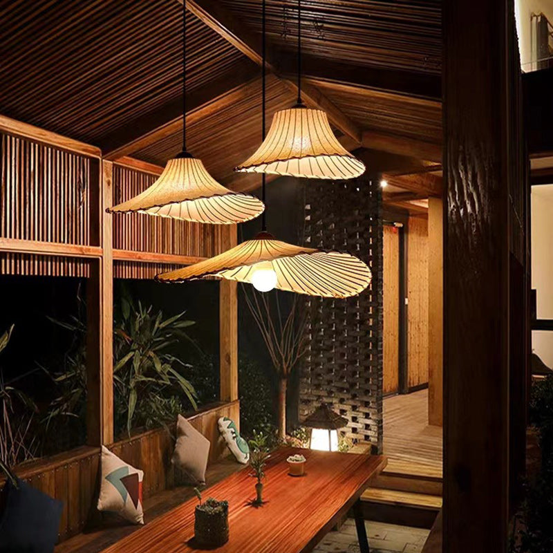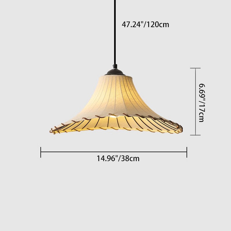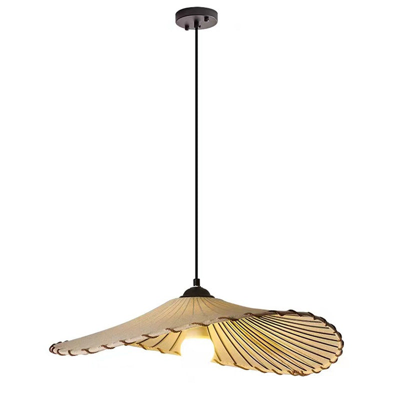 Traditional Farmhouse Fabric Flared Brim Straw Hat Design Iron 1-Light Pendant Light For Living Room