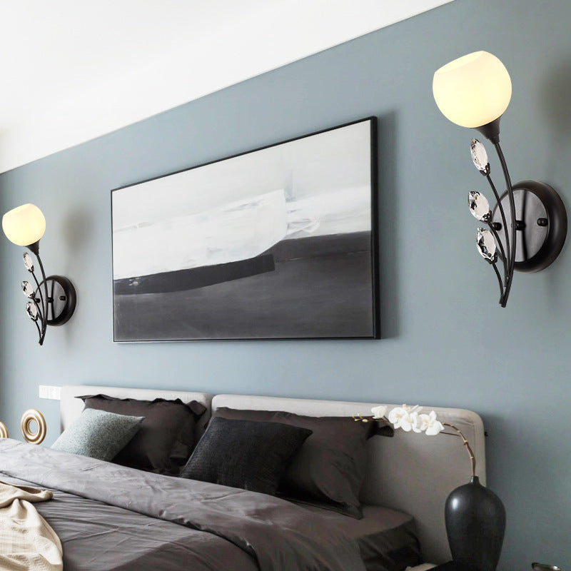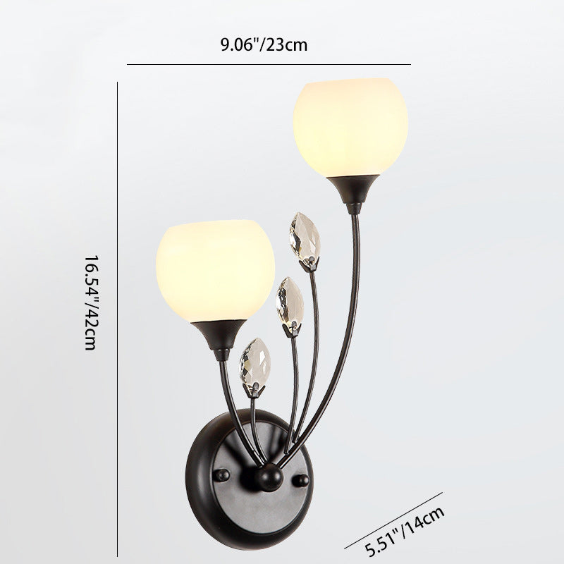 Traditional Farmhouse Glass Crystal Iron Round Leaf 1/2-Light Wall Sconce Lamp For Bedroom And Living Room
