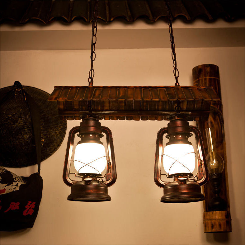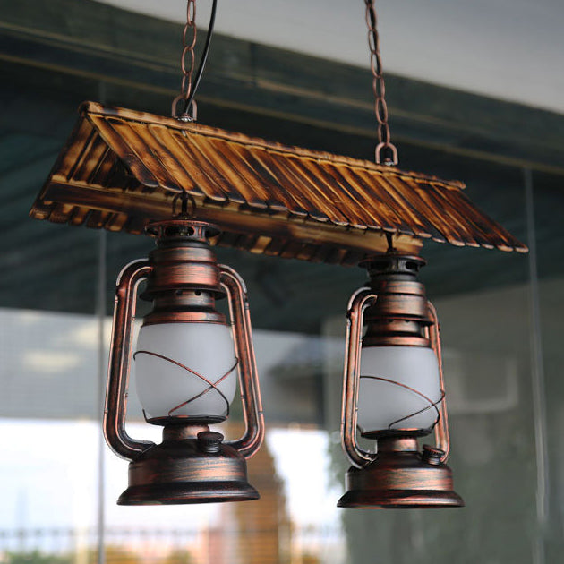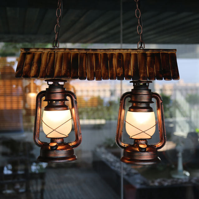 Traditional Farmhouse Horse Lamp Iron Bamboo Glass 2-Light Island Light Chandelier For Dining Room