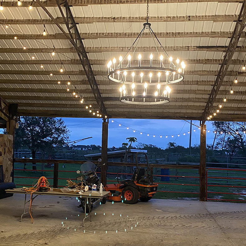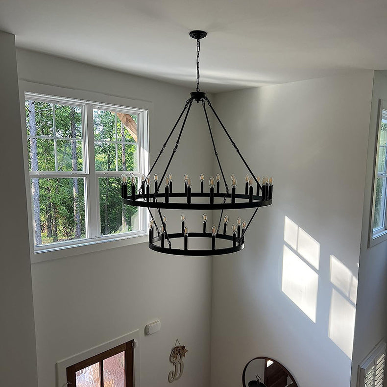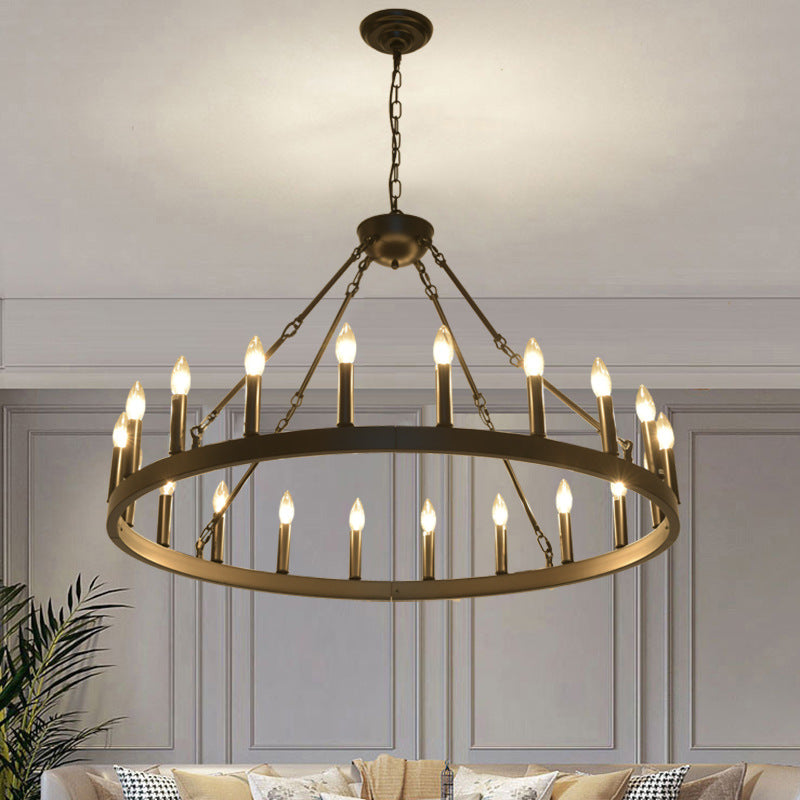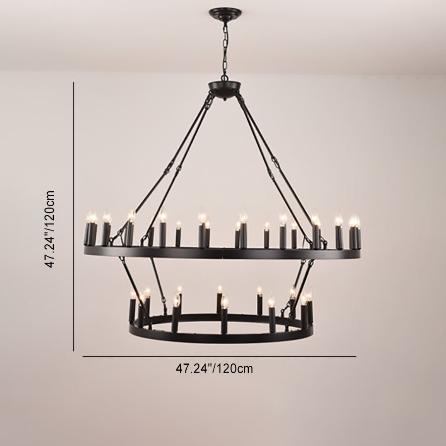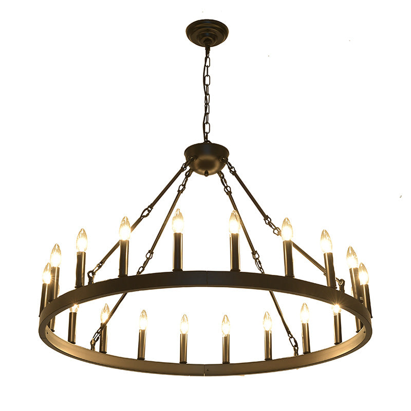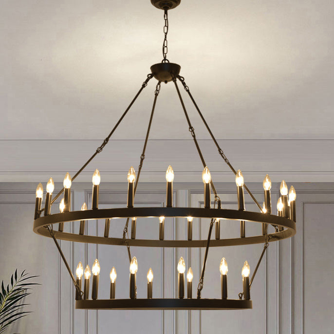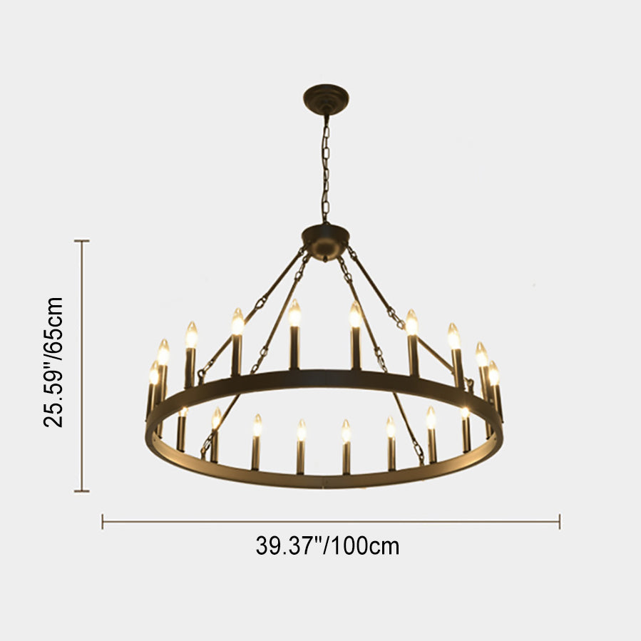 Traditional Farmhouse Iron Circle Ring Glass 20/36-Light Chandelier For Dining Room
