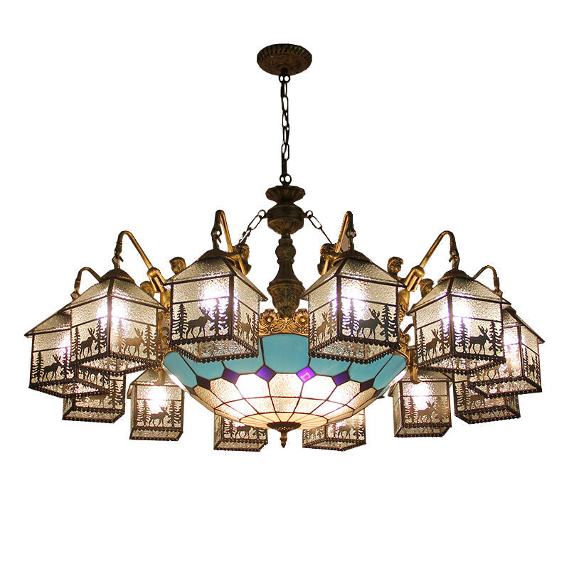Traditional Farmhouse Iron Glass Deer House 3/5/6/8/9/13 Light Chandeliers For Living Room
