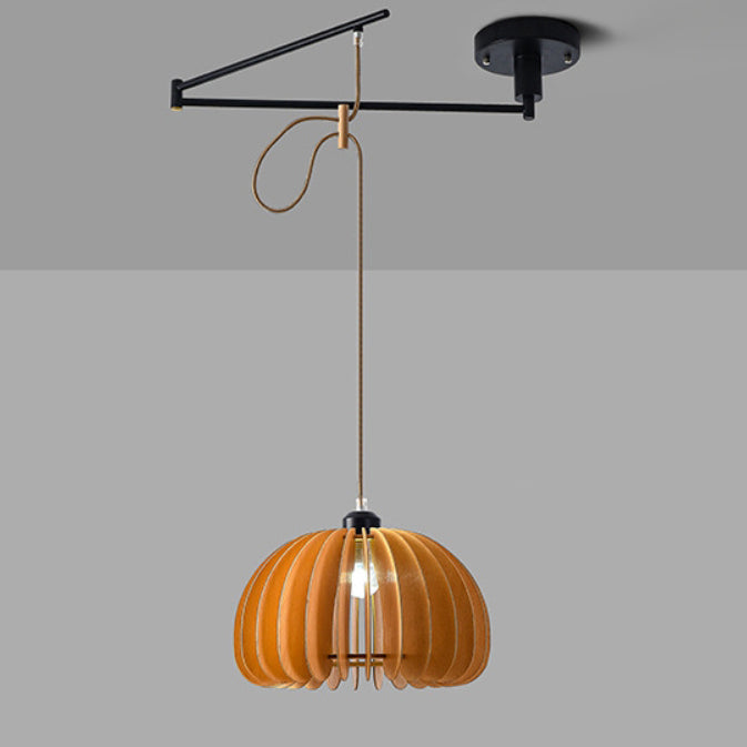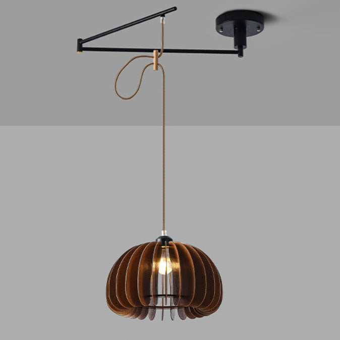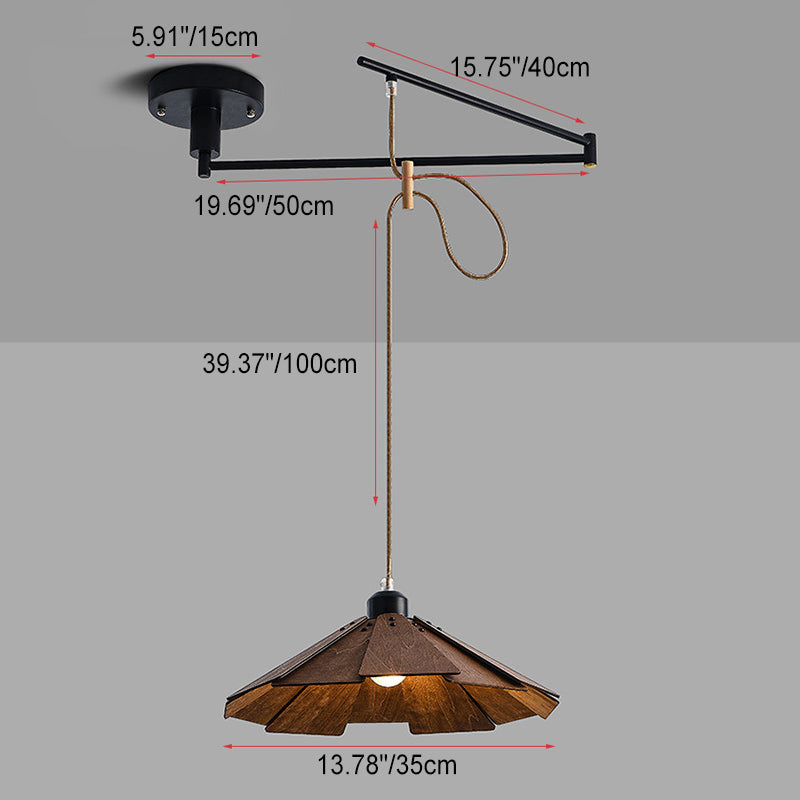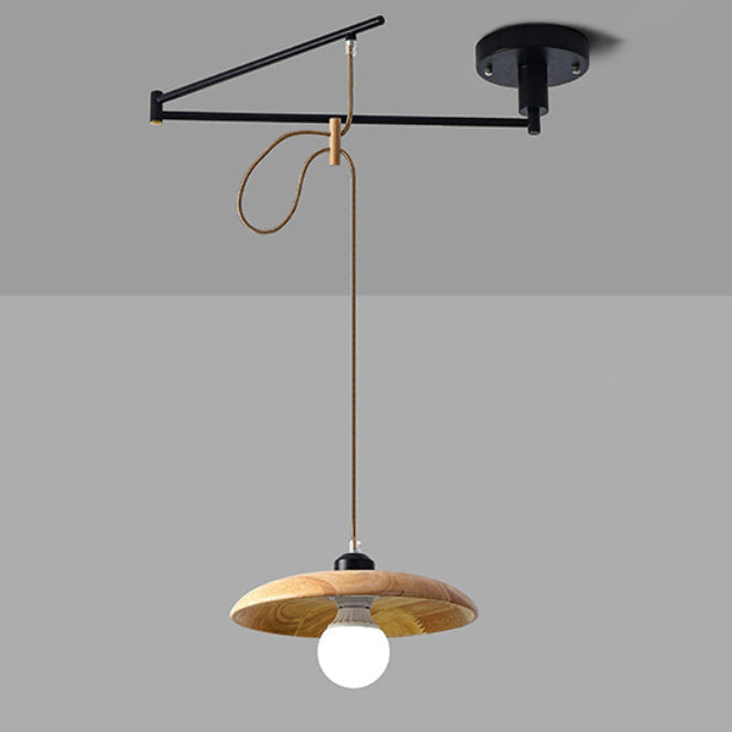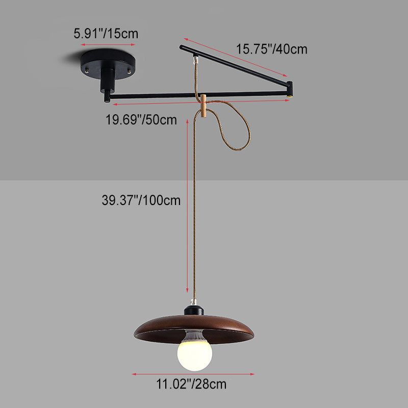 Traditional Farmhouse Iron Wood Cone Disc Ball Iron 1-Light Pendant Light For Dining Room