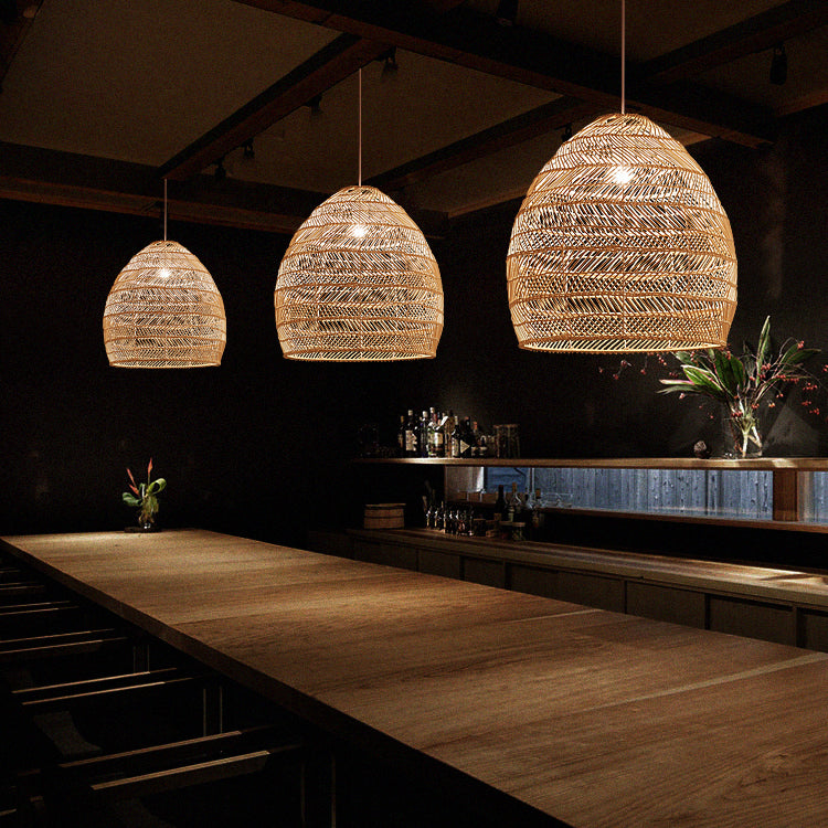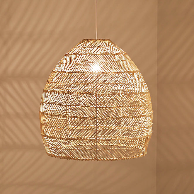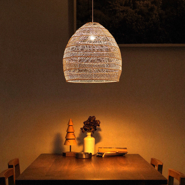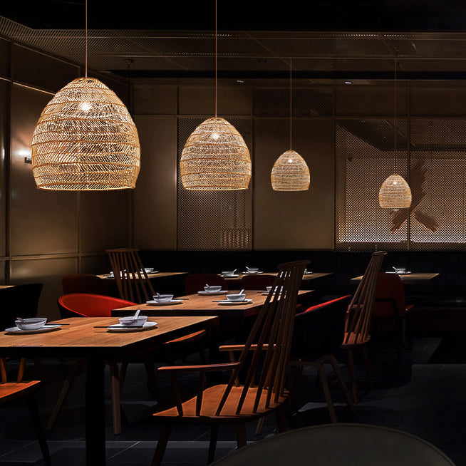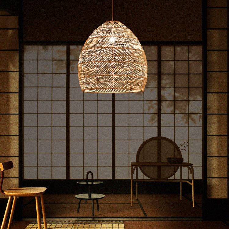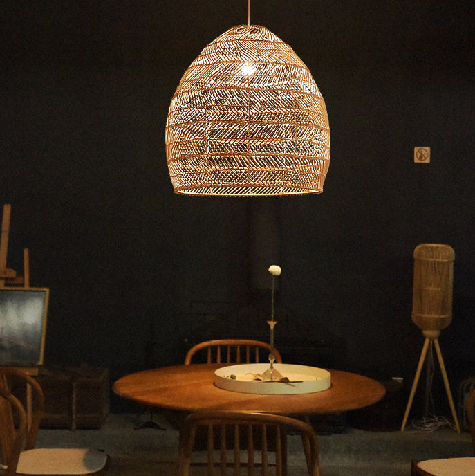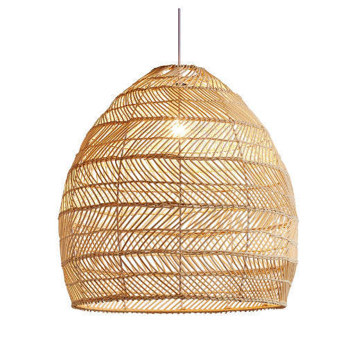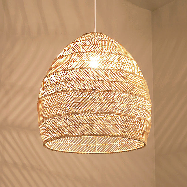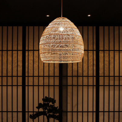 Traditional Farmhouse Oval Rattan Weaving 1-Light Pendant Light For Dining Room