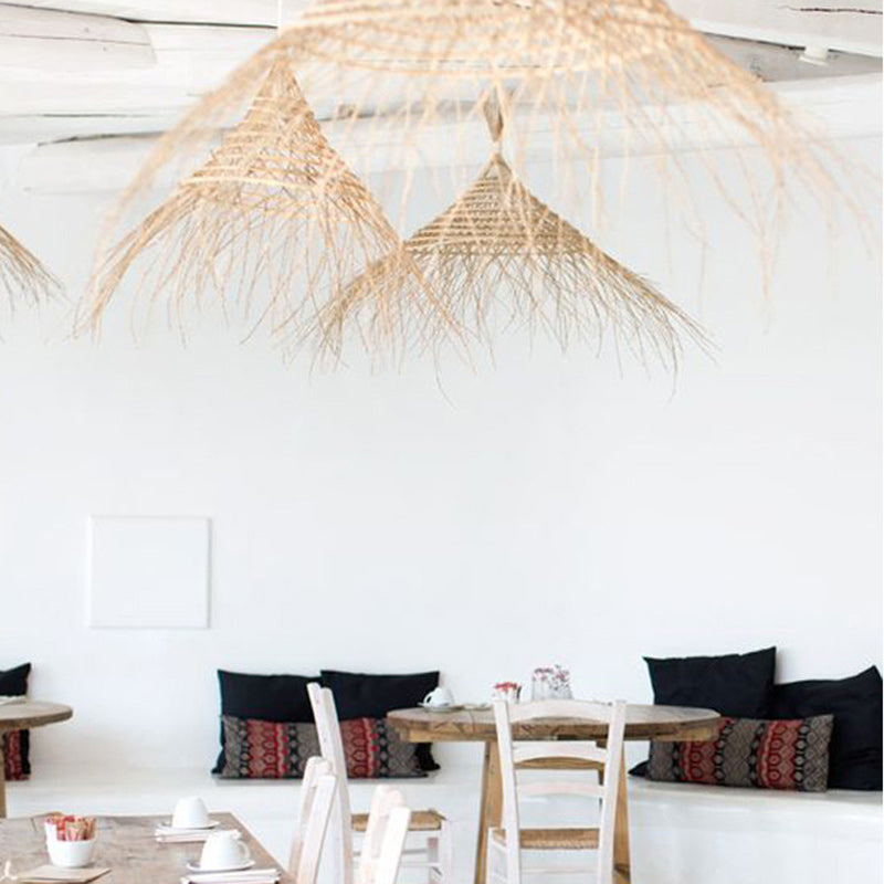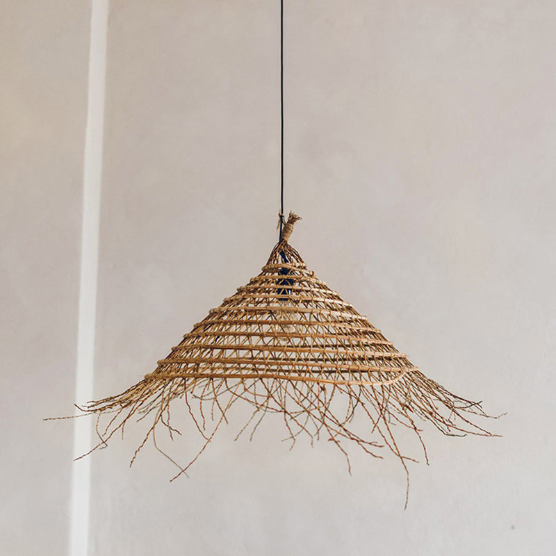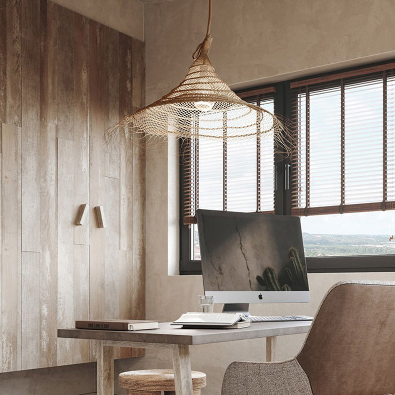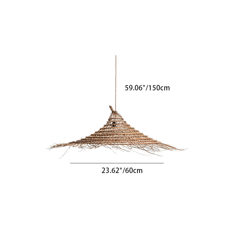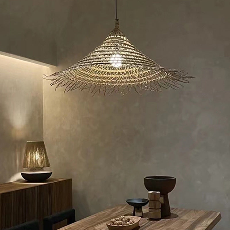 Traditional Farmhouse Rattan Weaving Straw Hat 1-Light Pendant Light For Dining Room