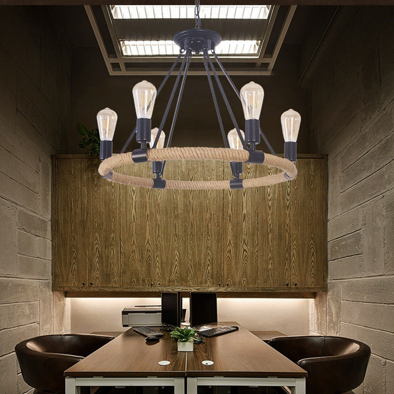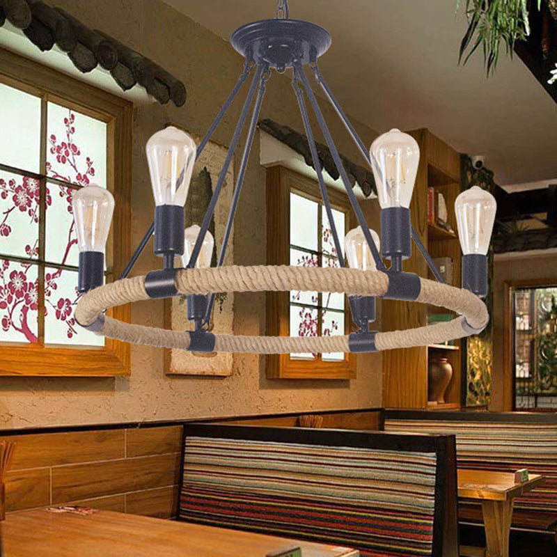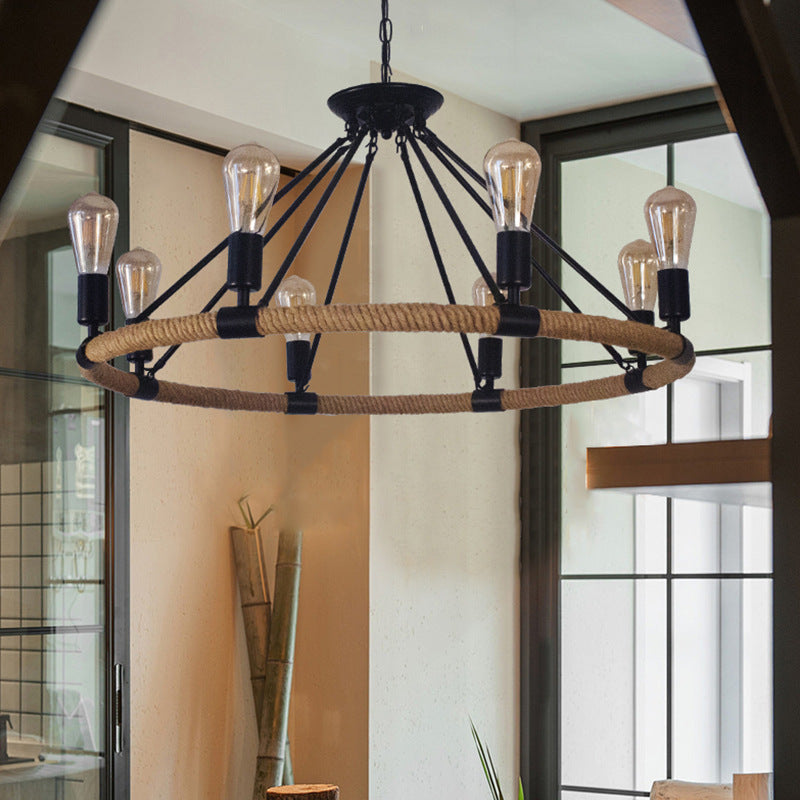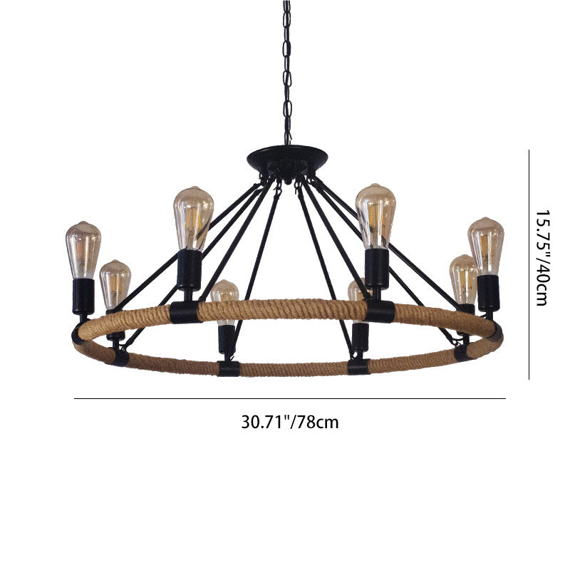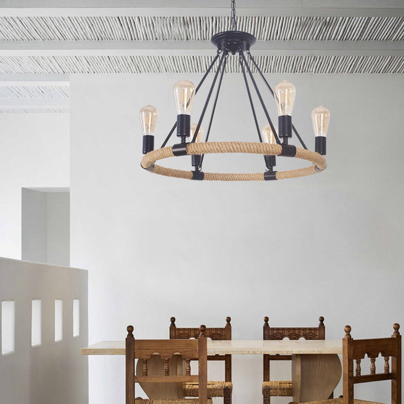 Traditional Farmhouse Round Hemp Rope Iron Hardware 6/8 - Light Chandeliers For Dining Room