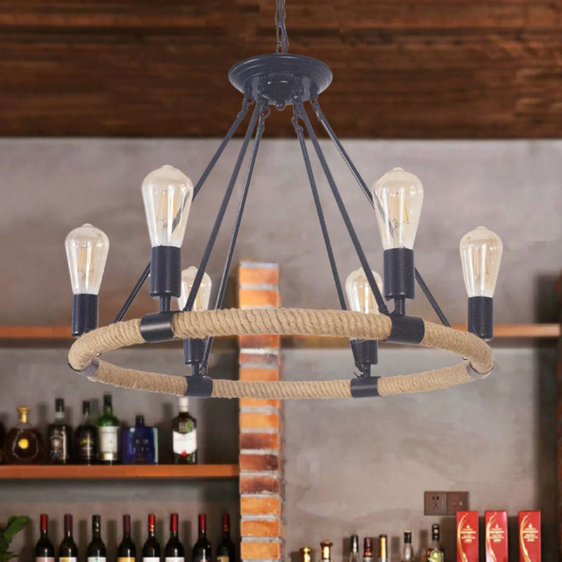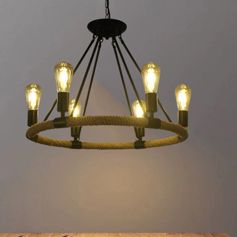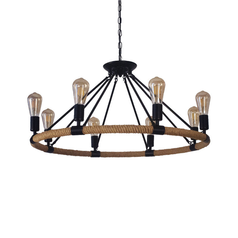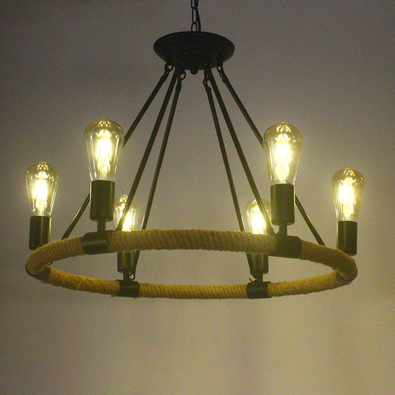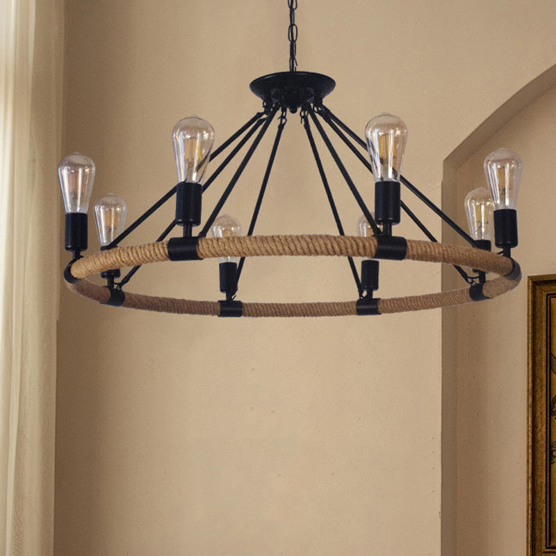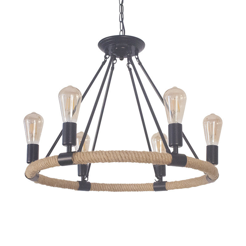 Traditional Farmhouse Round Hemp Rope Iron Hardware 6/8 - Light Chandeliers For Dining Room