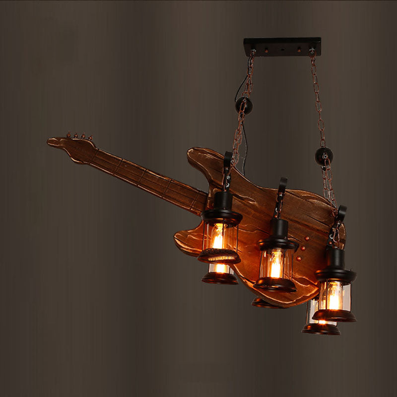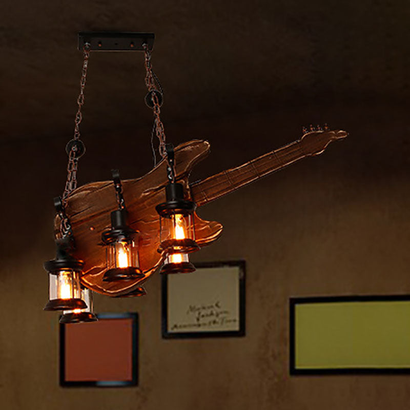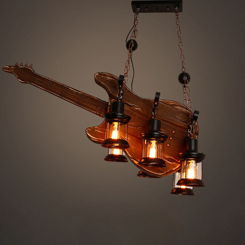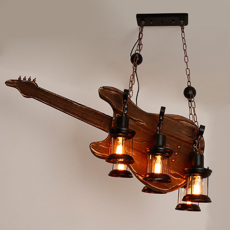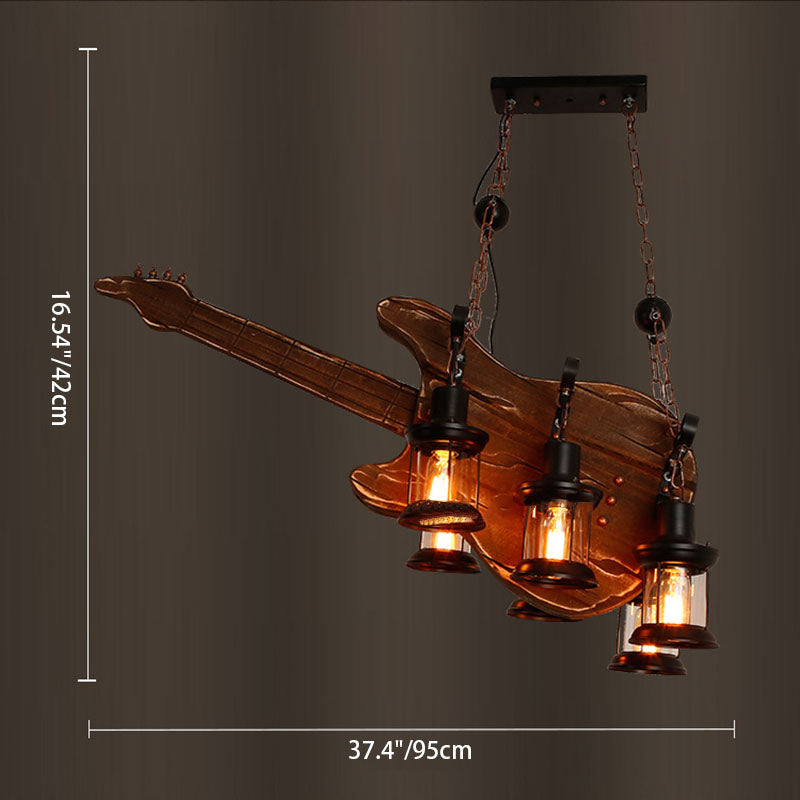 Traditional Farmhouse Wood Carving Guitar Shape Iron 6-Light Chandelier For Dining Room