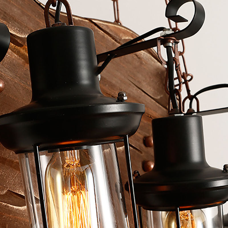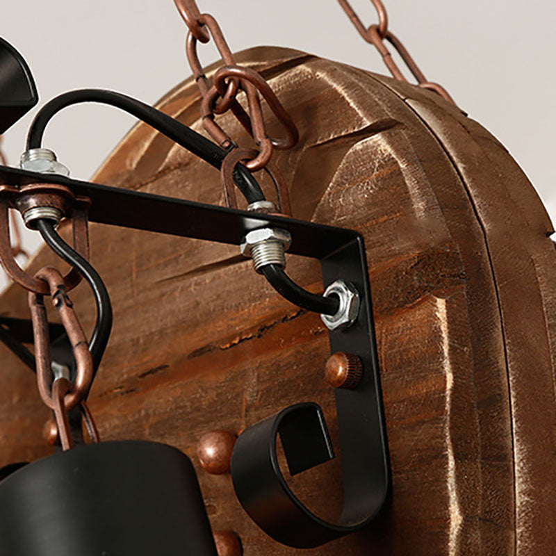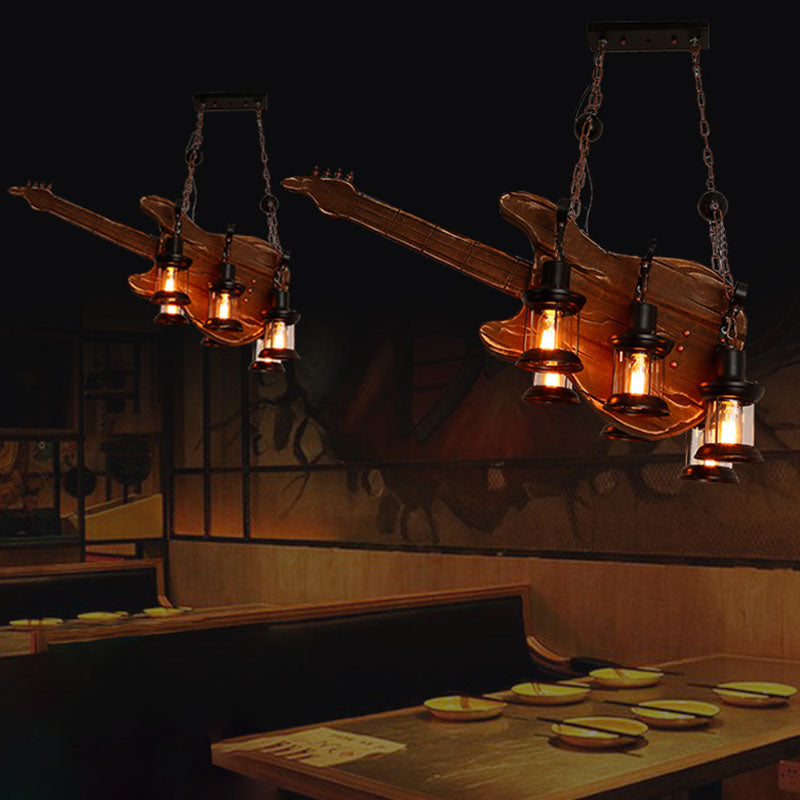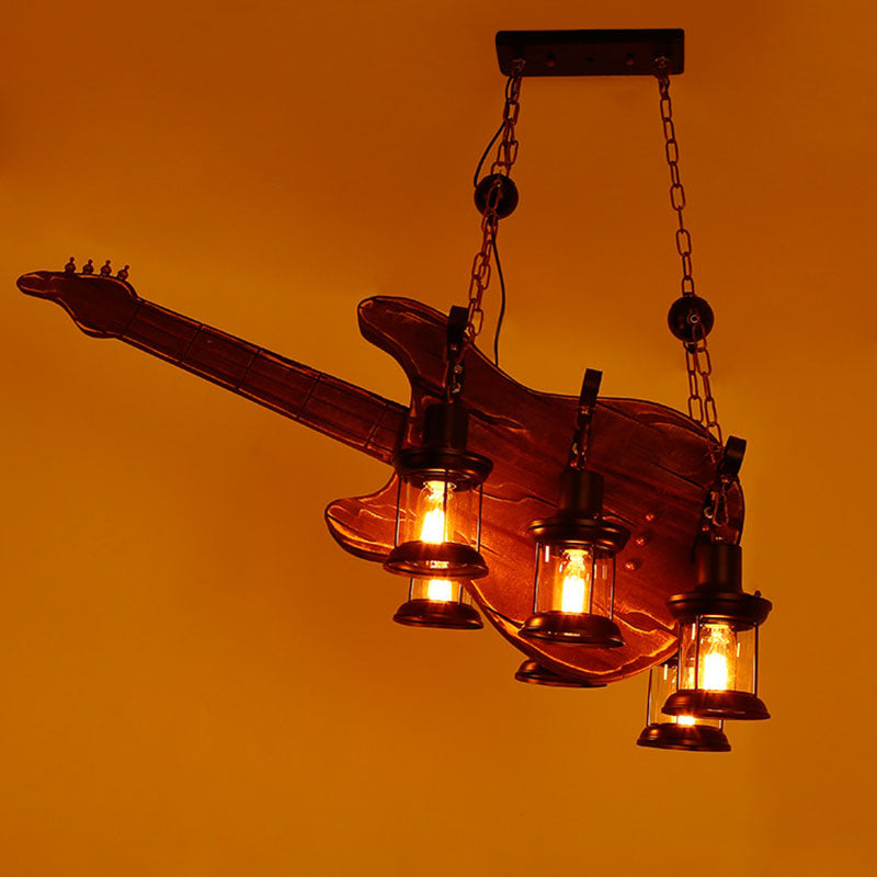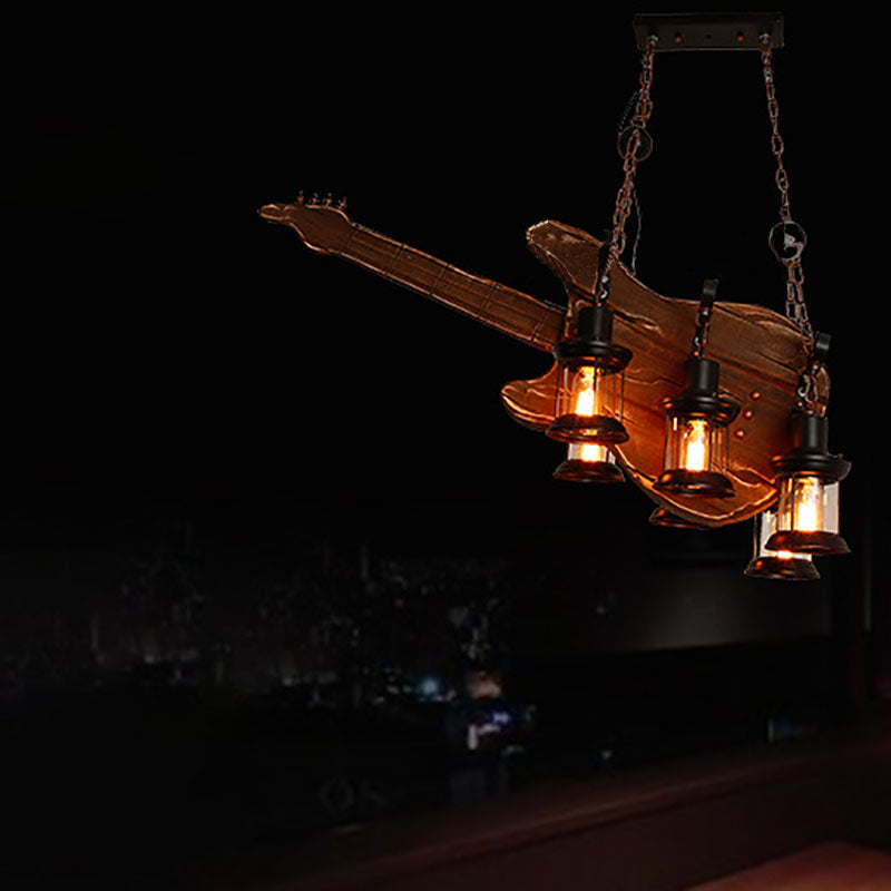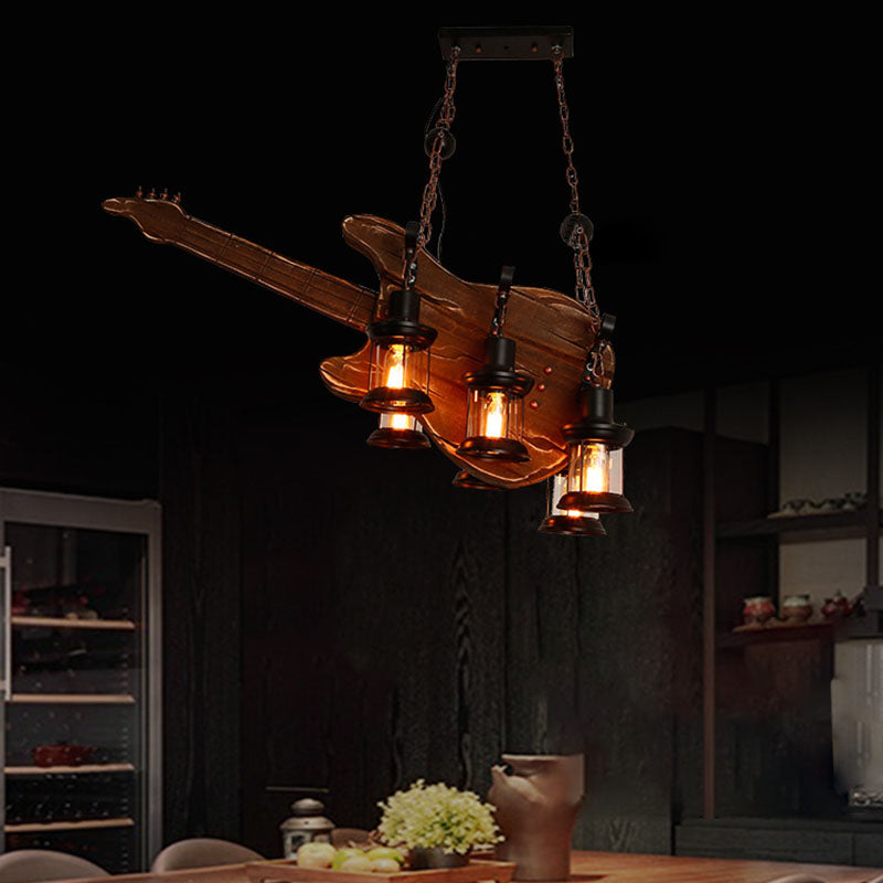 Traditional Farmhouse Wood Carving Guitar Shape Iron 6-Light Chandelier For Dining Room