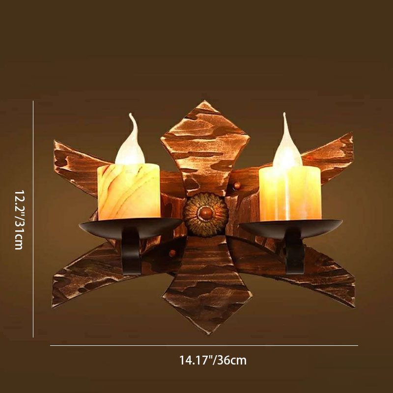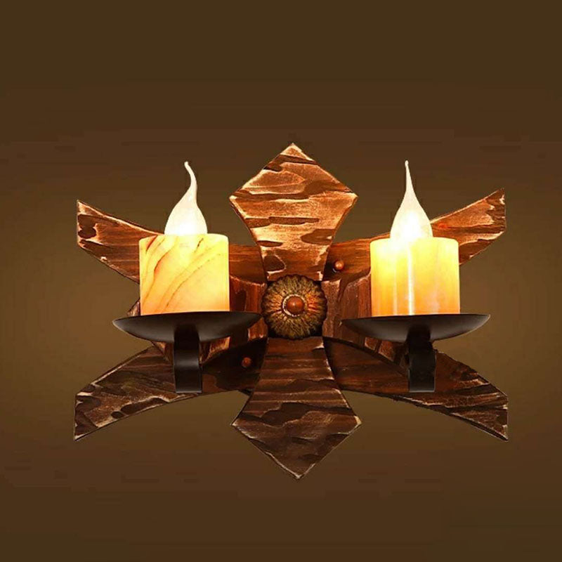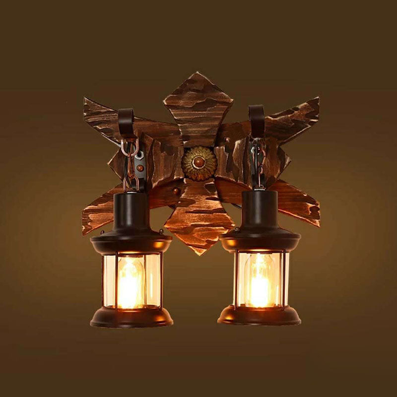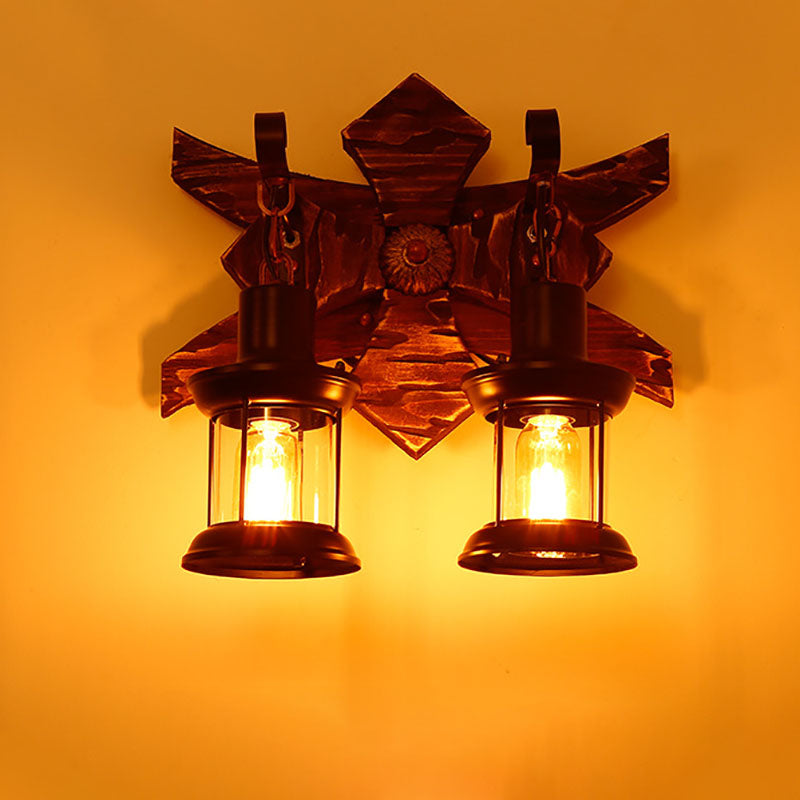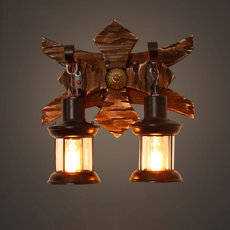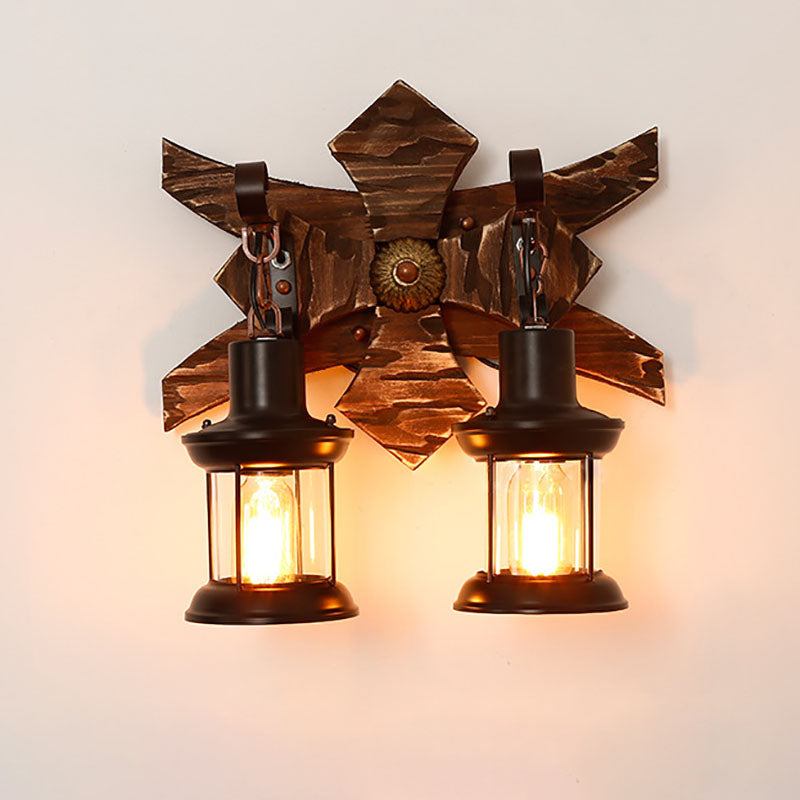 Traditional Farmhouse Wood Frame Iron 2-Light Wall Sconce Lamp For Dining Room