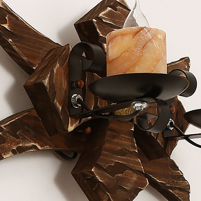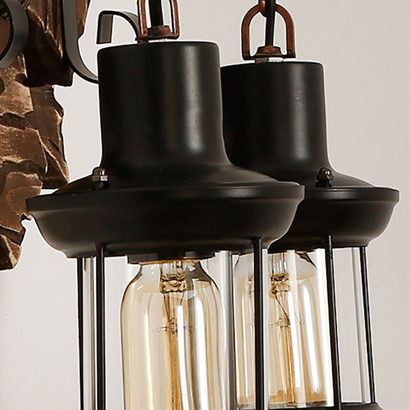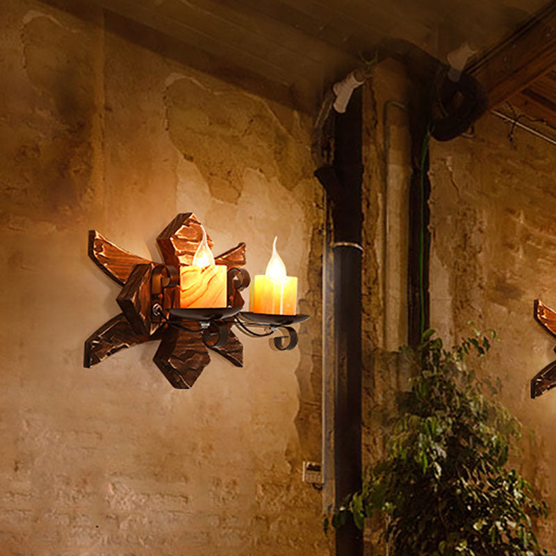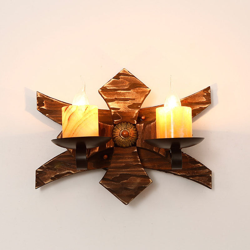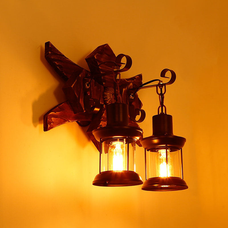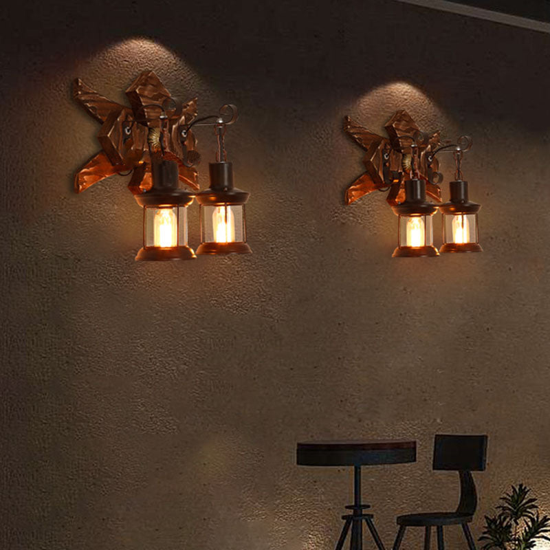 Traditional Farmhouse Wood Frame Iron 2-Light Wall Sconce Lamp For Dining Room