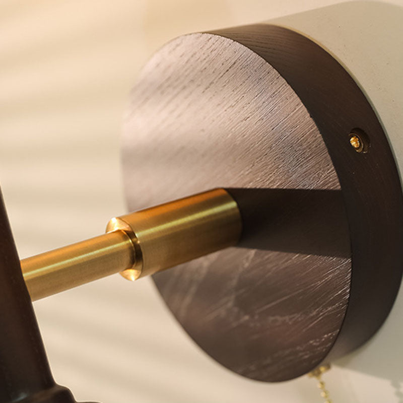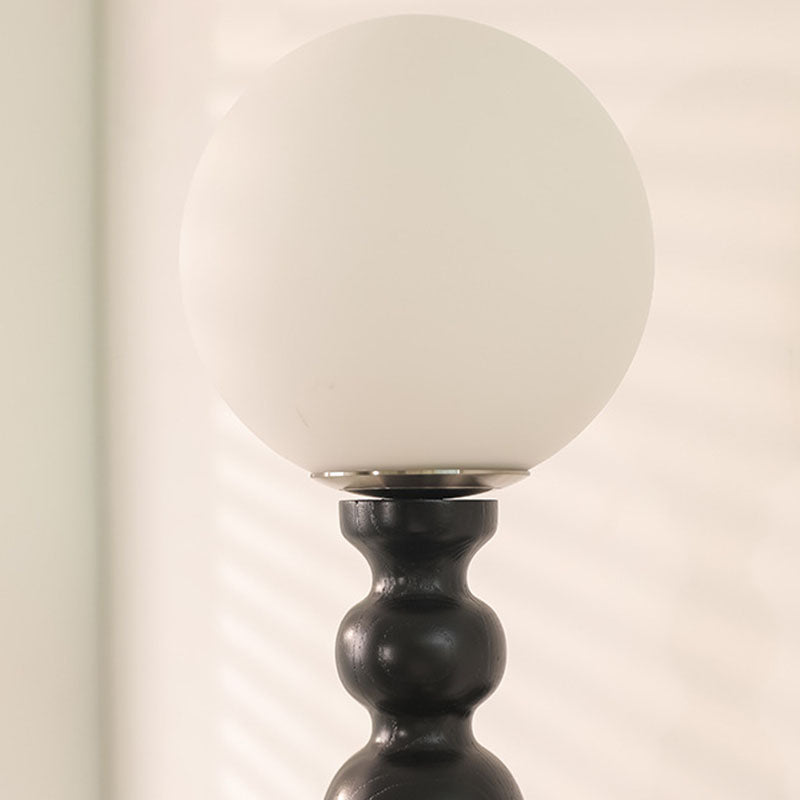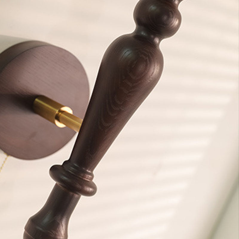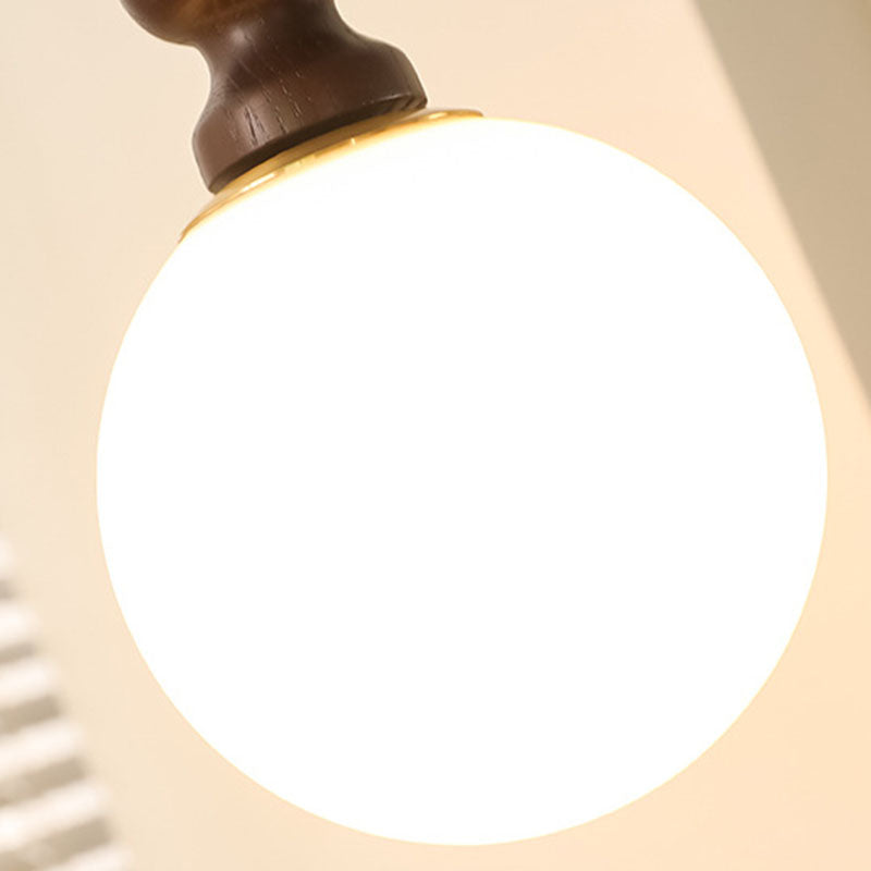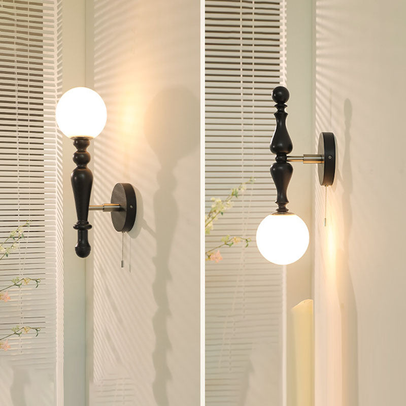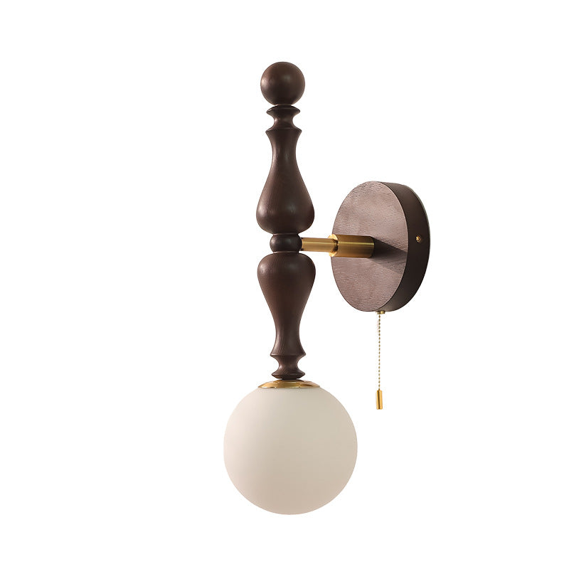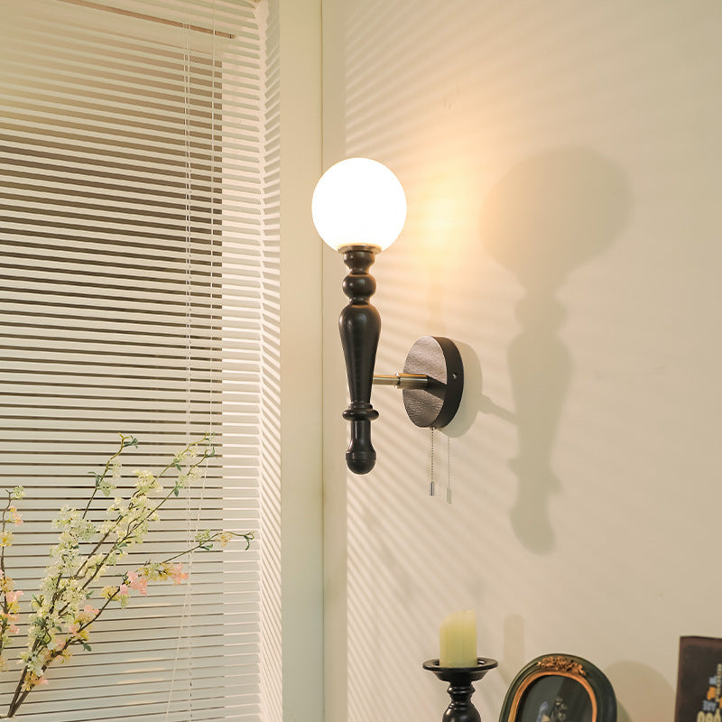 Traditional French Ash Wood Rod Glass Ball Shade 1-Light Wall Sconce Lamp For Bedroom