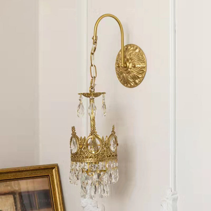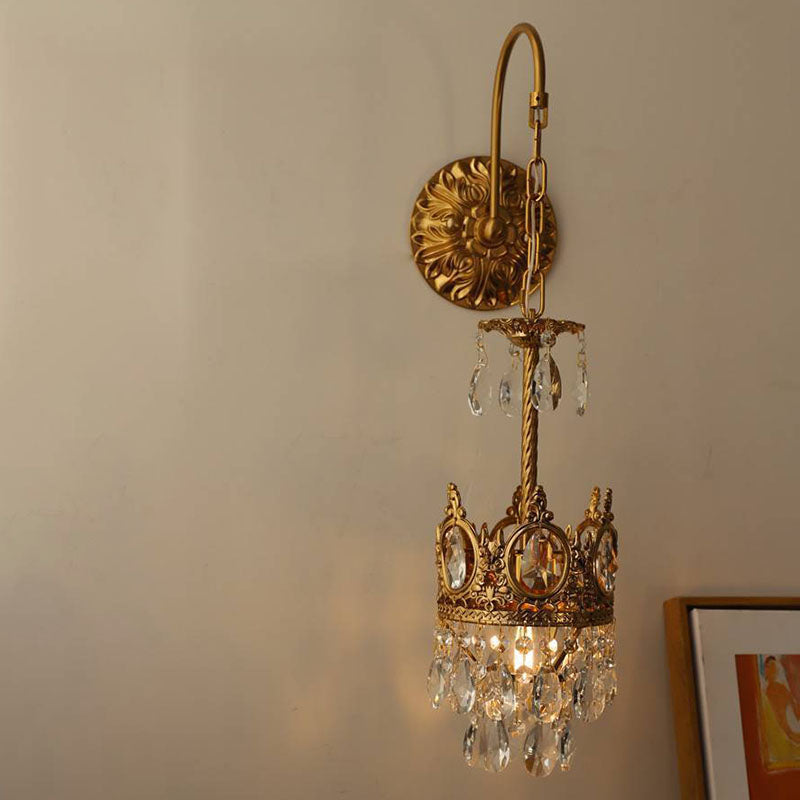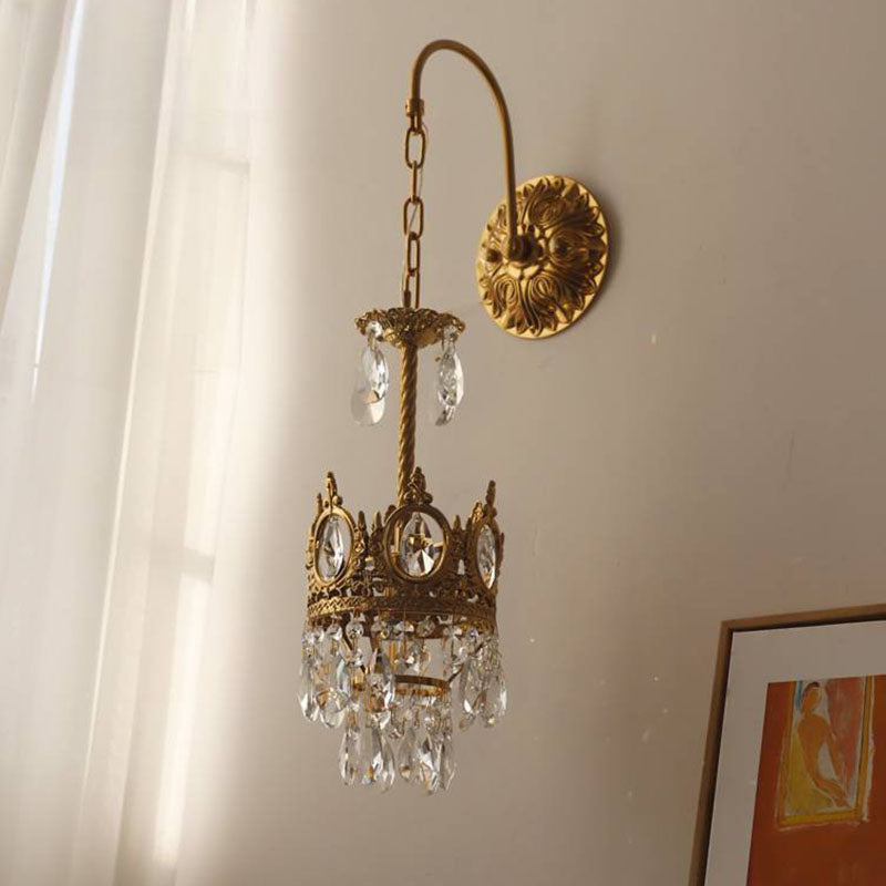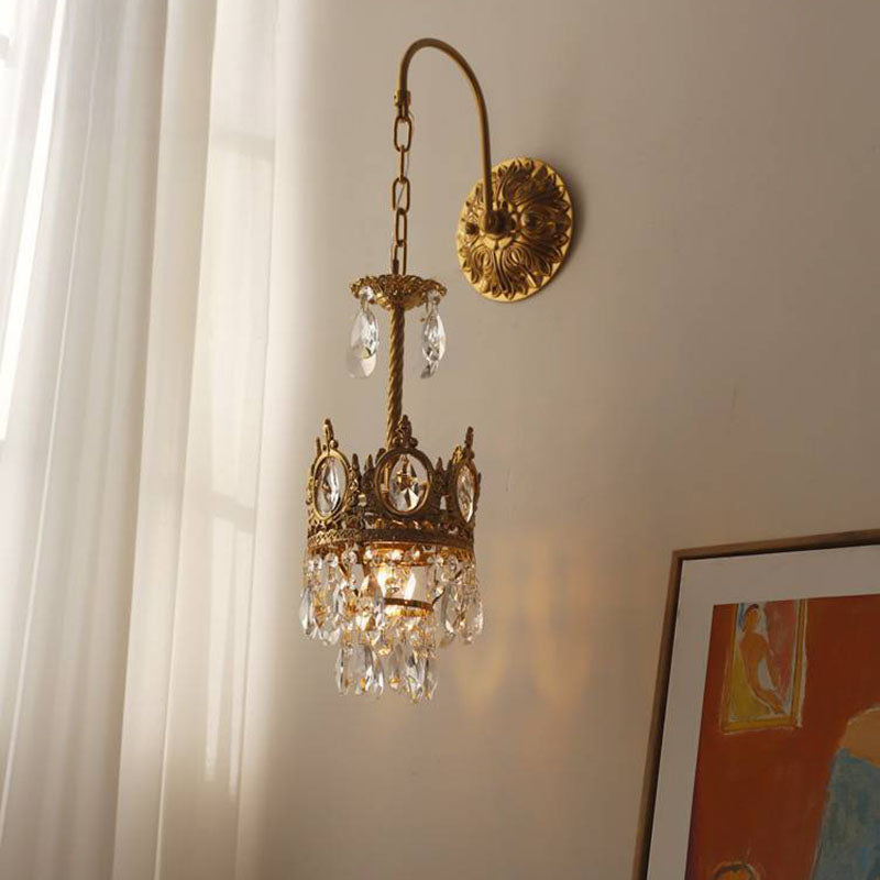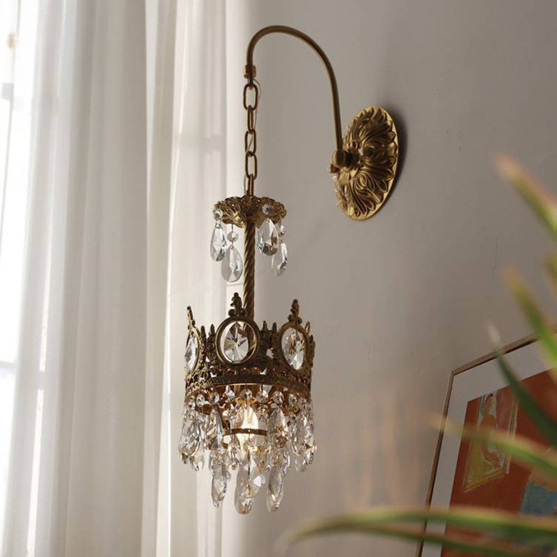Traditional French Bent Crown Copper Crystal 1-Light Wall Sconce Lamp For Bedroom