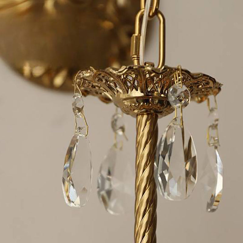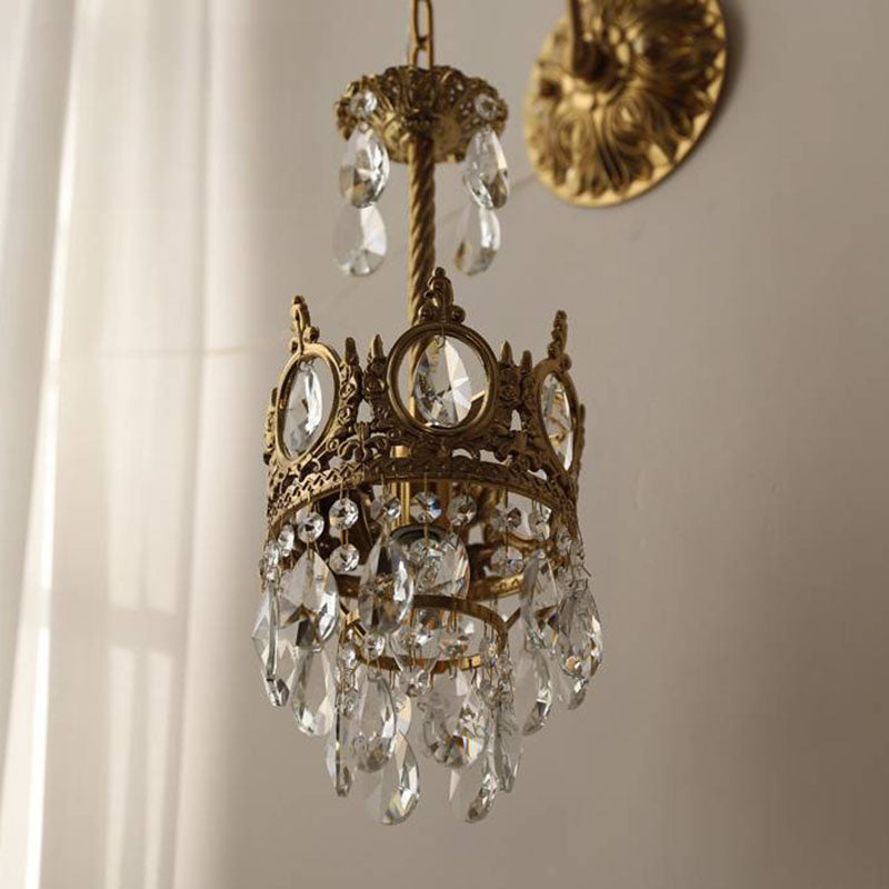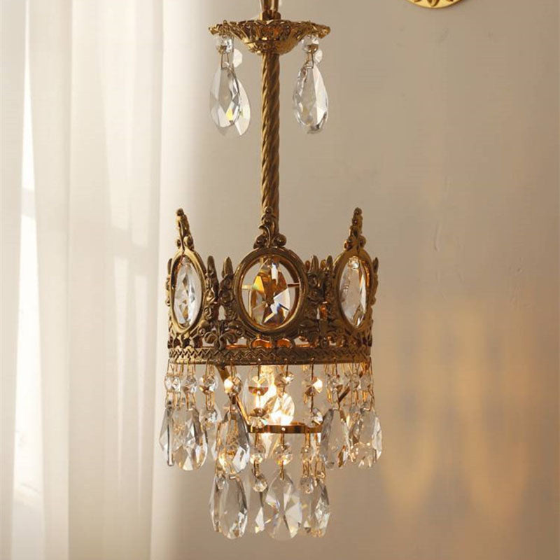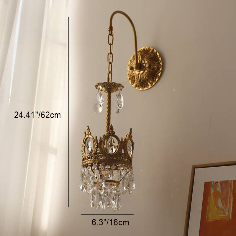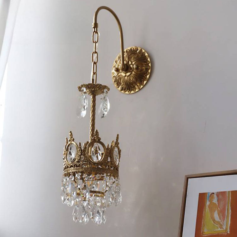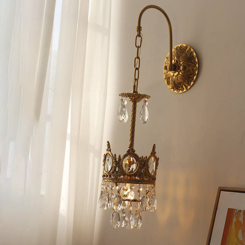 Traditional French Bent Crown Copper Crystal 1-Light Wall Sconce Lamp For Bedroom