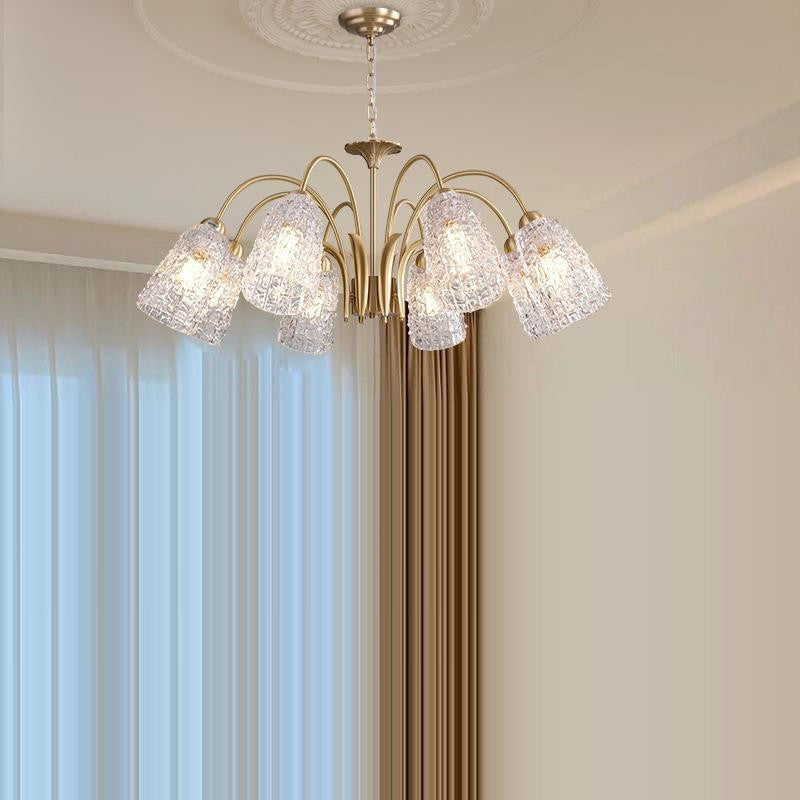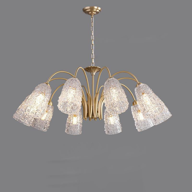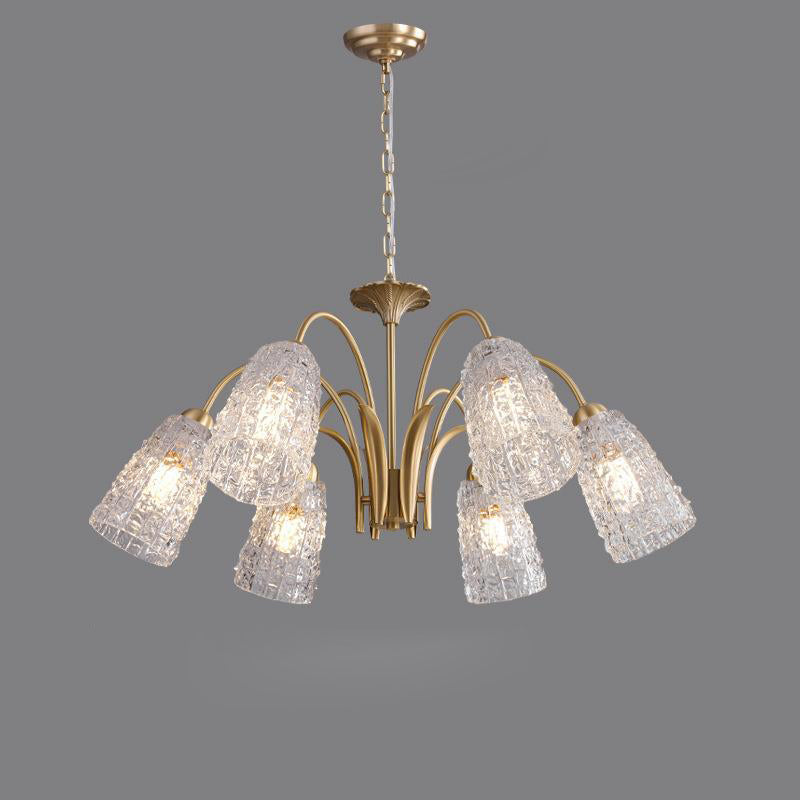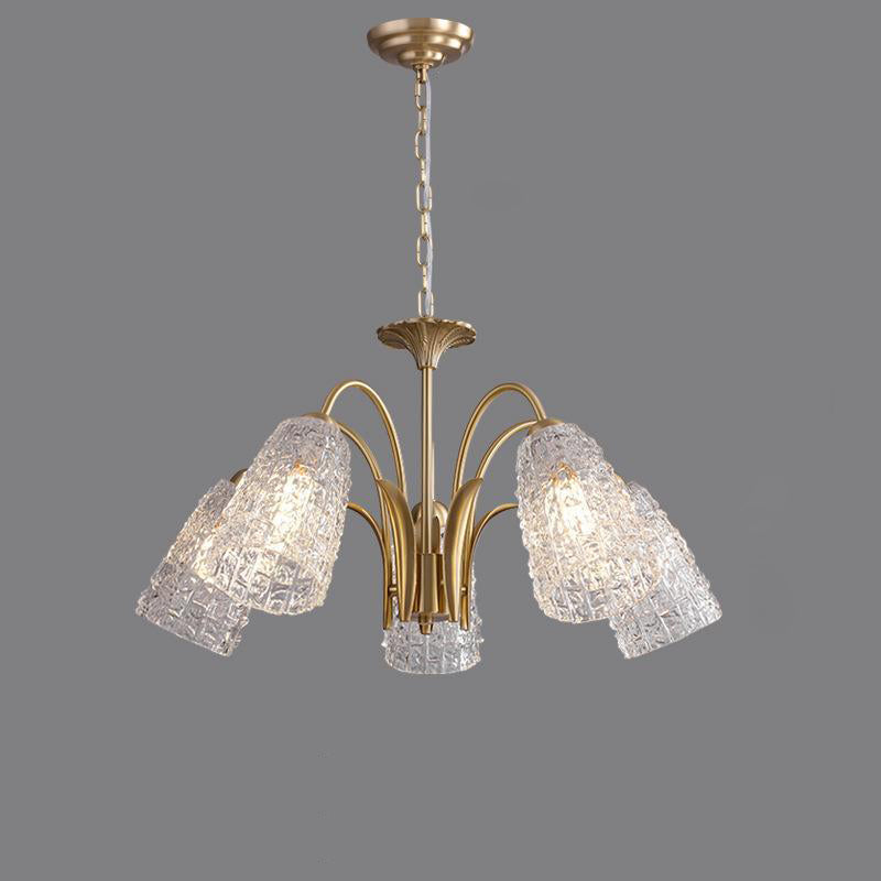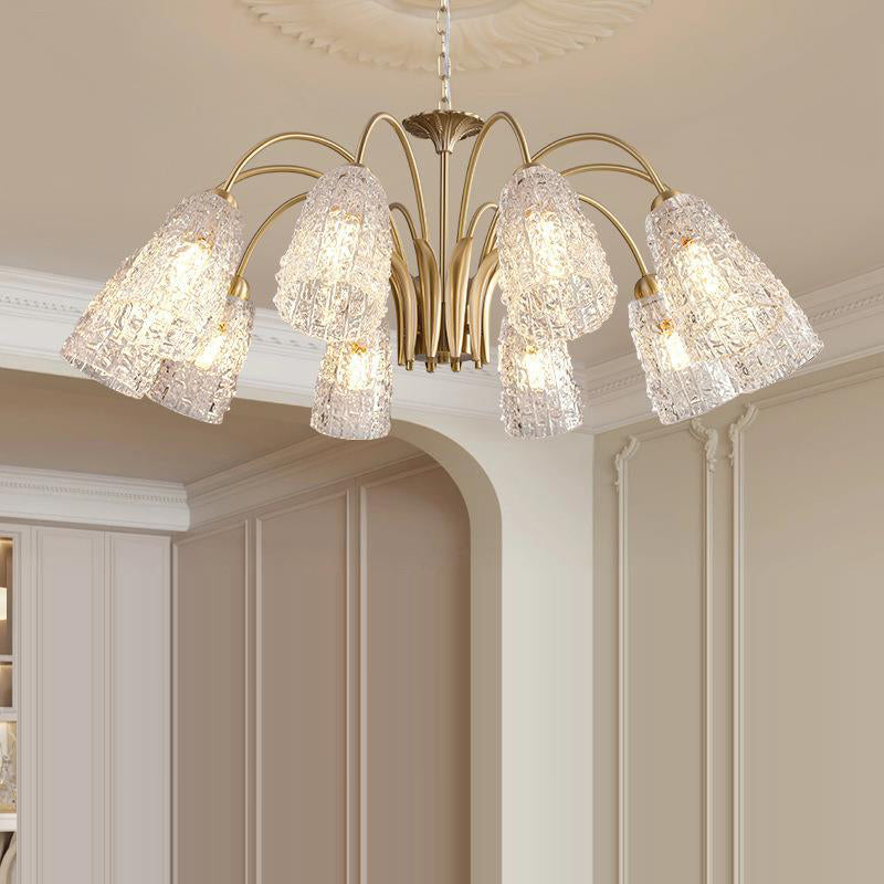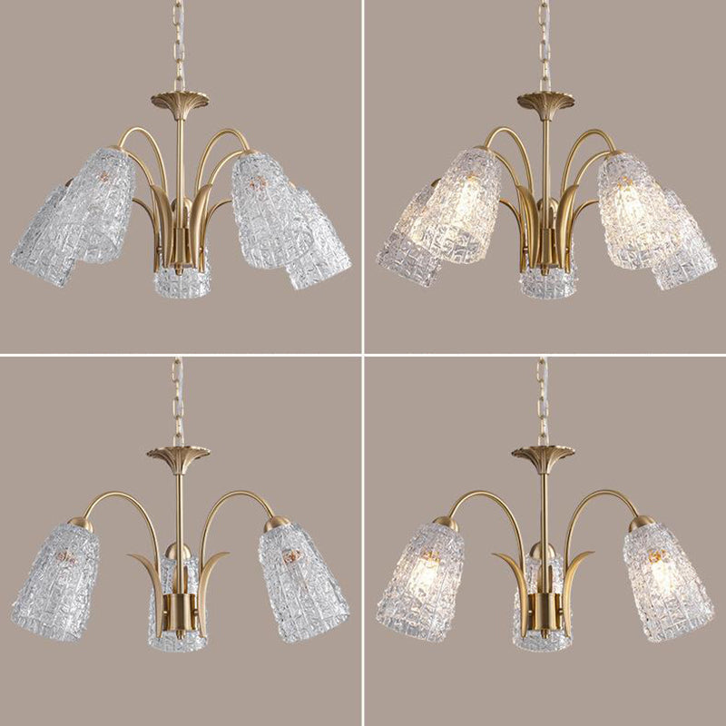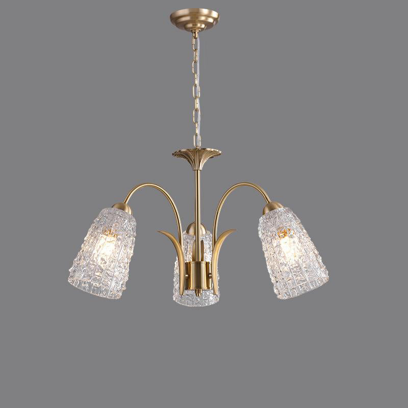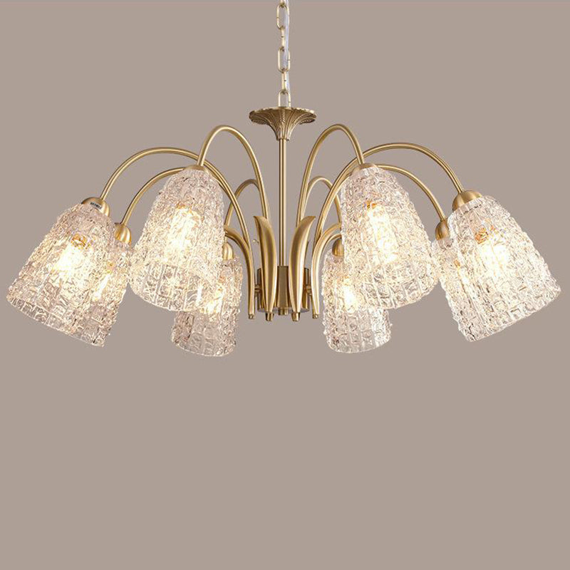 Traditional French Branch Bend Flared Diamond Glass Brass 3/5/6/8/10 Light Chandelier For Living Room
