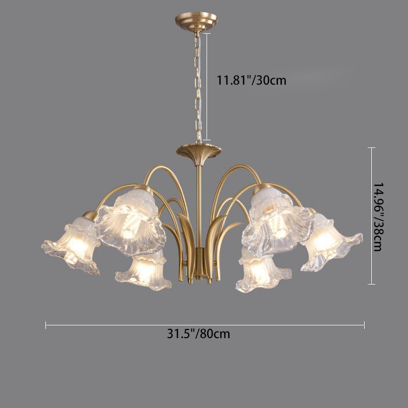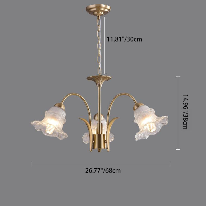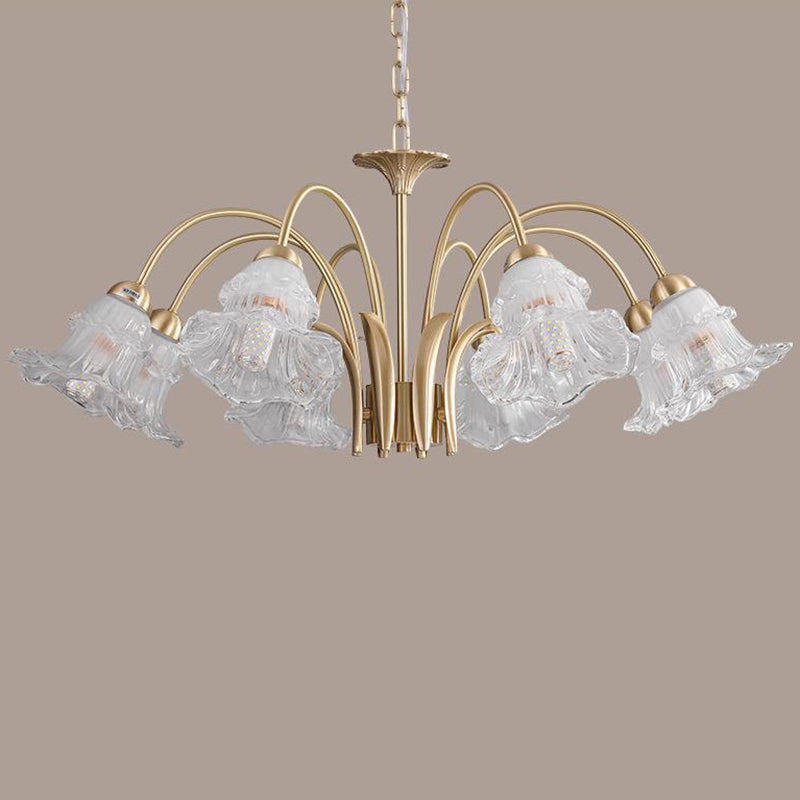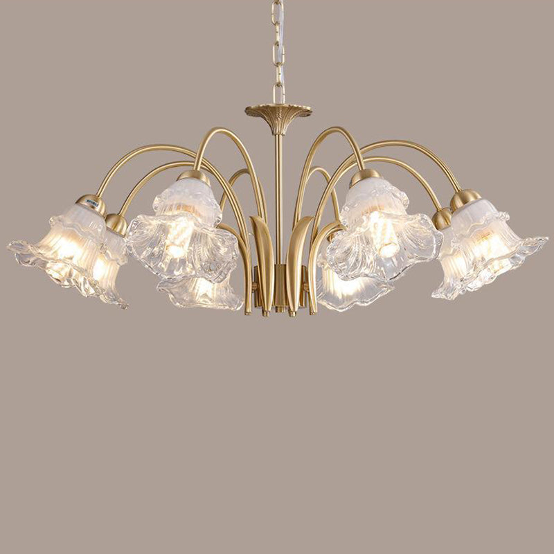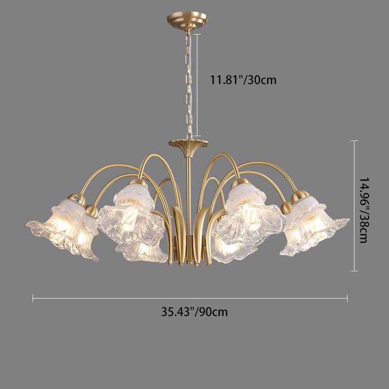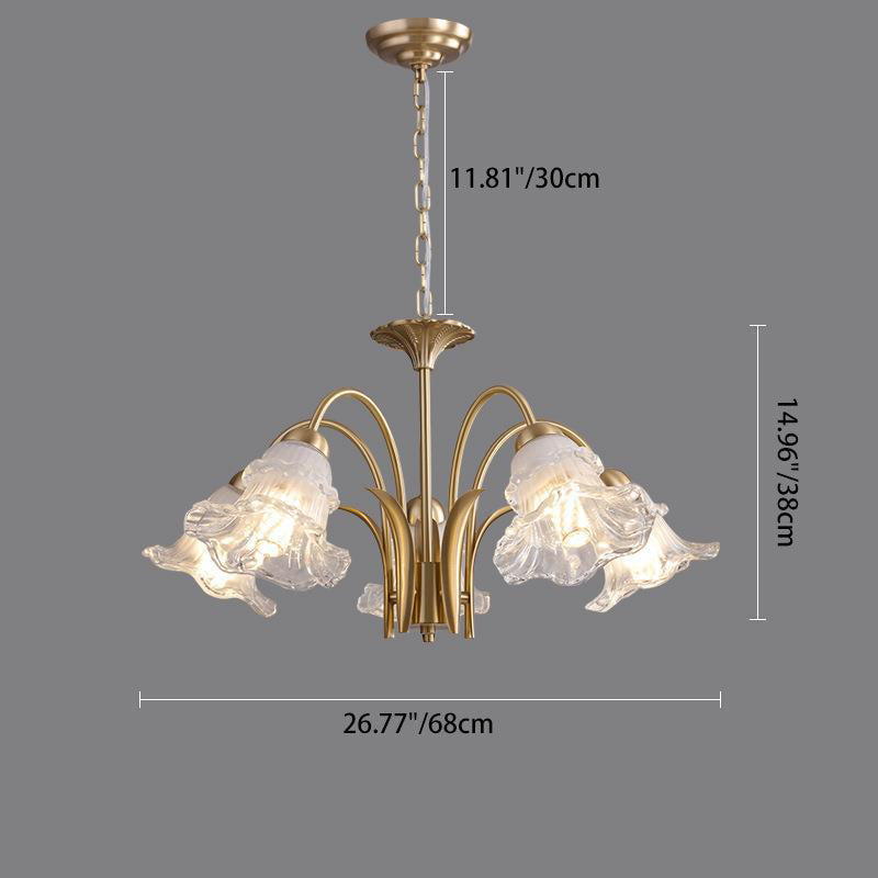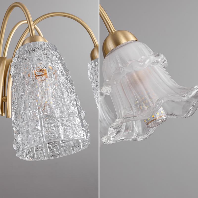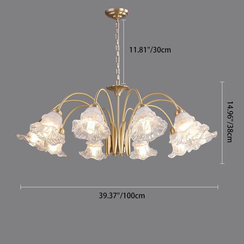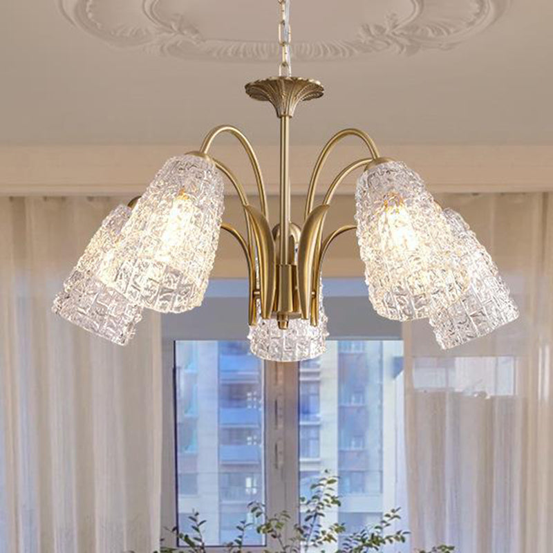Traditional French Branch Bend Flared Diamond Glass Brass 3/5/6/8/10 Light Chandelier For Living Room