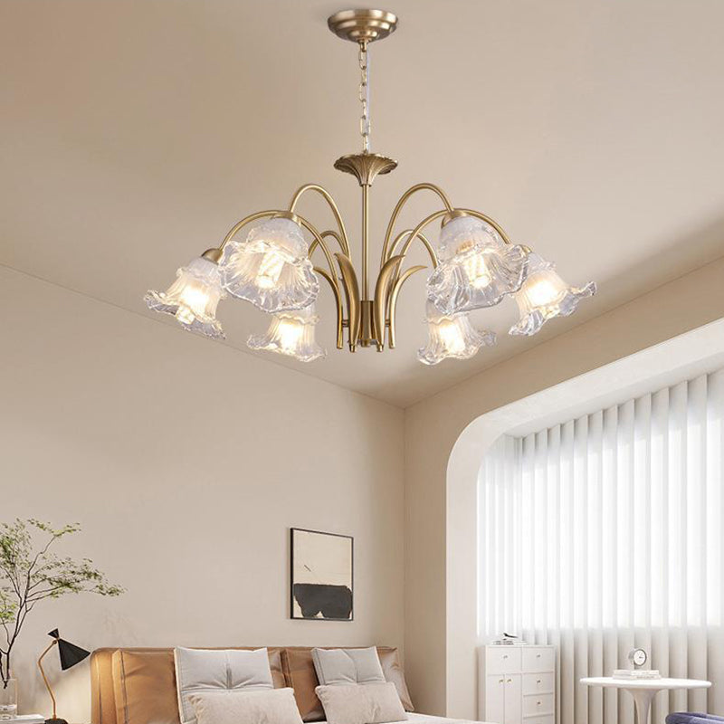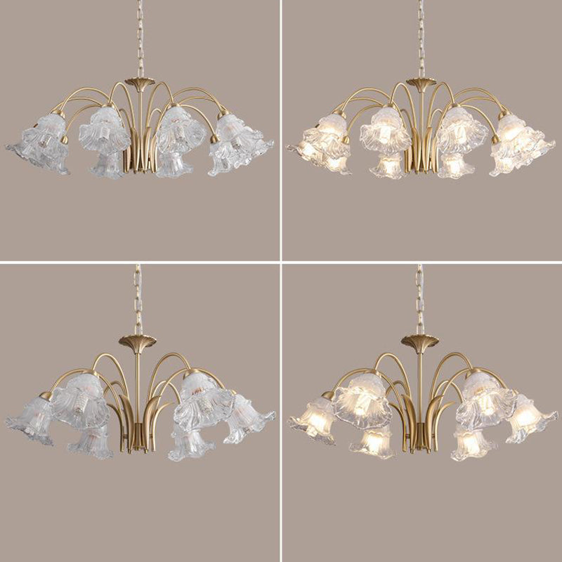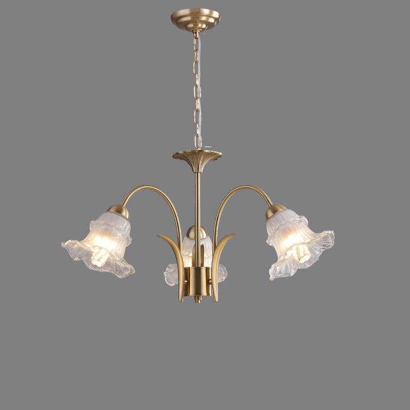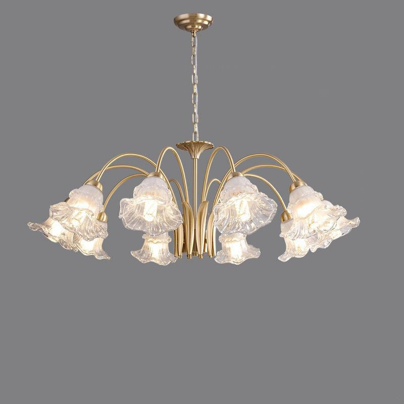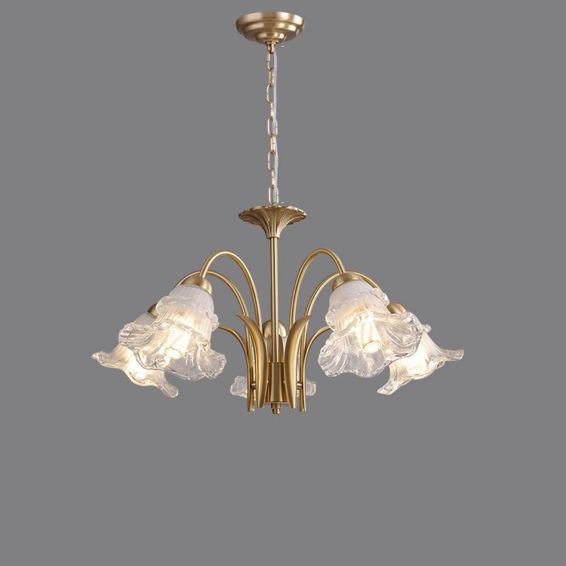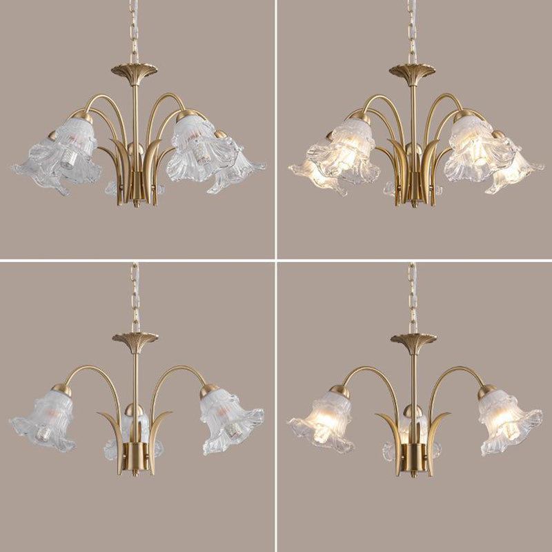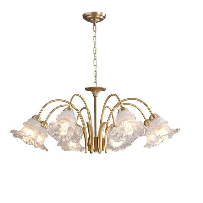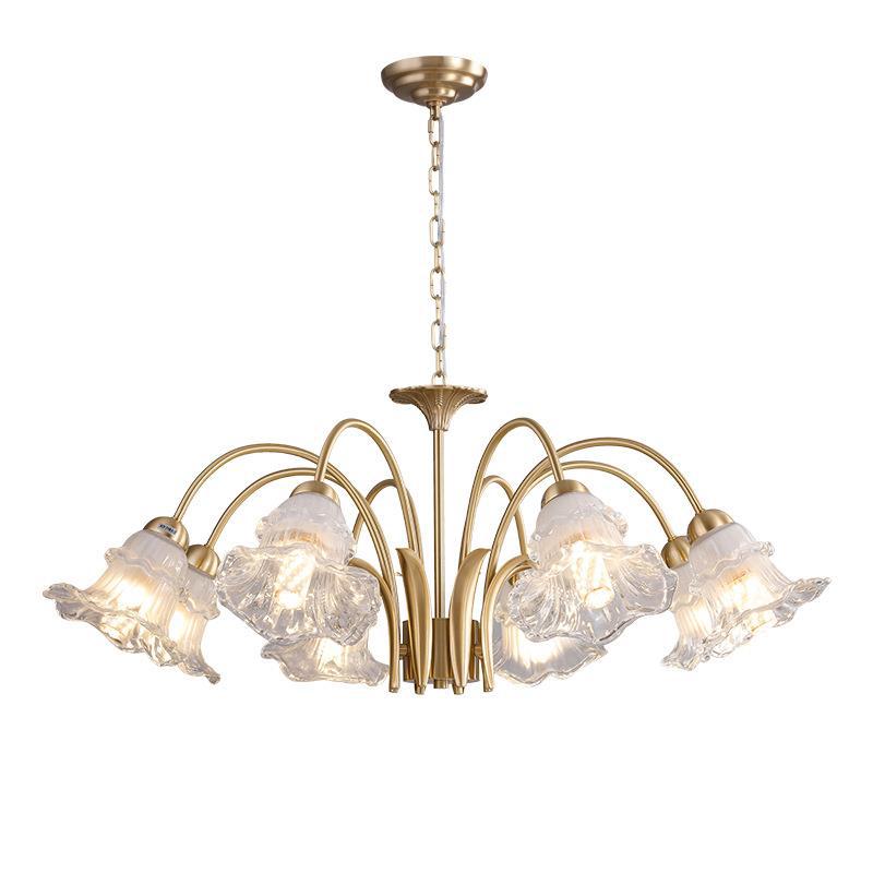 Traditional French Branch Bend Flared Diamond Glass Brass 3/5/6/8/10 Light Chandelier For Living Room