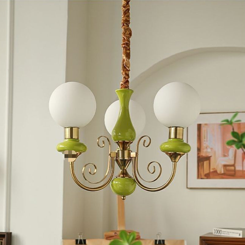 Traditional French Branch Curved Bottle Orb Pillar Iron Glass 3/5 Light Chandelier For Living Room