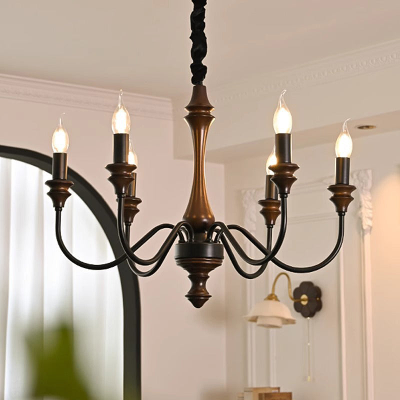 Traditional French Branch Curved Rod Candelabra Solid Wood Iron 5/6/8/10 Light Chandelier For Living Room