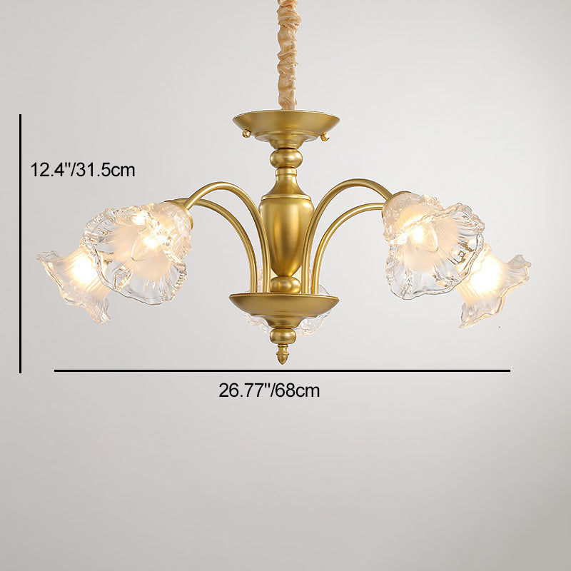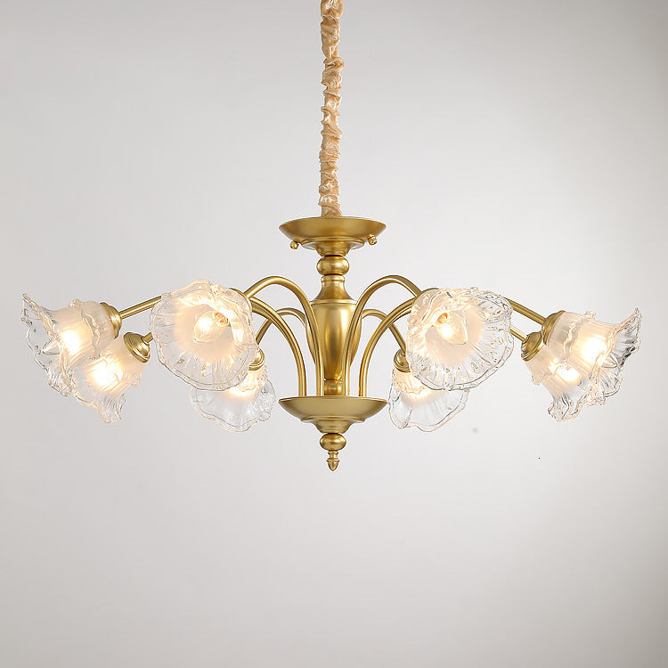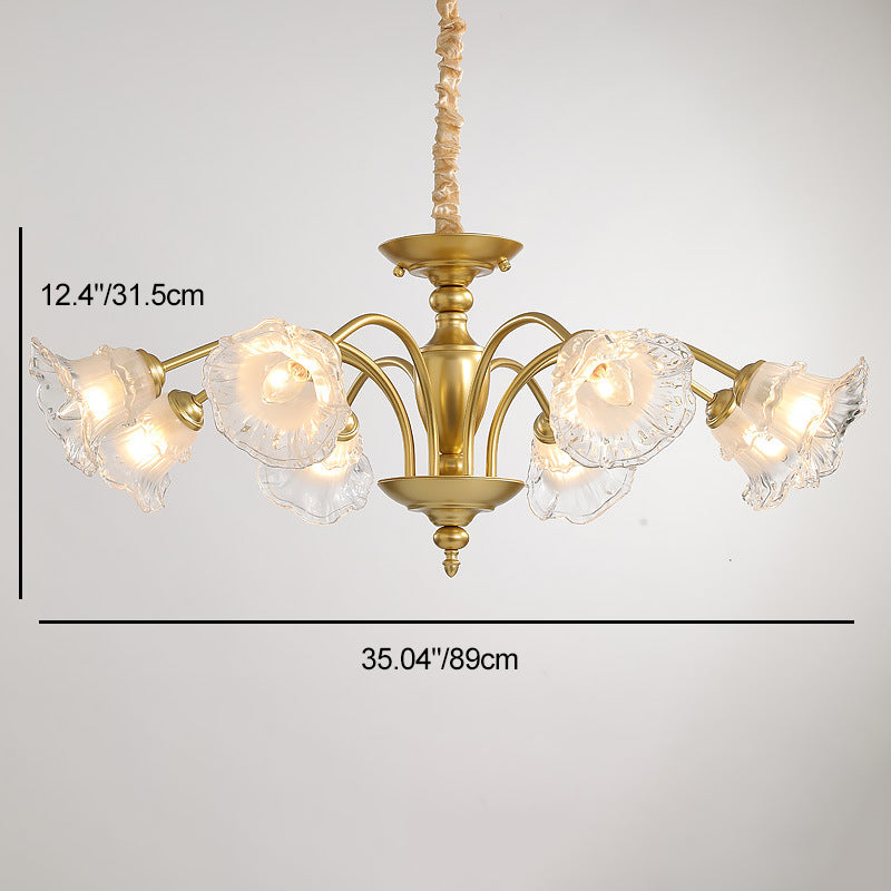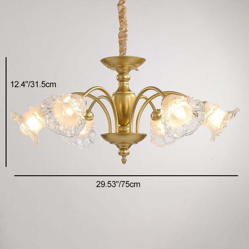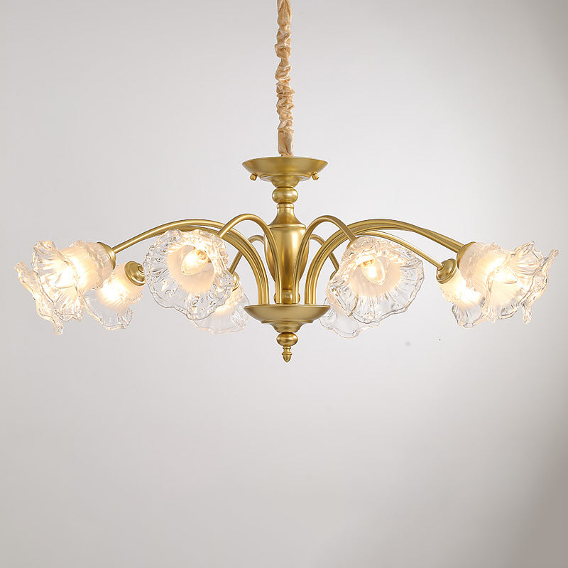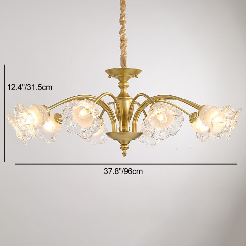 Traditional French Branch Curved Rod Flared Flower Iron Glass 5/6/8/10 Light Chandelier For Living Room