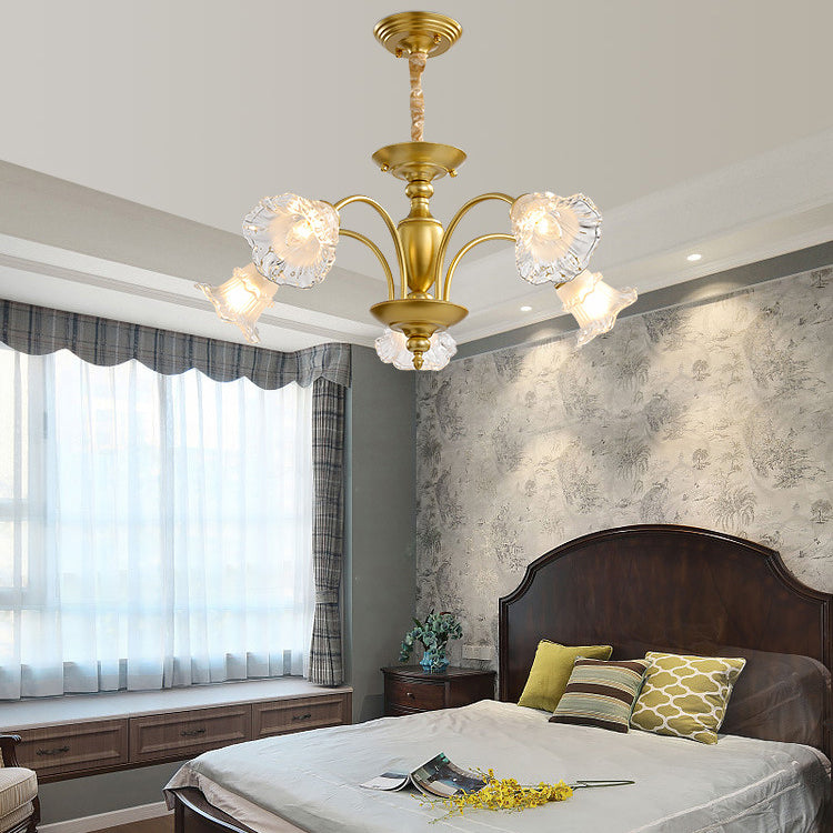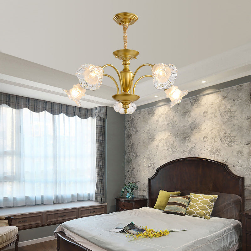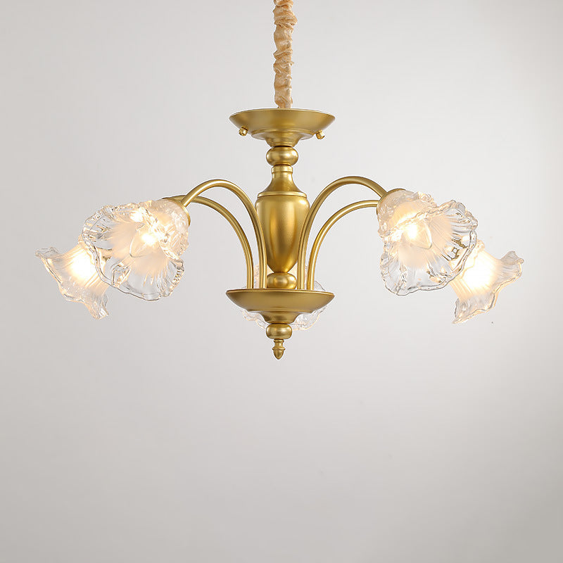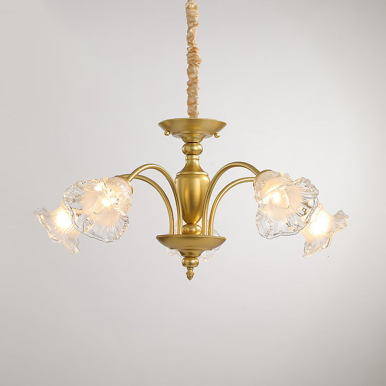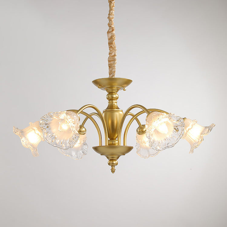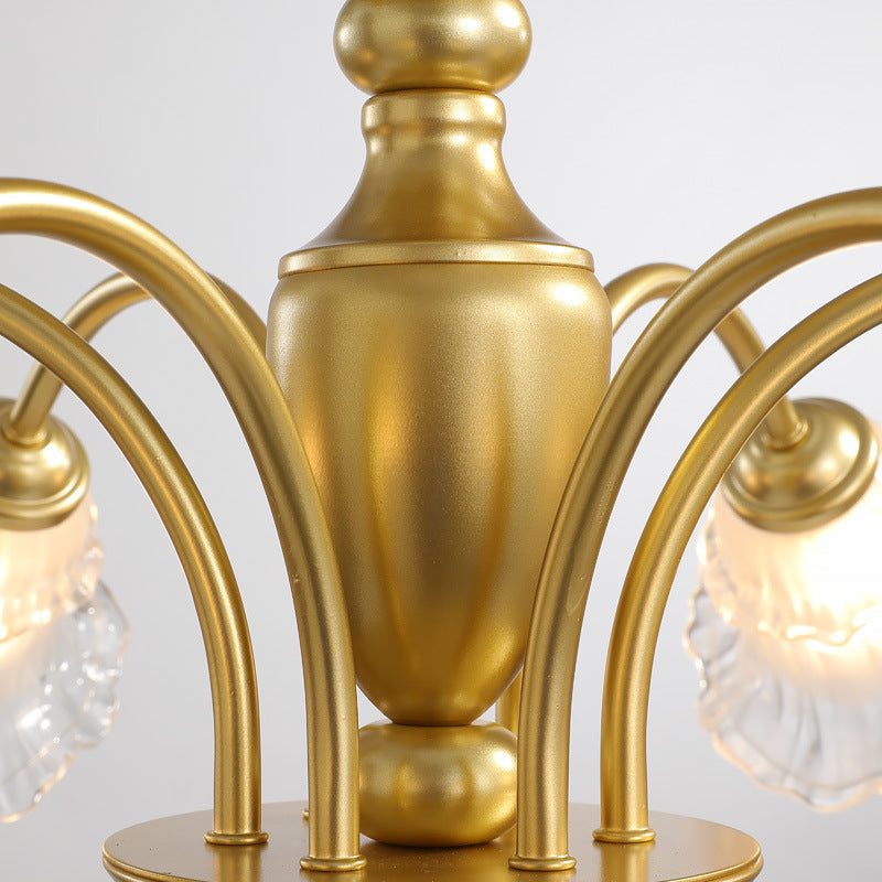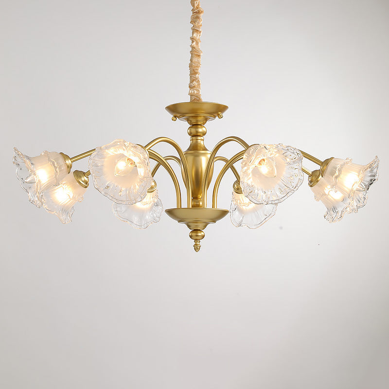 Traditional French Branch Curved Rod Flared Flower Iron Glass 5/6/8/10 Light Chandelier For Living Room