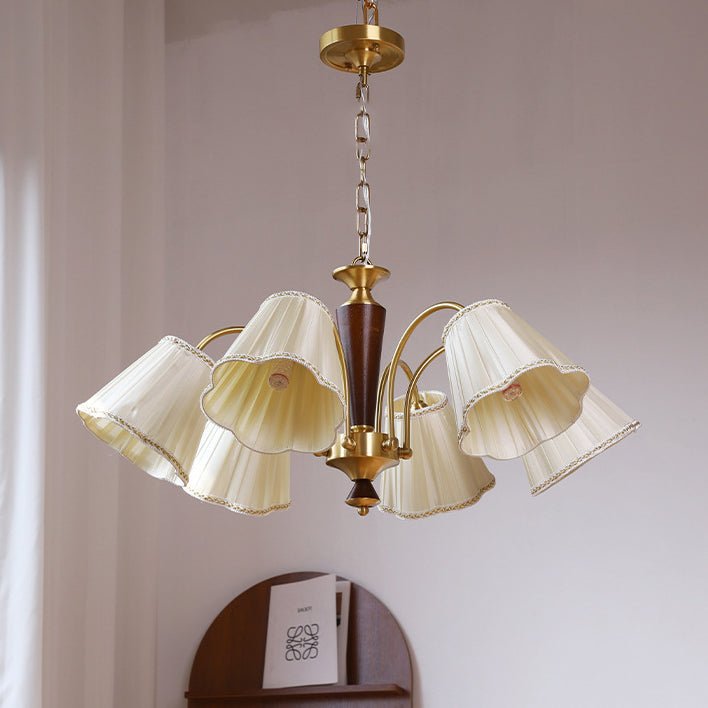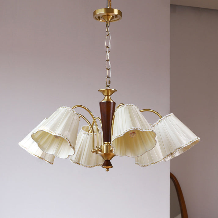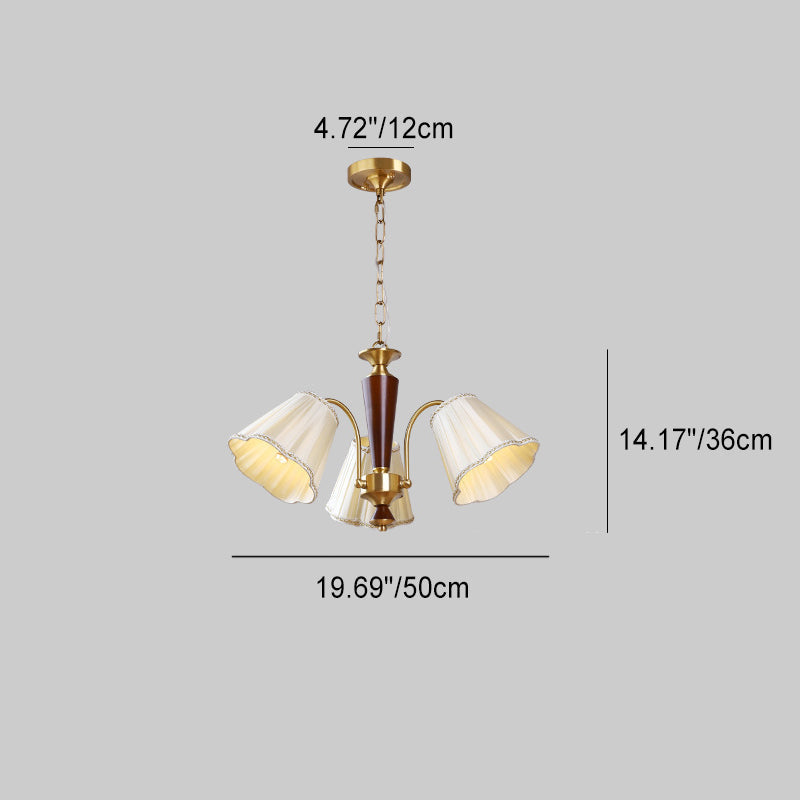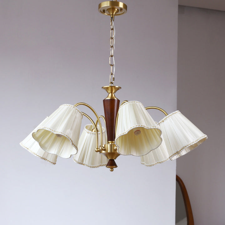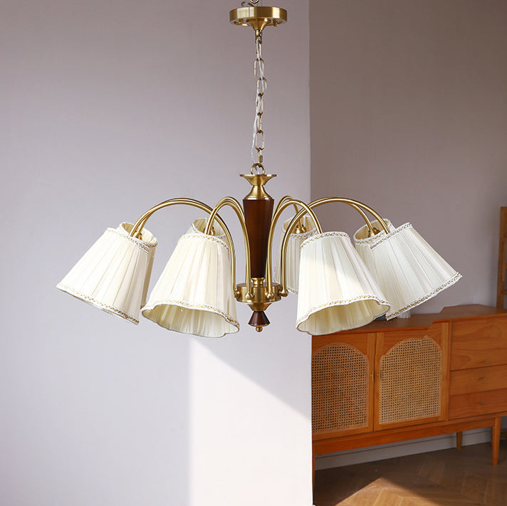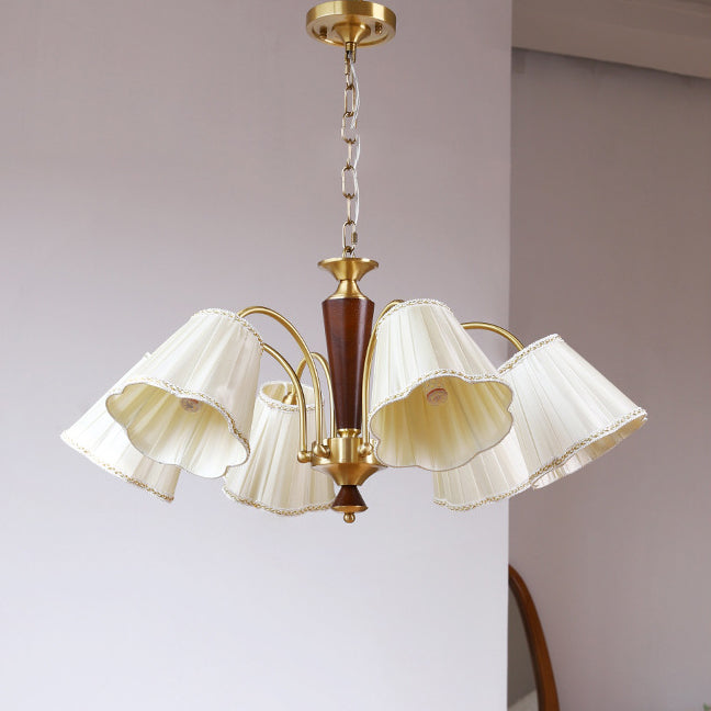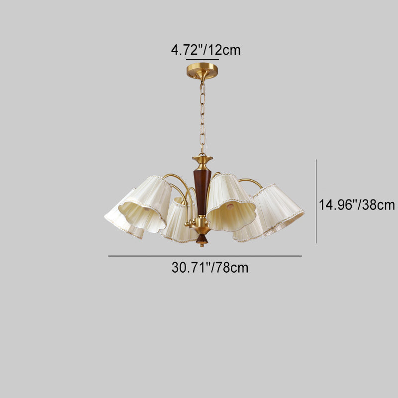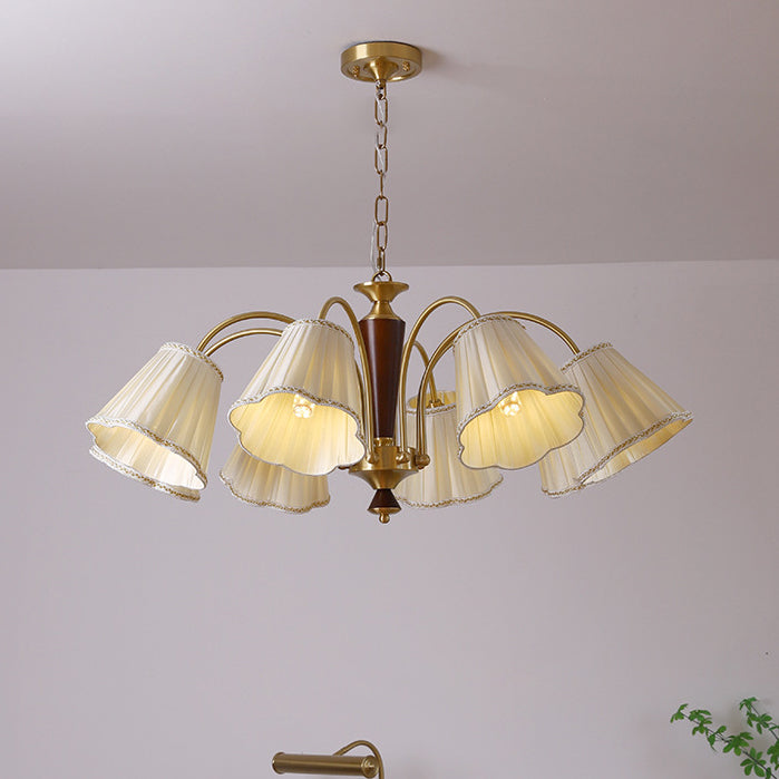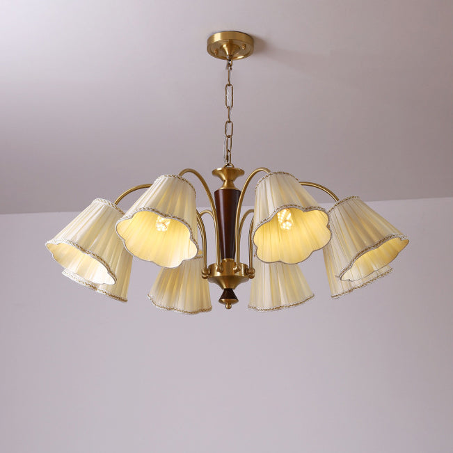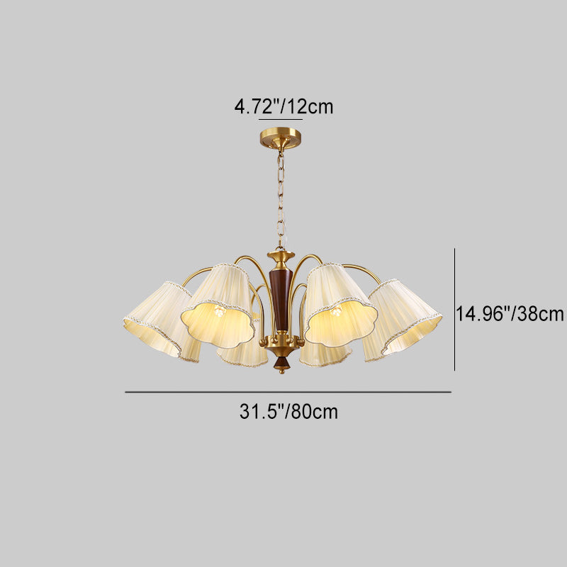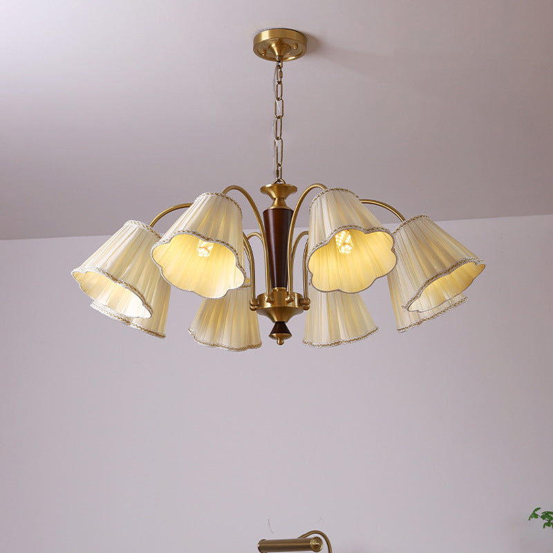Traditional French Branch Curved Rod Floral Stripe Fabric Shade Copper Wood Iron Frame 3/6/8 Light Chandelier For Living Room