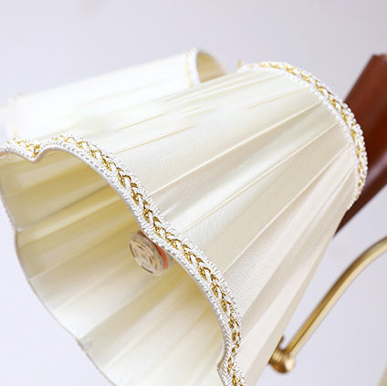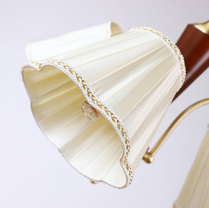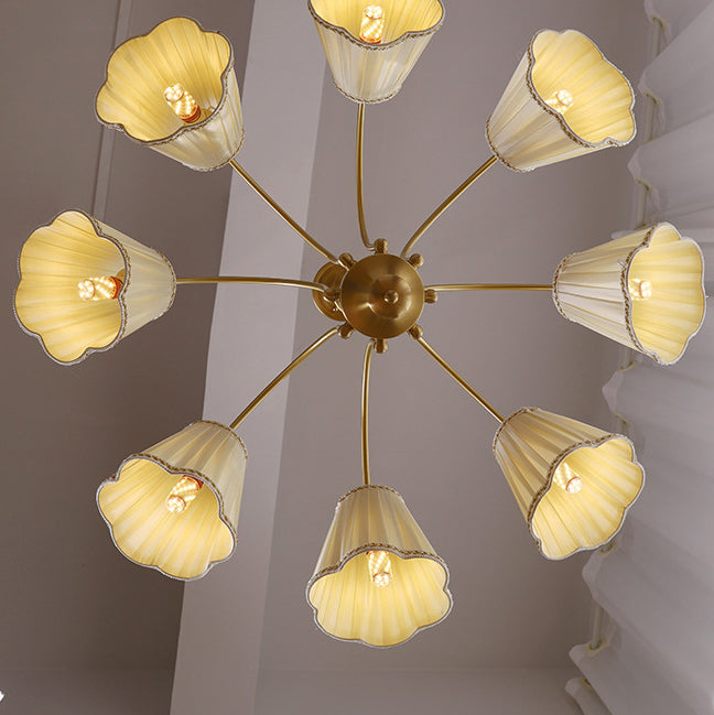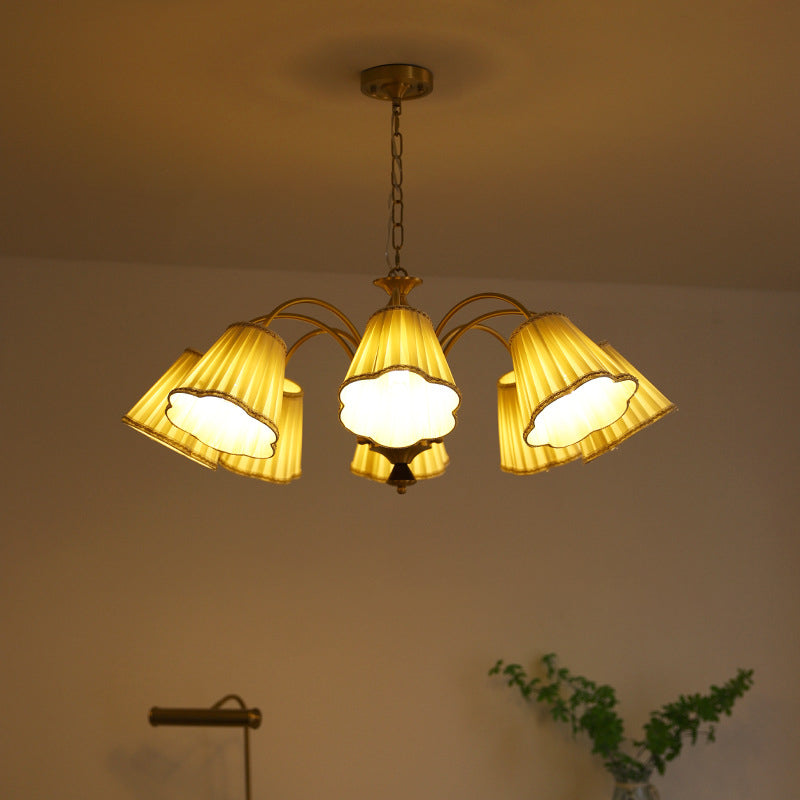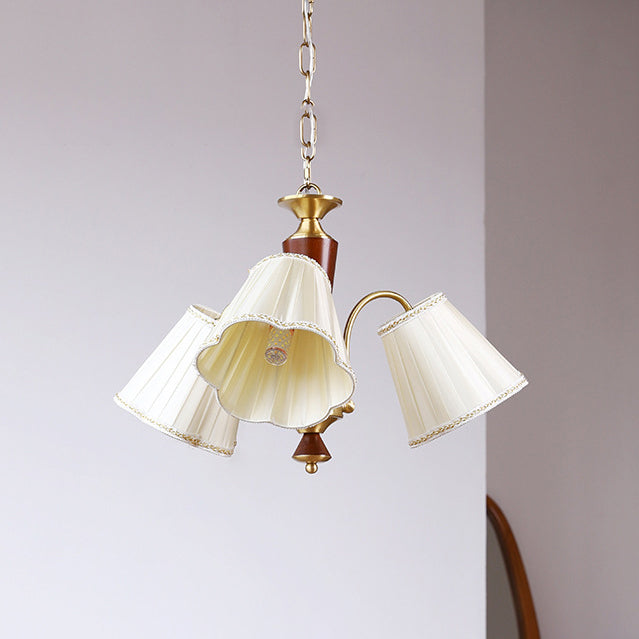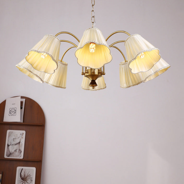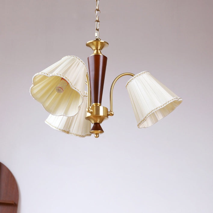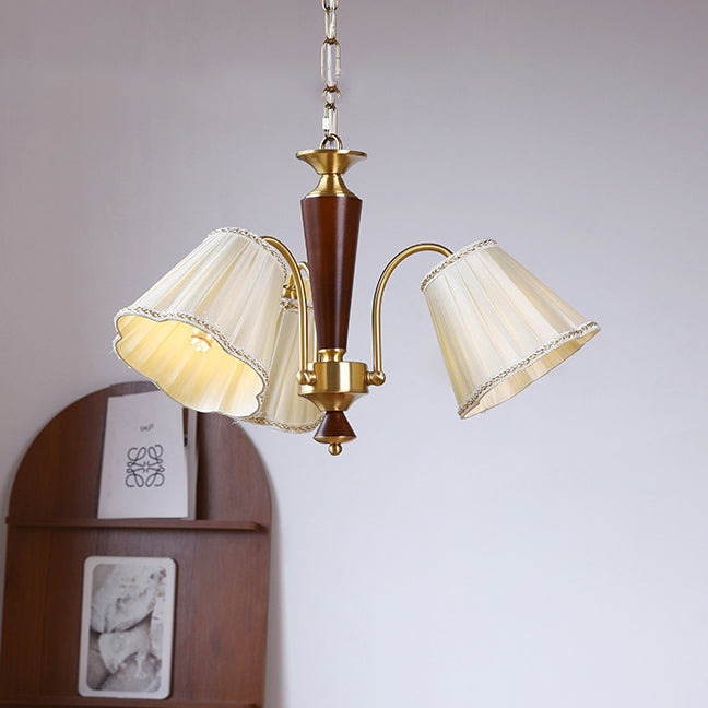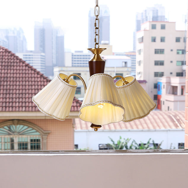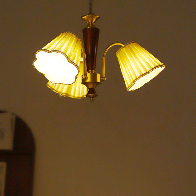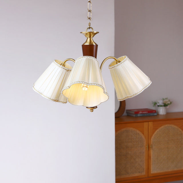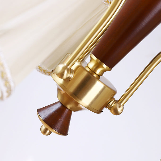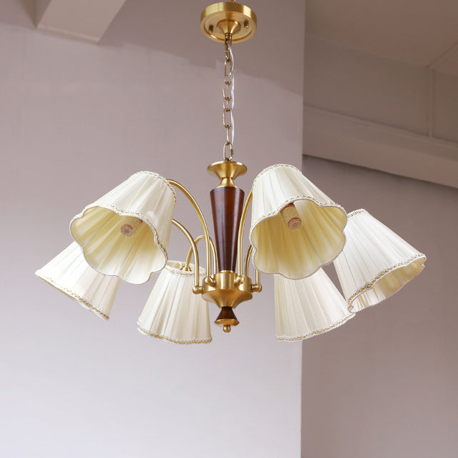 Traditional French Branch Curved Rod Floral Stripe Fabric Shade Copper Wood Iron Frame 3/6/8 Light Chandelier For Living Room