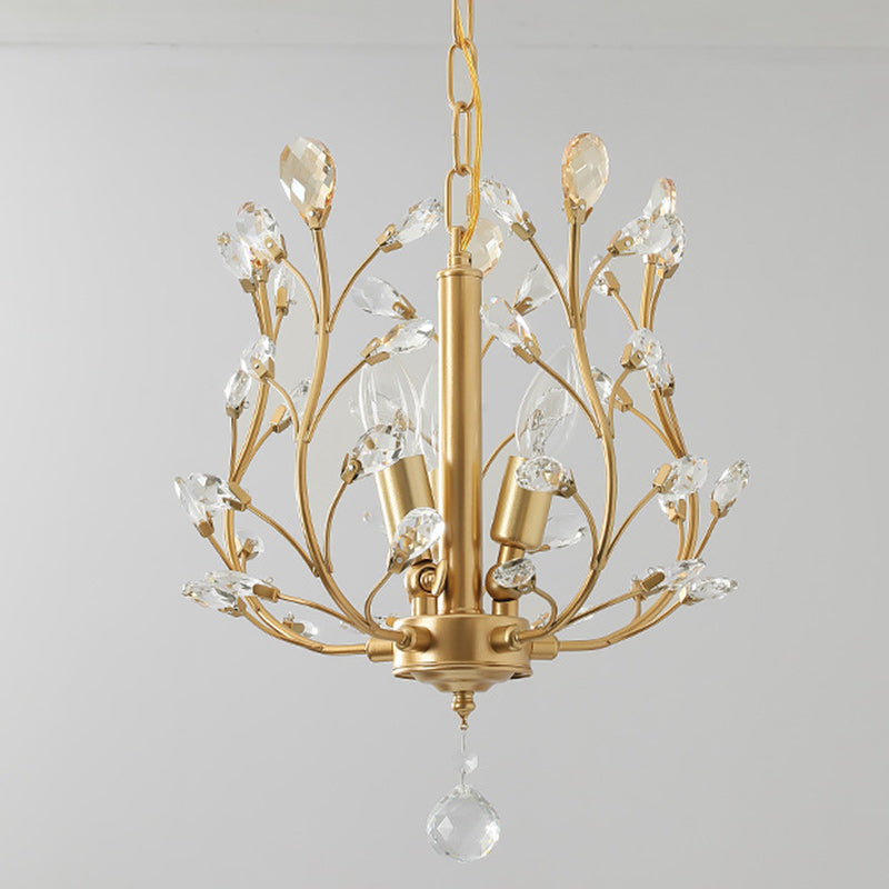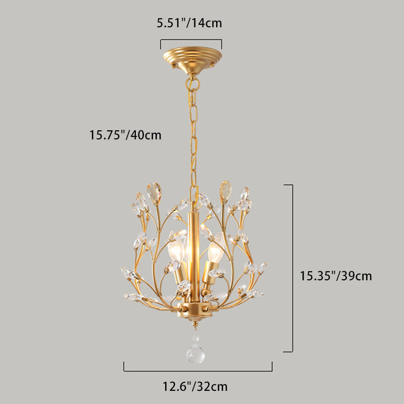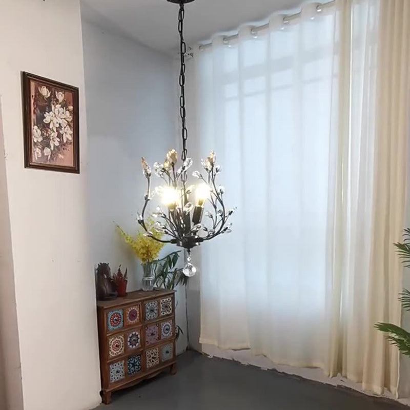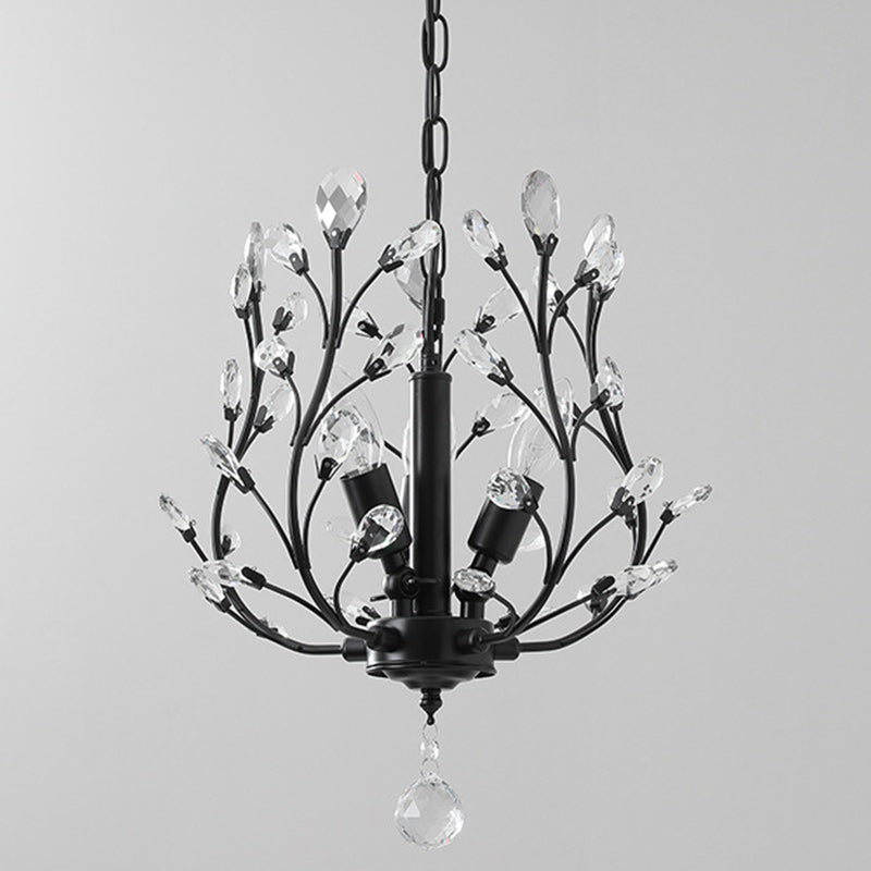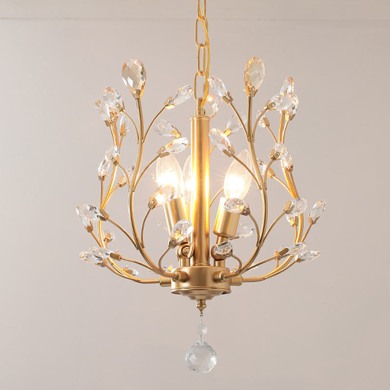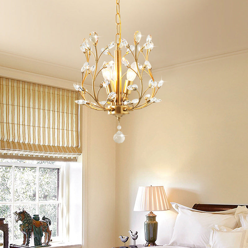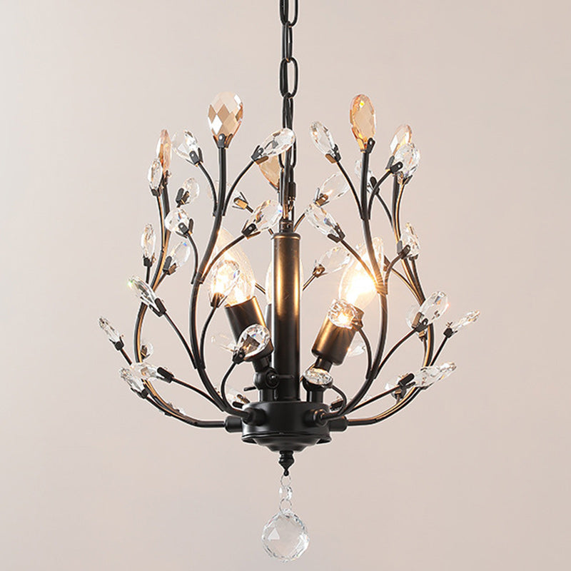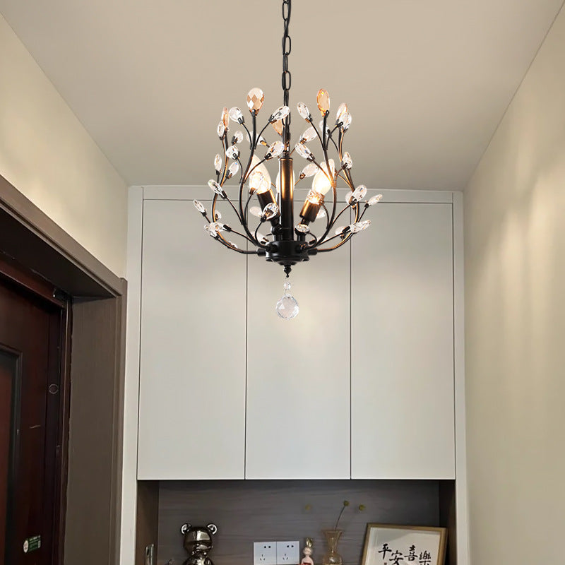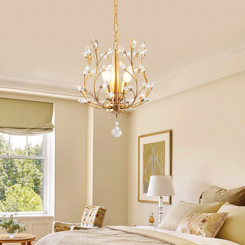 Traditional French Branch Dome Iron Crystal 3-Light Chandelier For Bedroom