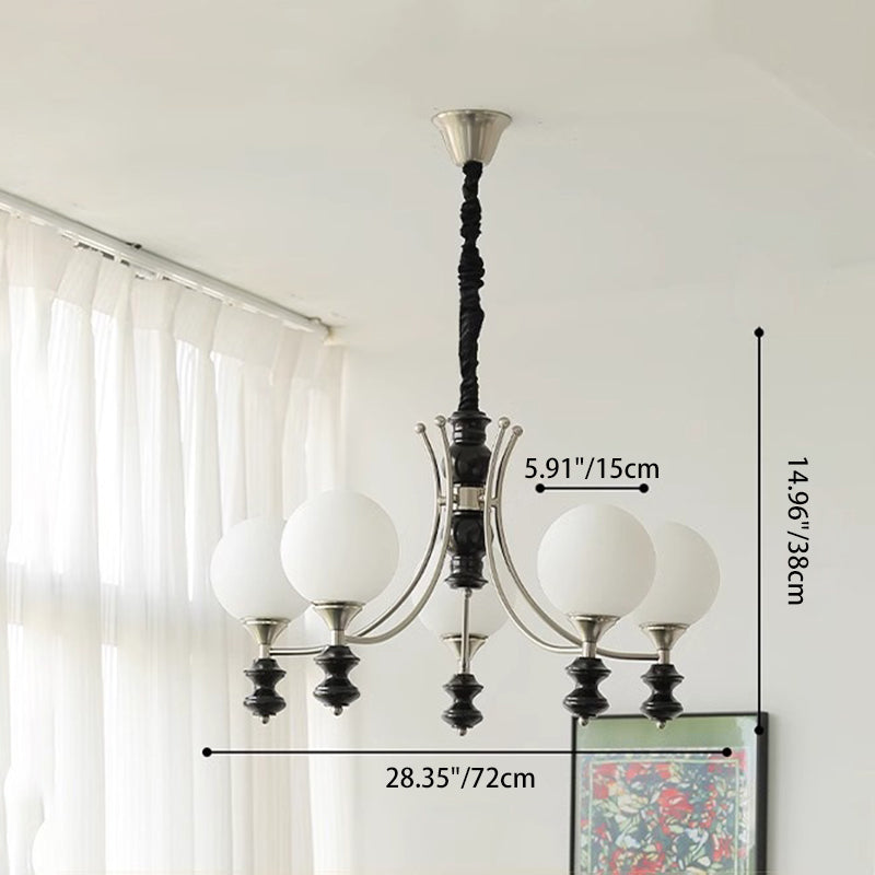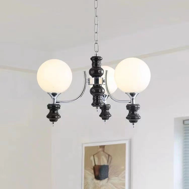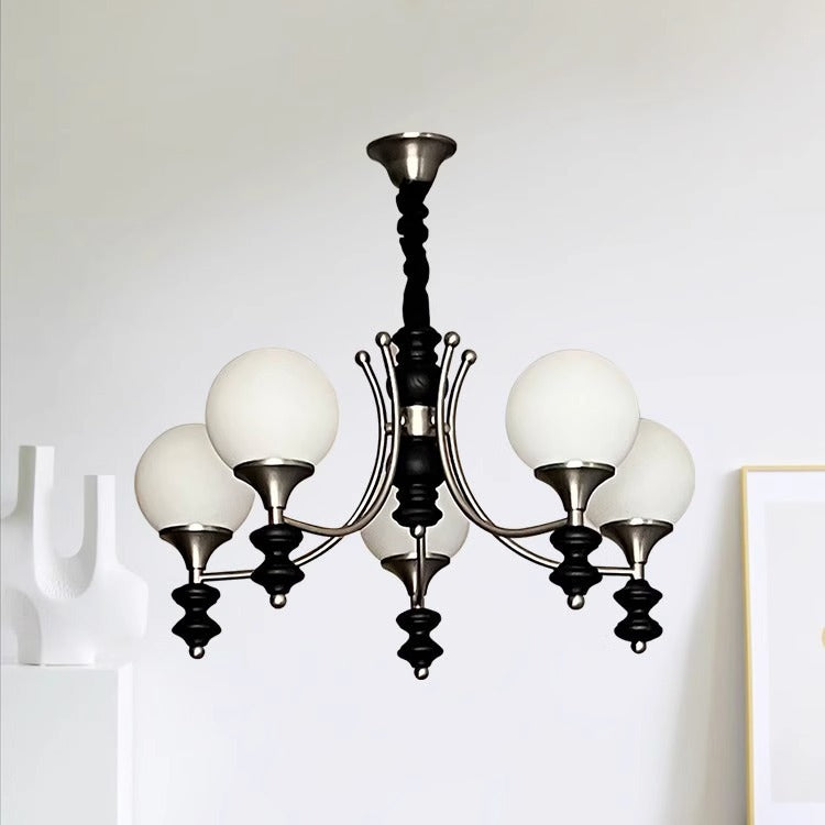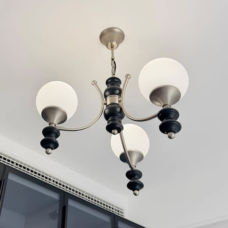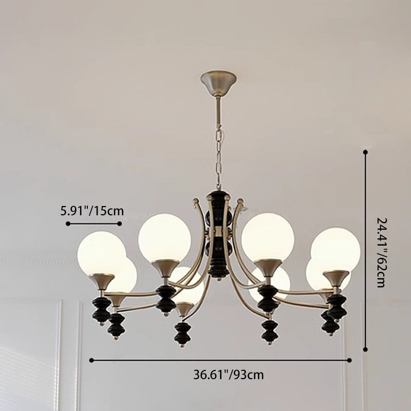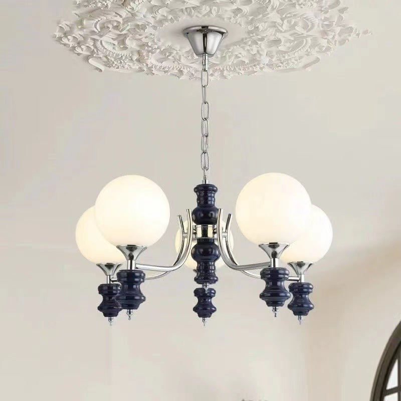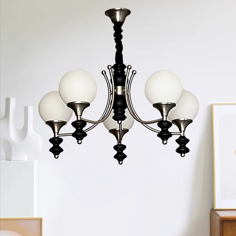 Traditional French Branch Globe Round Glass Ash Metal 3/5/6/8 Lights Chandelier For Living Room