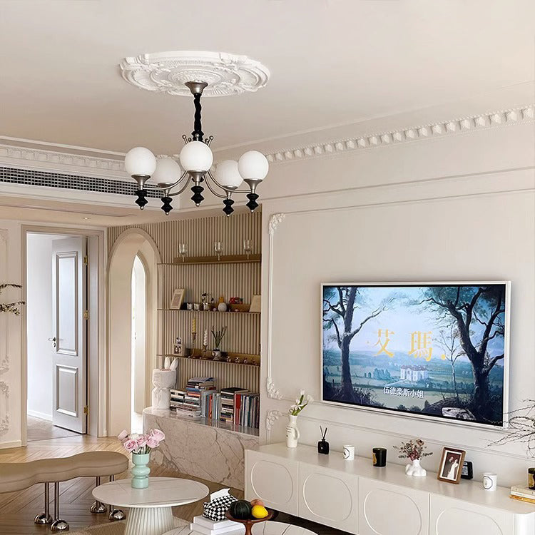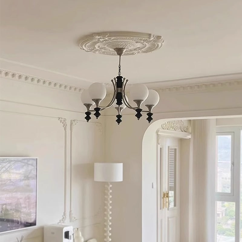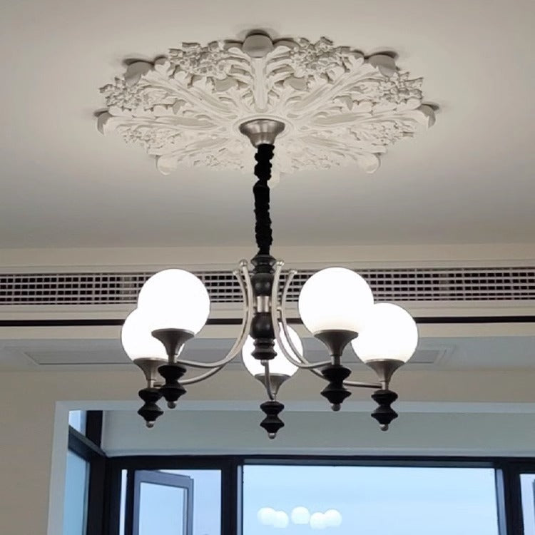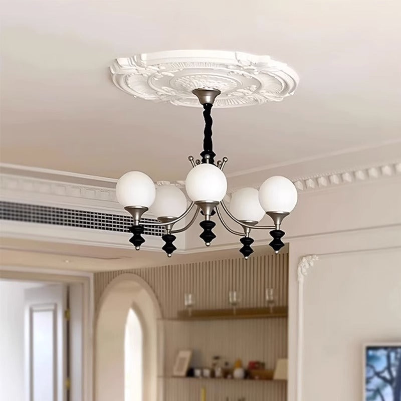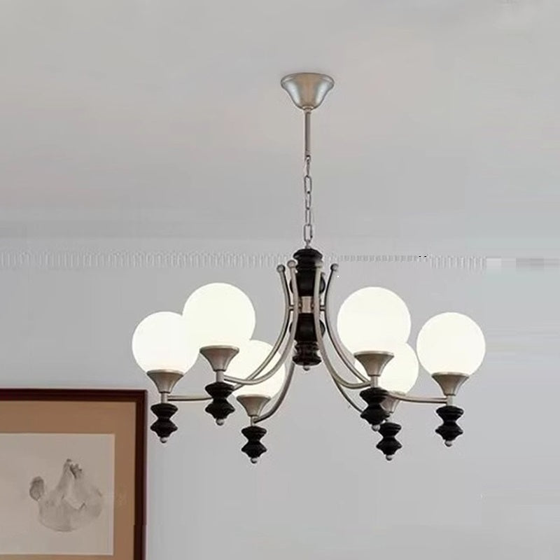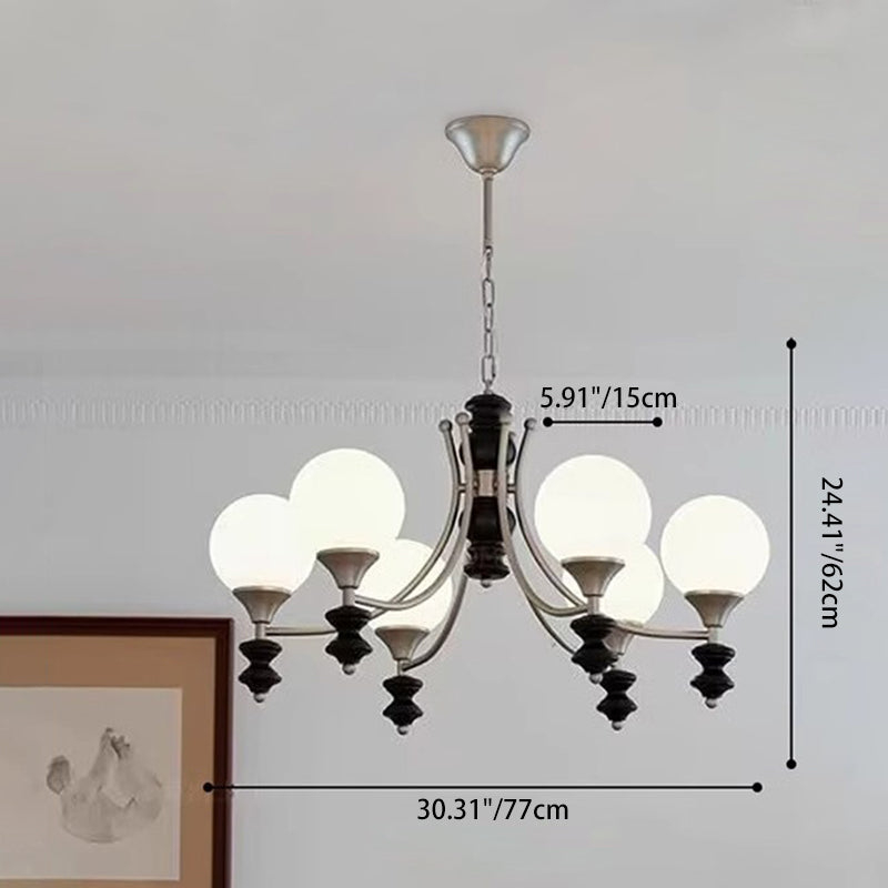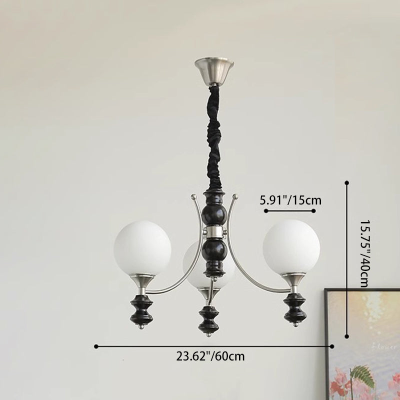 Traditional French Branch Globe Round Glass Ash Metal 3/5/6/8 Lights Chandelier For Living Room