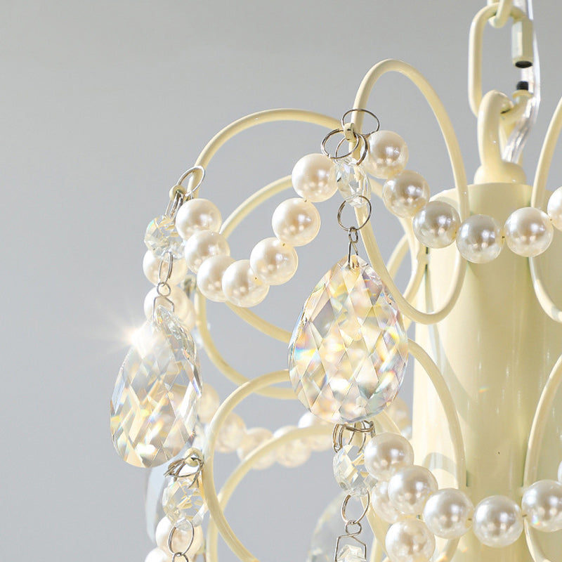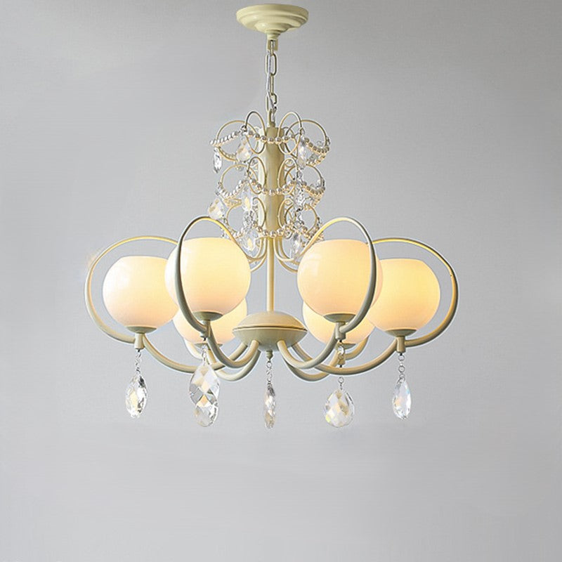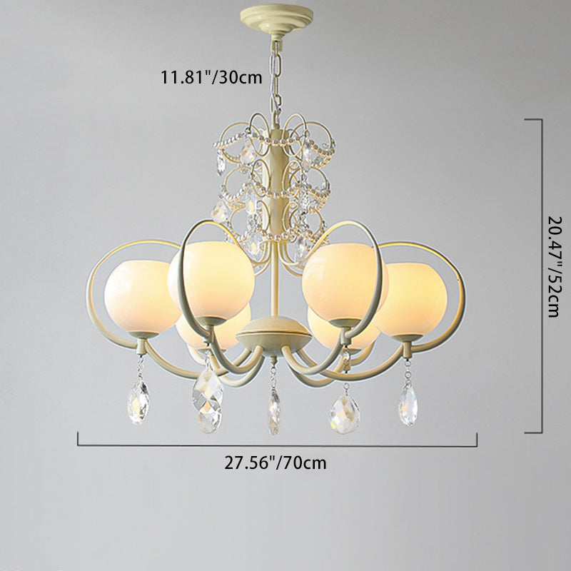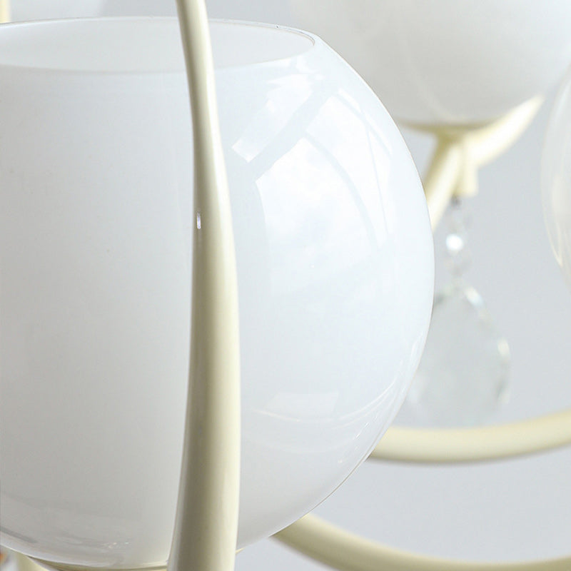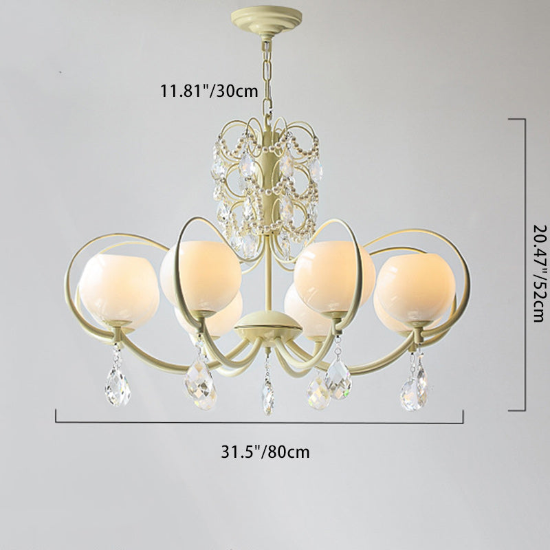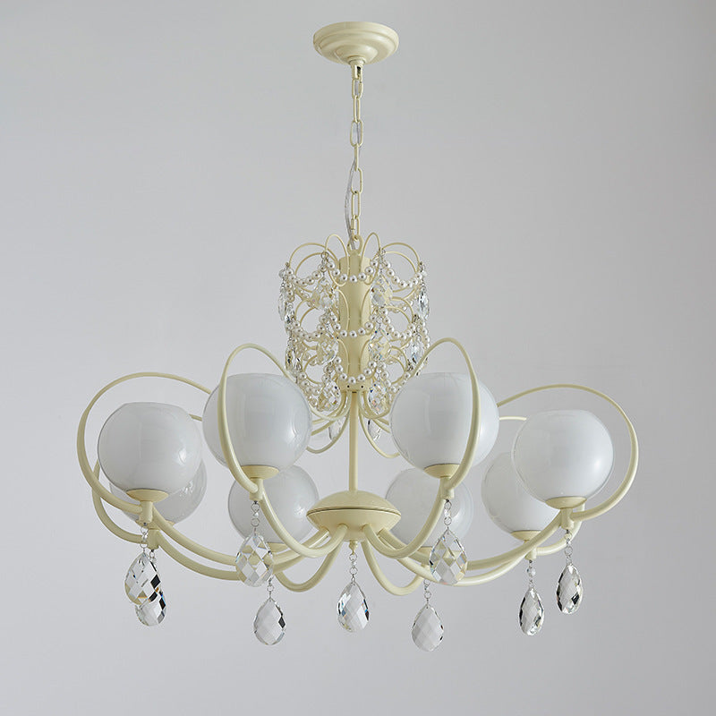 Traditional French Branch Pearl Teardrop Globe Cylinder Hardware Glass 6/8 Light Chandelier For Living Room