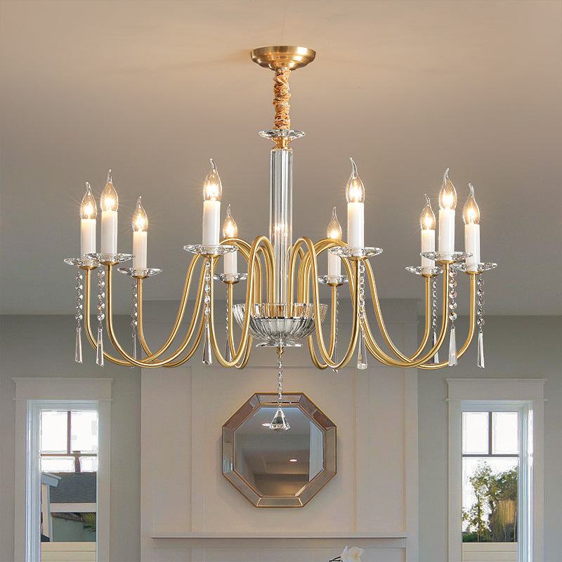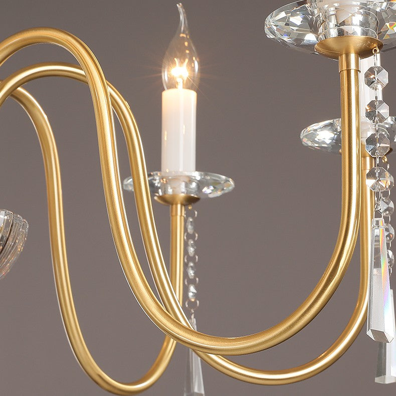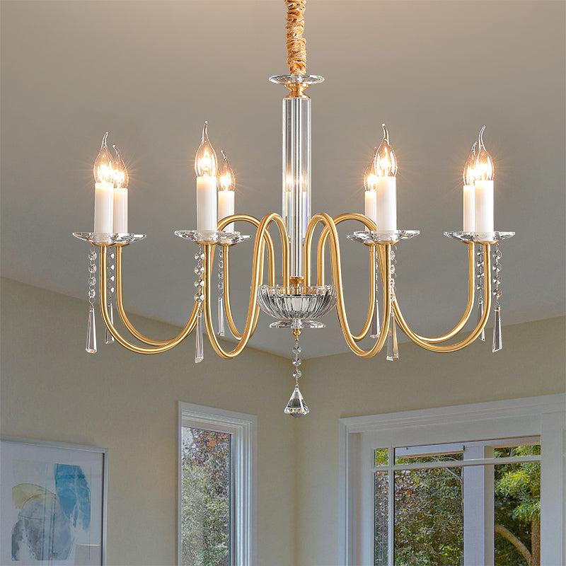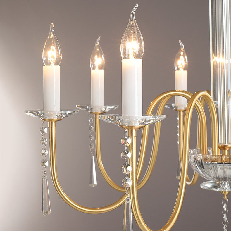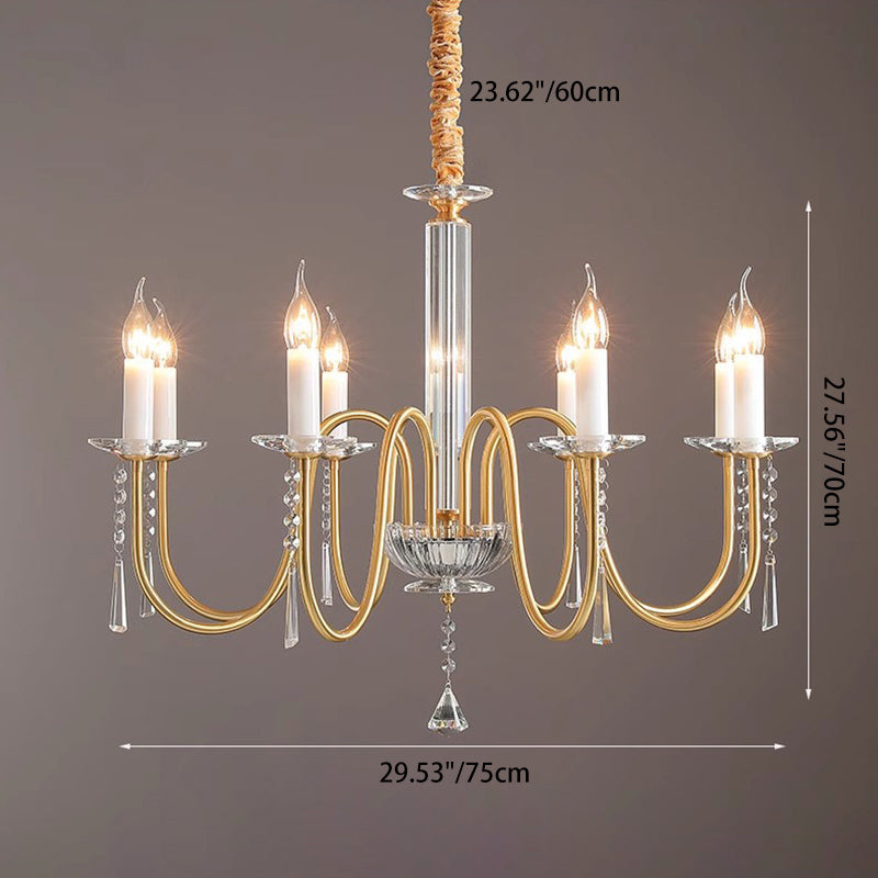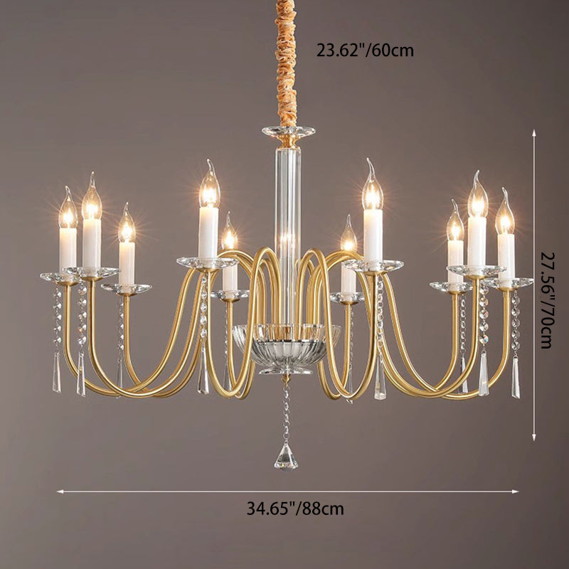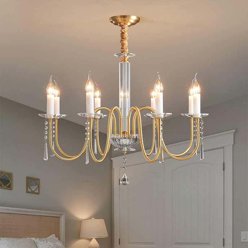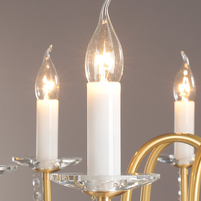 Traditional French Brass & Crystal Candle-Style 6/8/10-Light Chandelier For Bedroom, Living Room, Dining Room