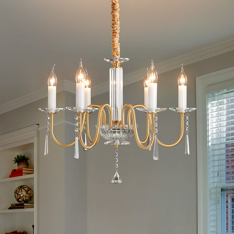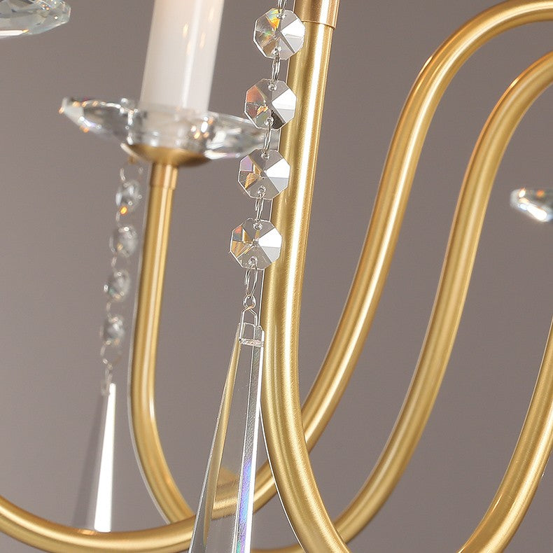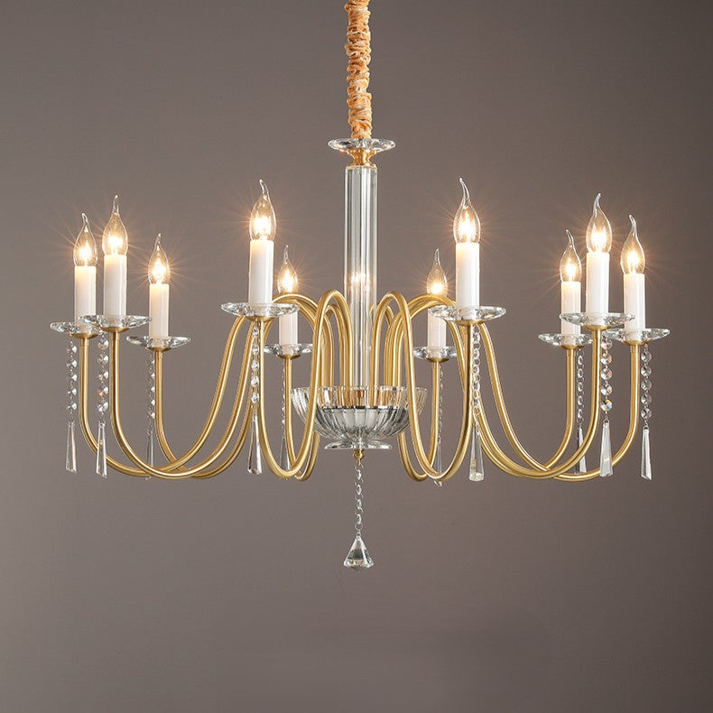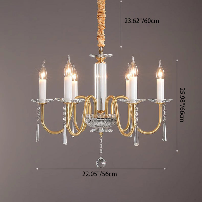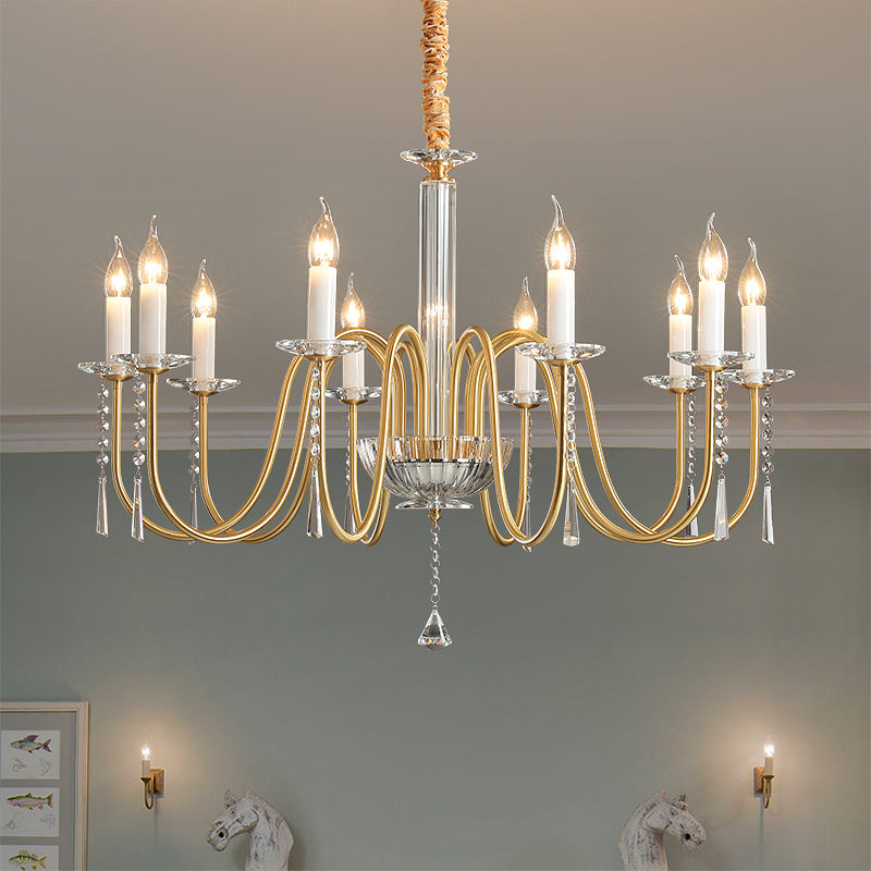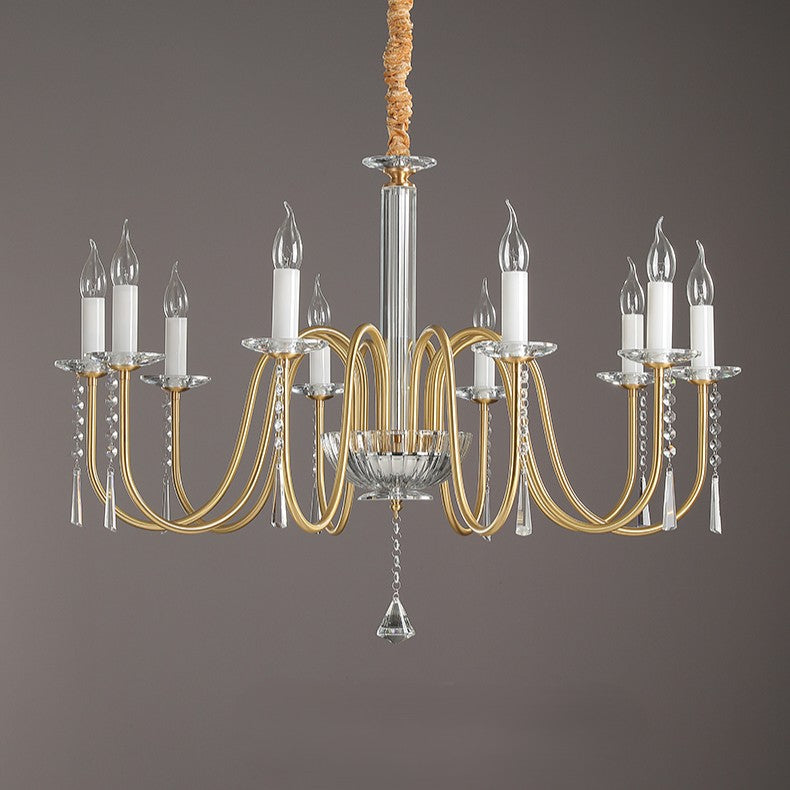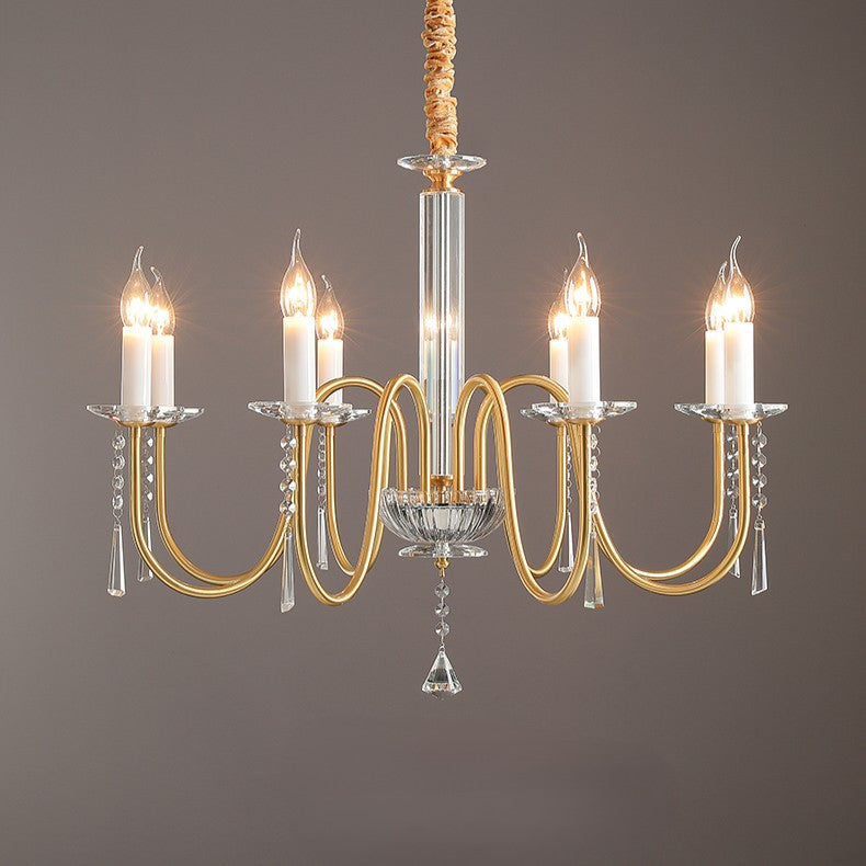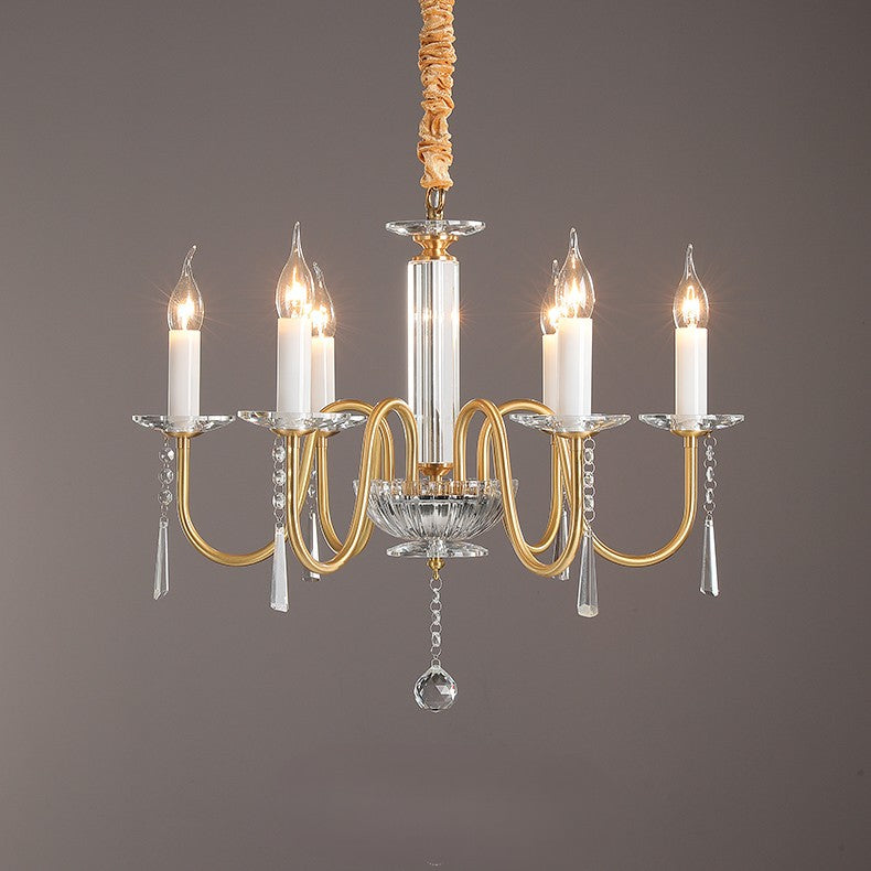 Traditional French Brass & Crystal Candle-Style 6/8/10-Light Chandelier For Bedroom, Living Room, Dining Room