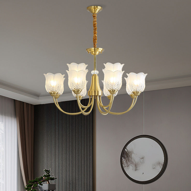 Traditional French Brass Glass Crystal Floral Bud 6/8/10/12 Light Chandeliers For Living Room