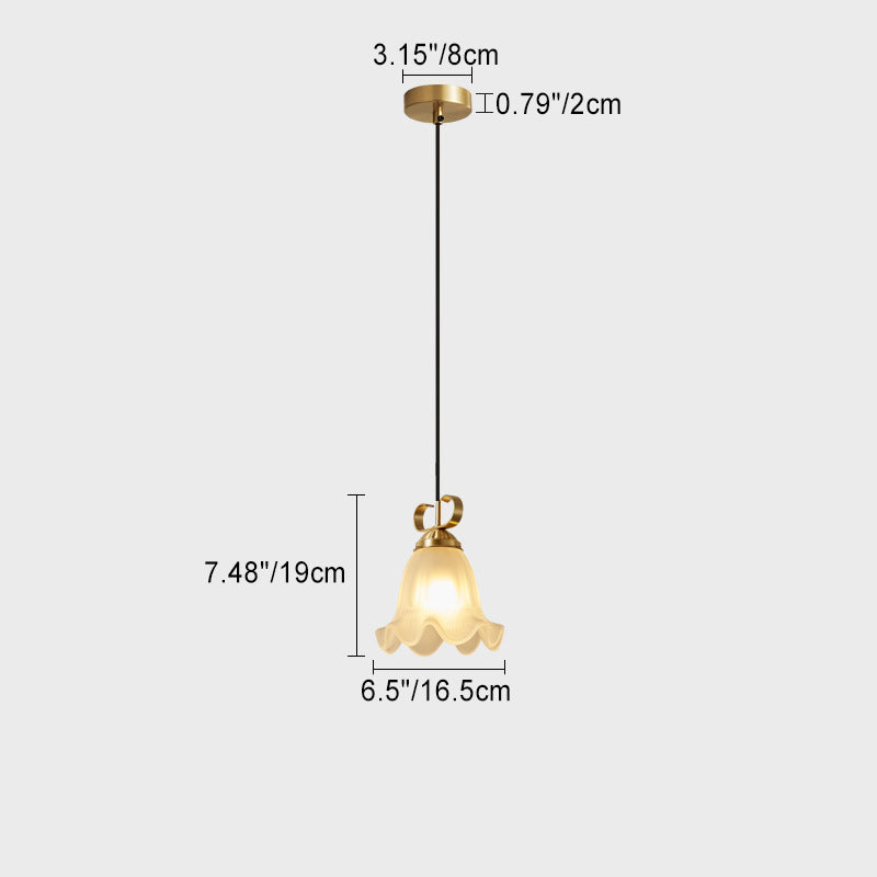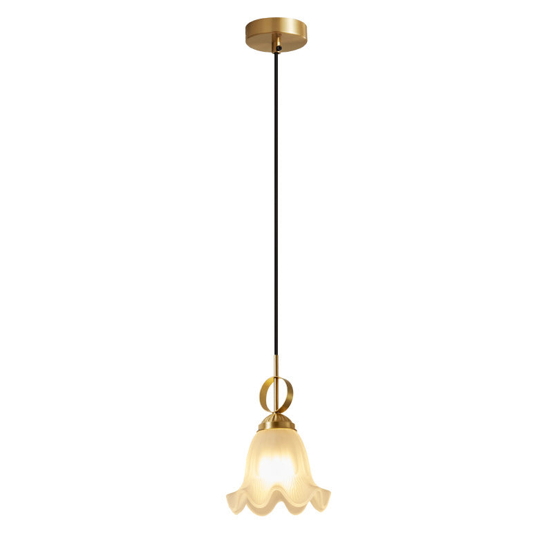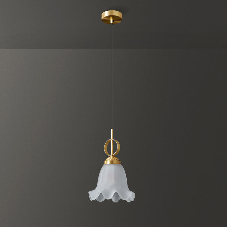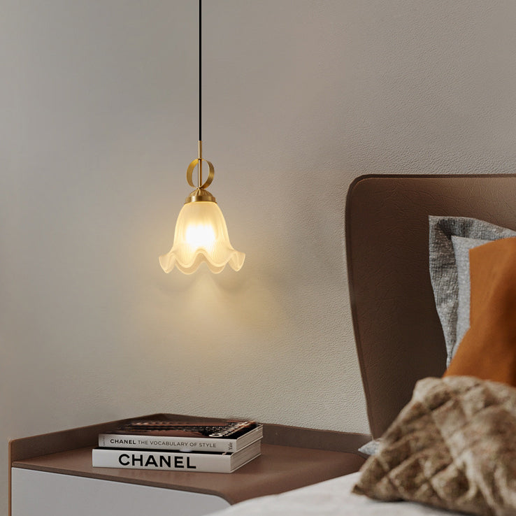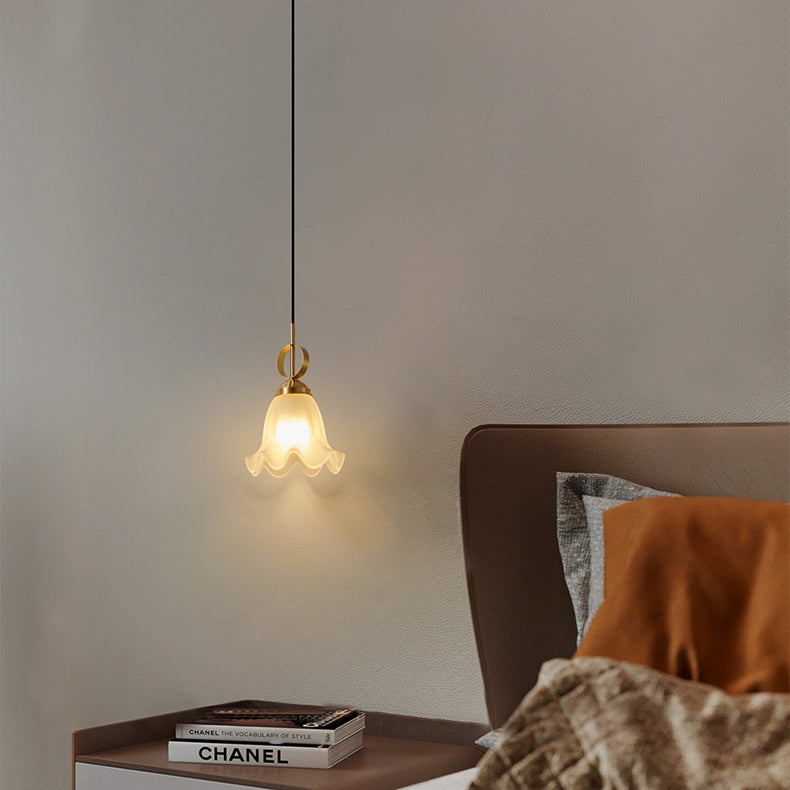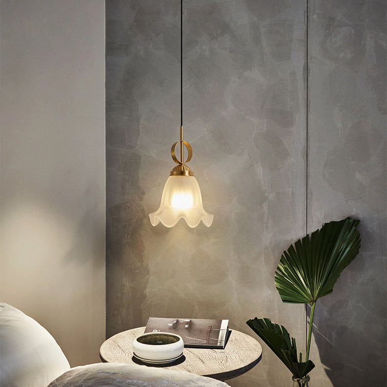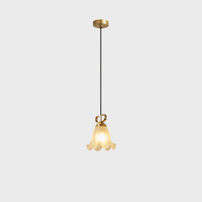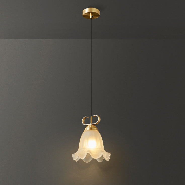 Traditional French Brass Glass Floral 1-Light Pendant Light For Bedside