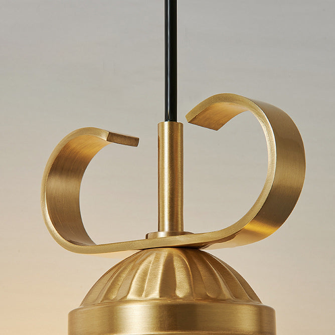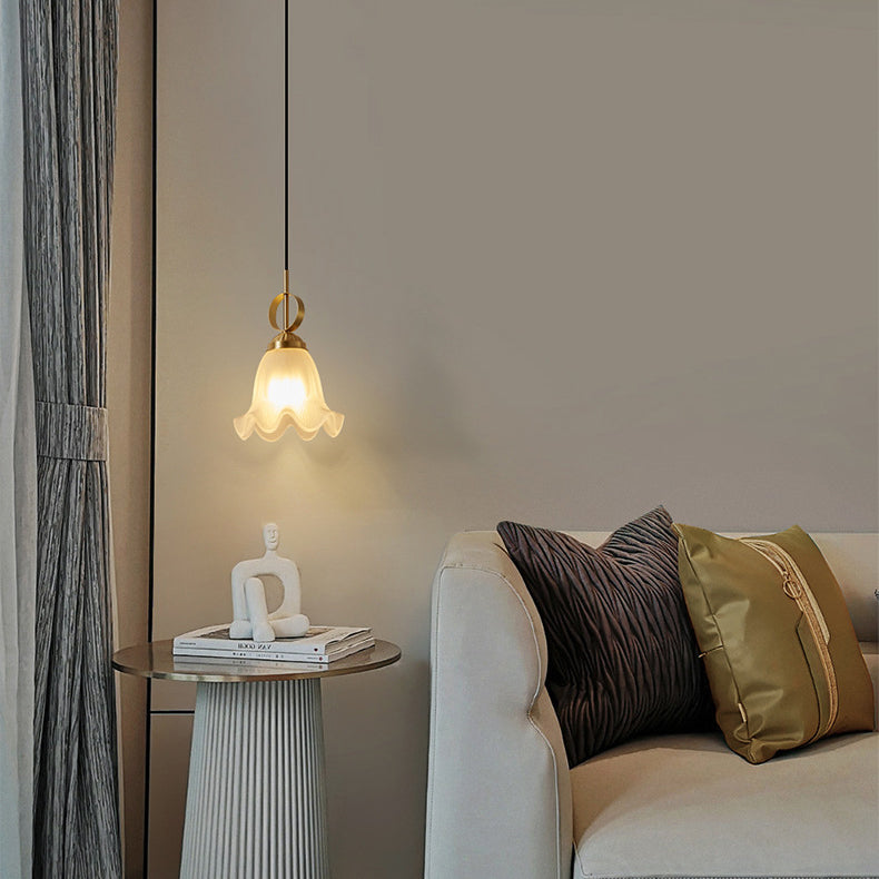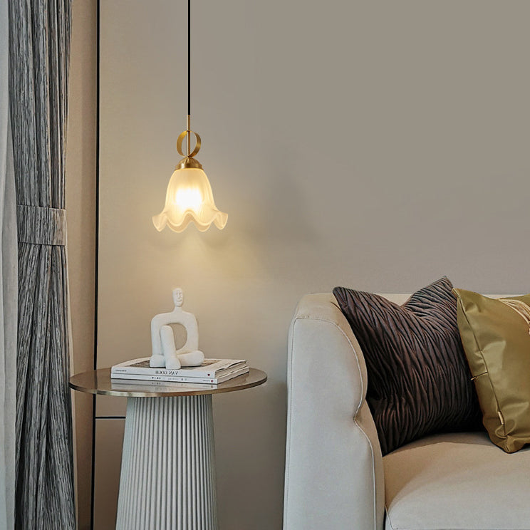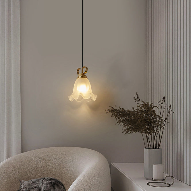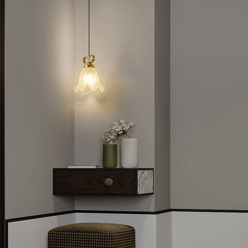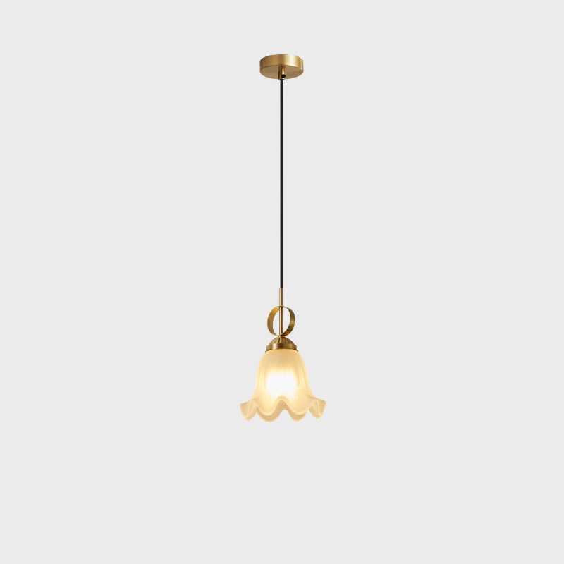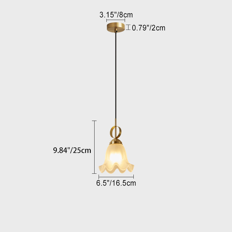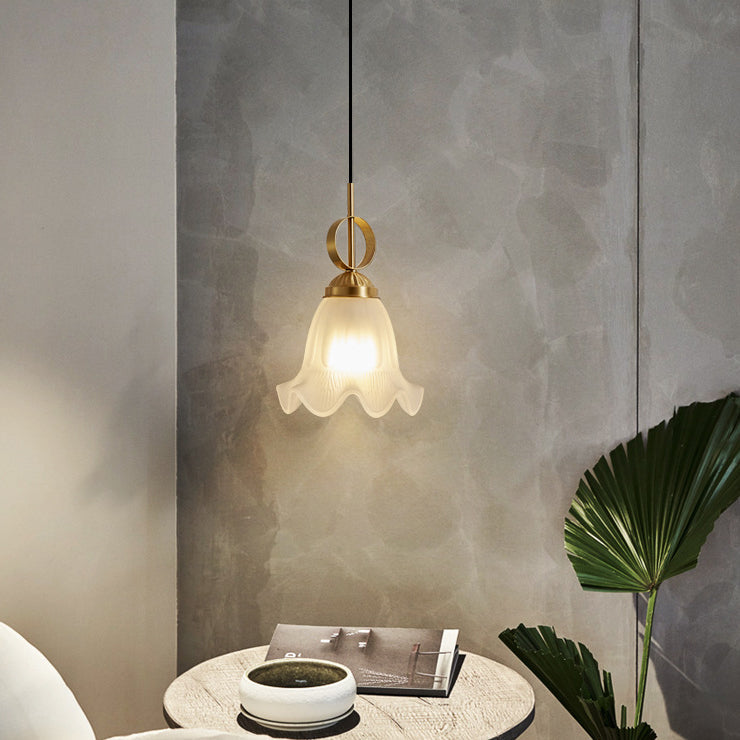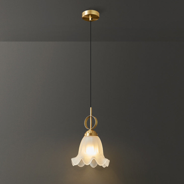 Traditional French Brass Glass Floral 1-Light Pendant Light For Bedside