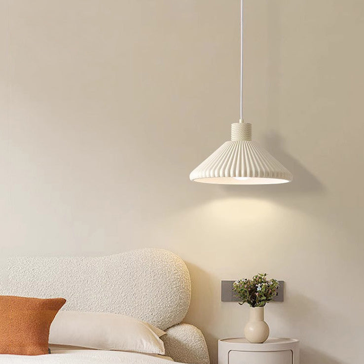 Traditional French Conical Pleated Resin 1-Light Pendant Light For Living Room