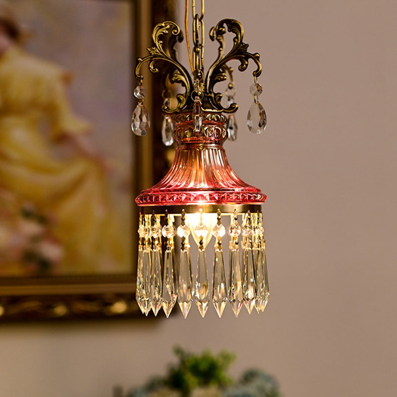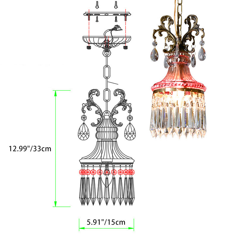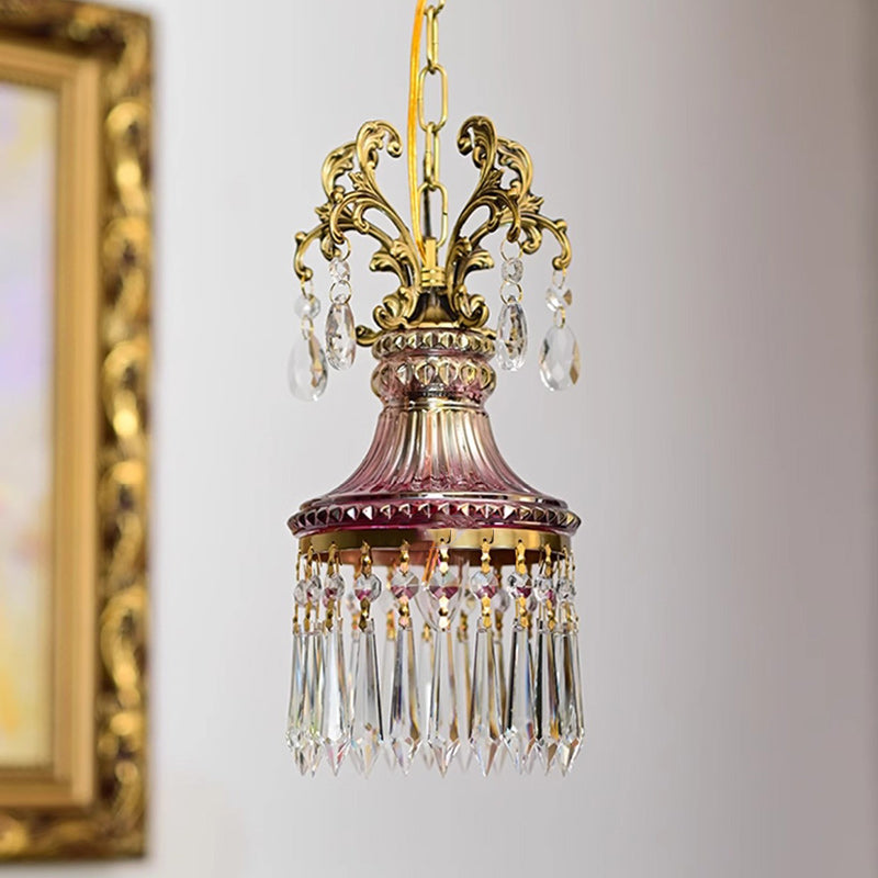 Traditional French Copper Crystal 1 - Light Pendant Light For Living Room
