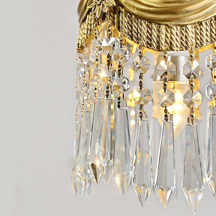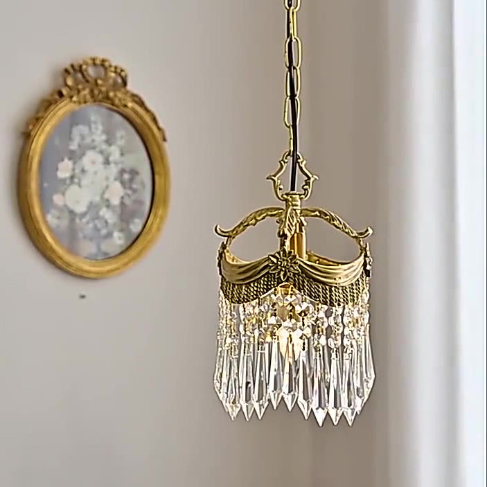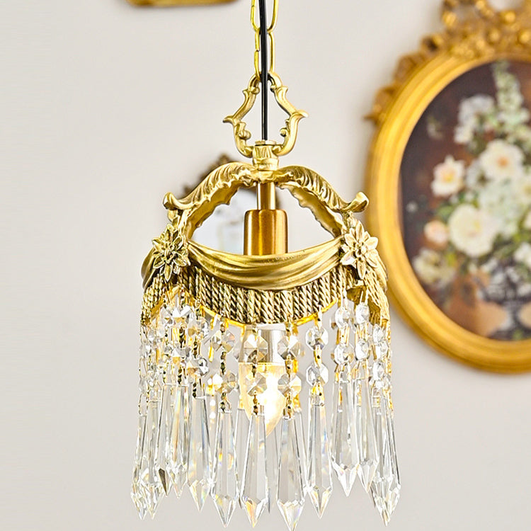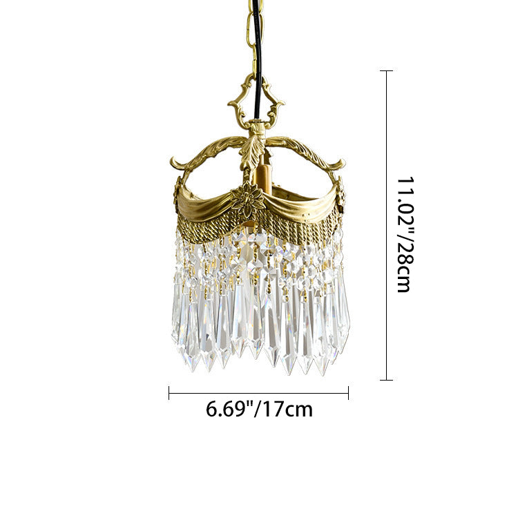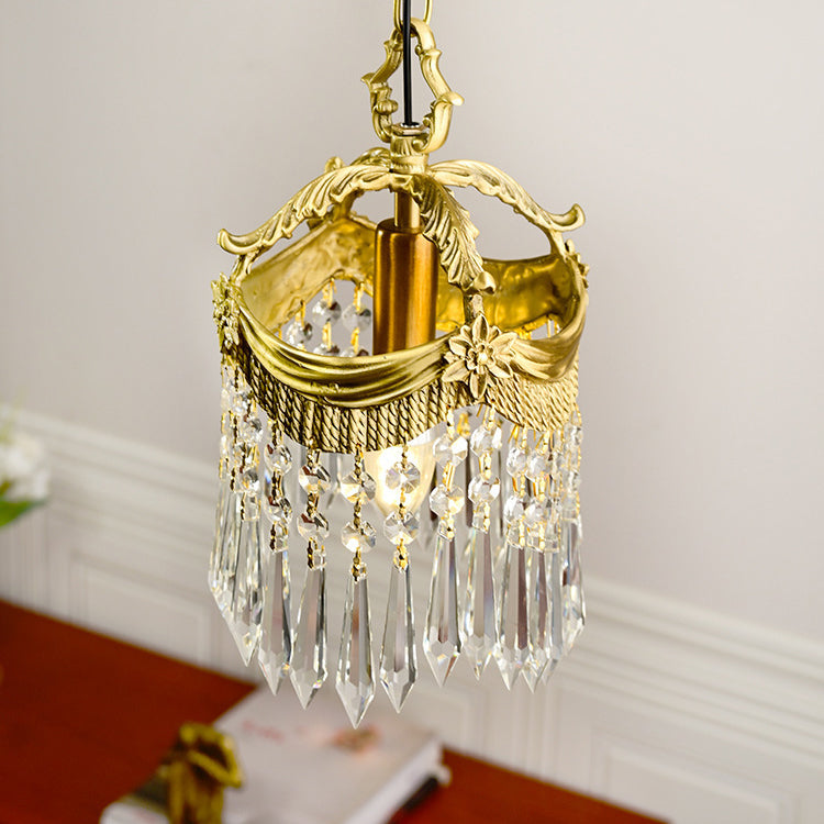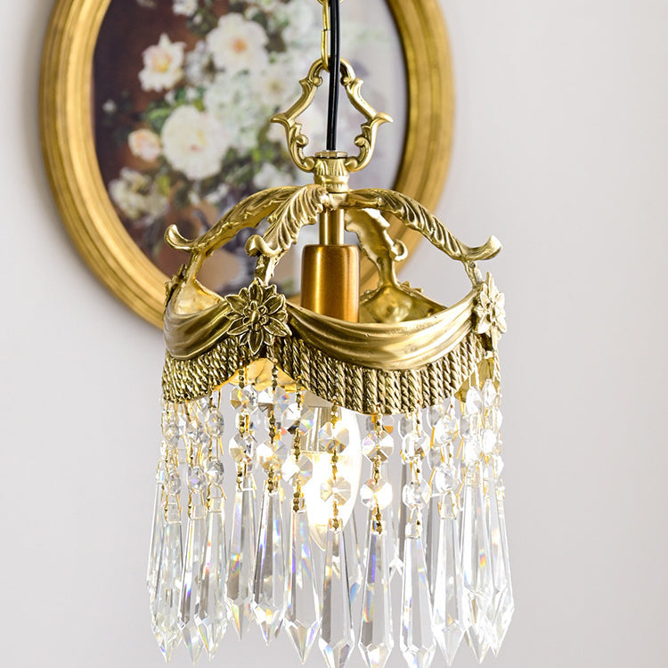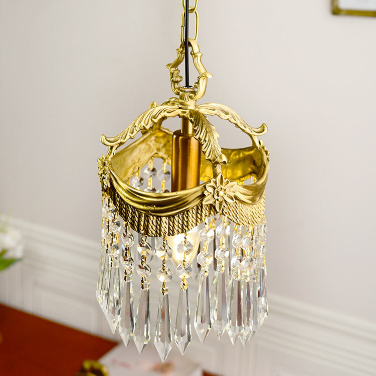 Traditional French Copper & Crystal Round Tassel 1-Light Pendant Light For Bedroom & Living Room